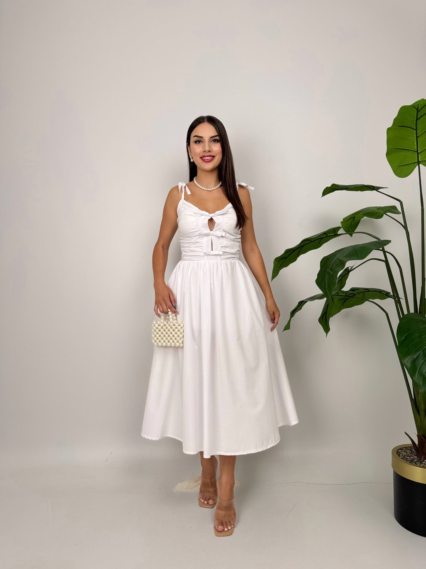 3045 ASKILI GÖĞÜS FİYONKLU ELBİSE WHİTE - BEYAZ