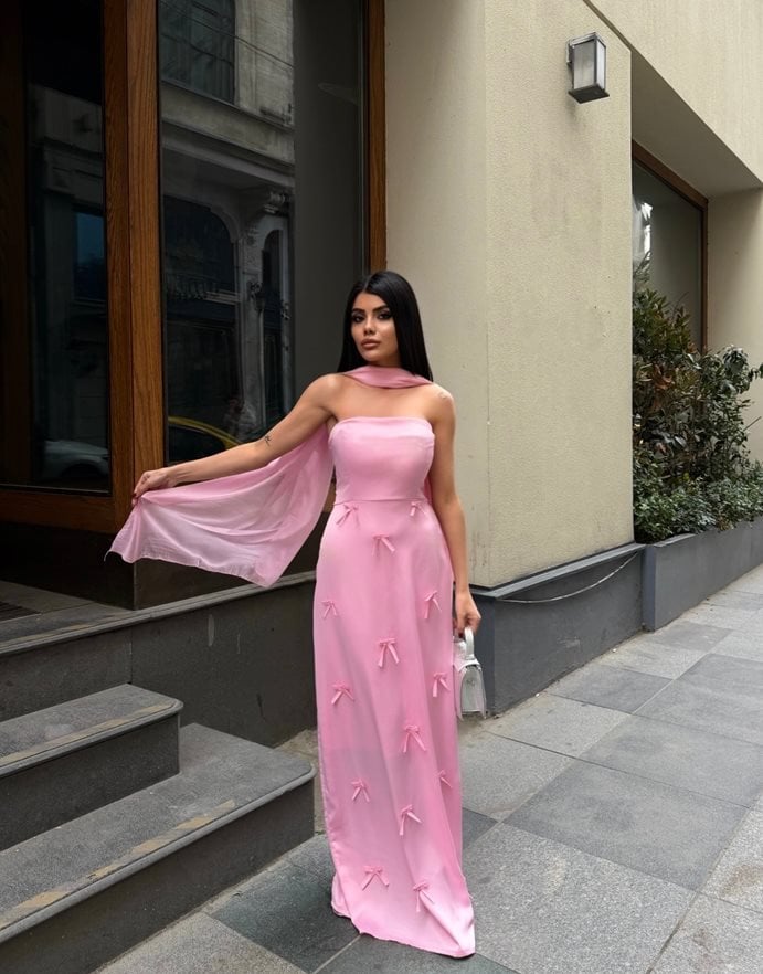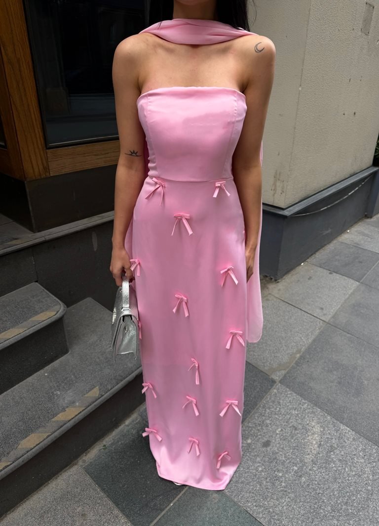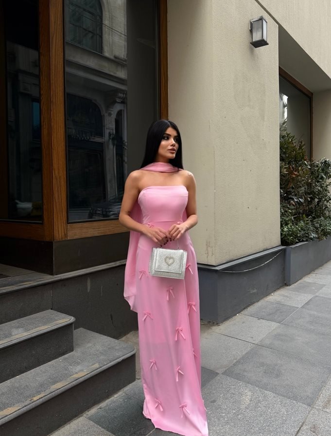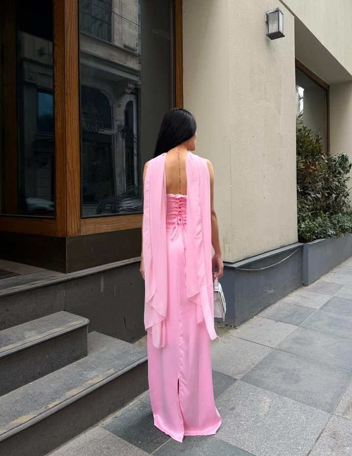 3060 SATEN KURDELELİ ELBİSE PİNK - PEMBE