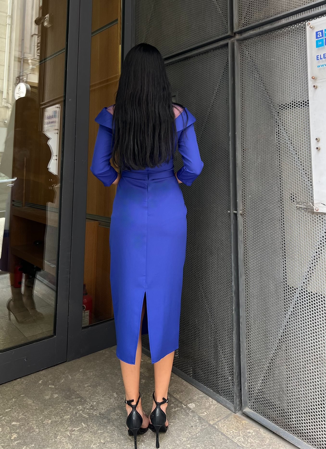 3066 YALASI TAŞLI ELBİSE SAXE - SAX