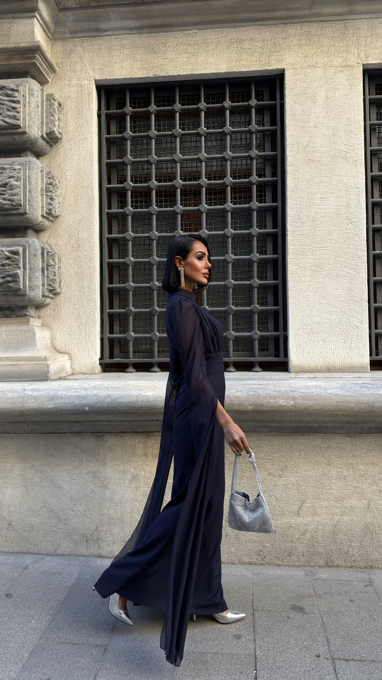 3095 KOLLARI ŞİFON ELBİSE NAVY BLUE - LACİVERT
