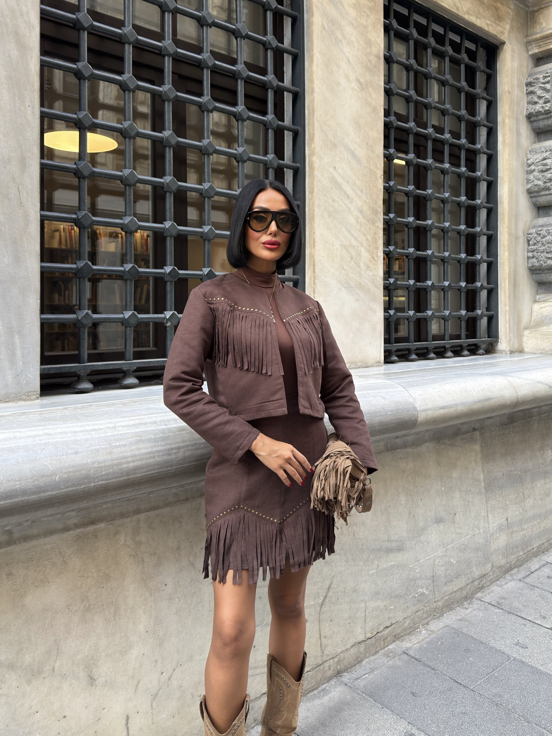 3100 ÇEKETLİ SUET TAKIM BROWN - KAHVE
