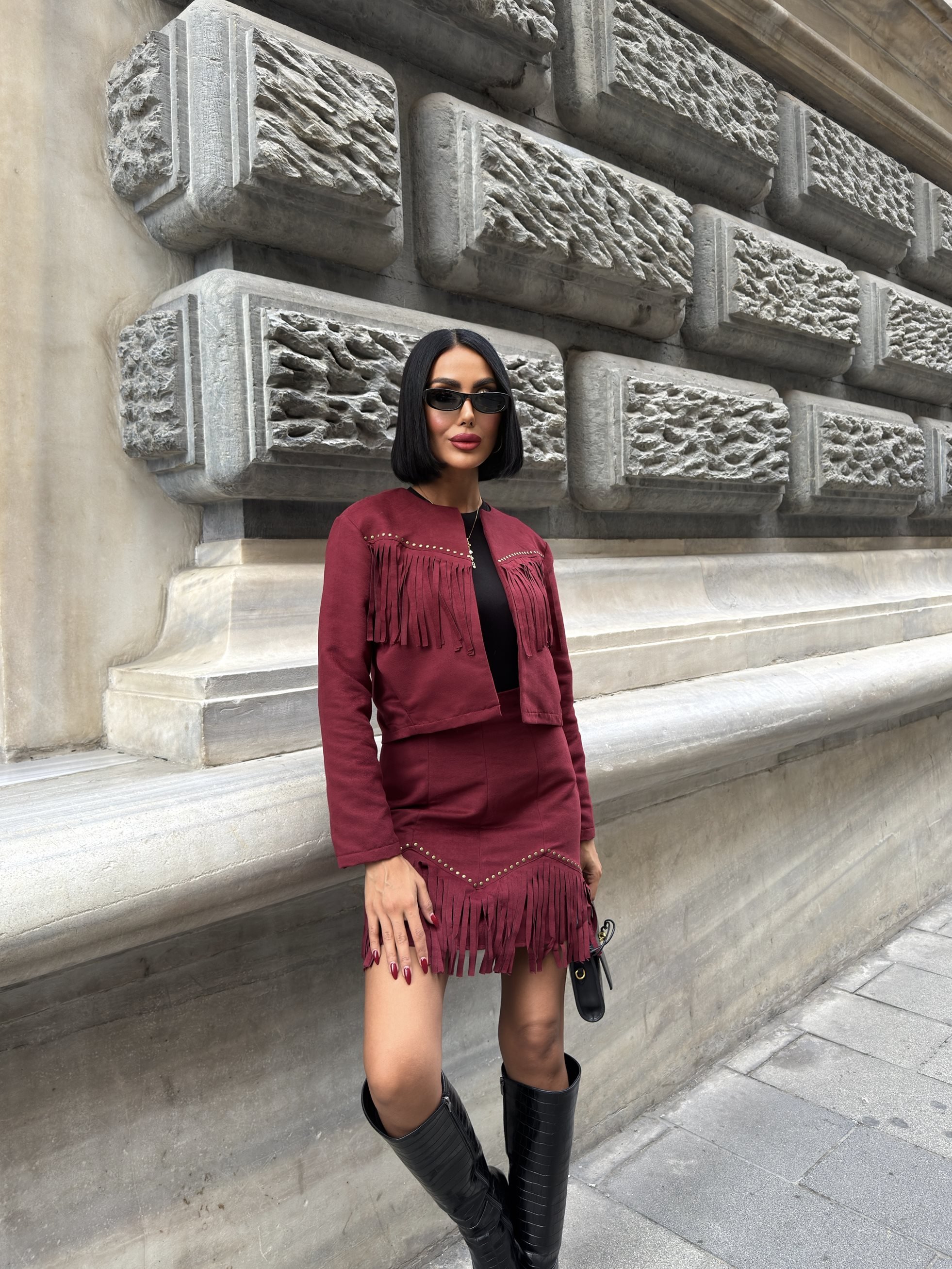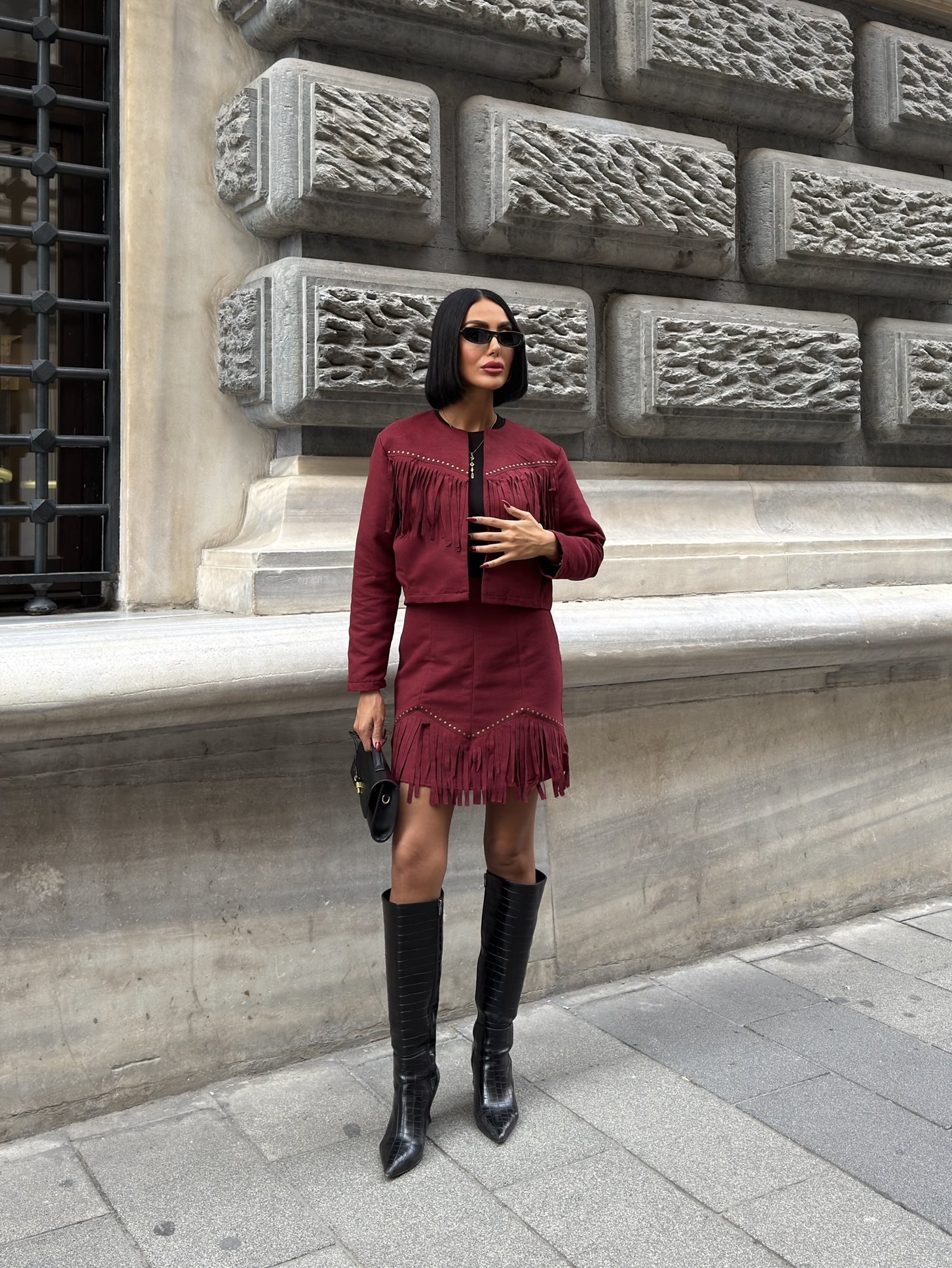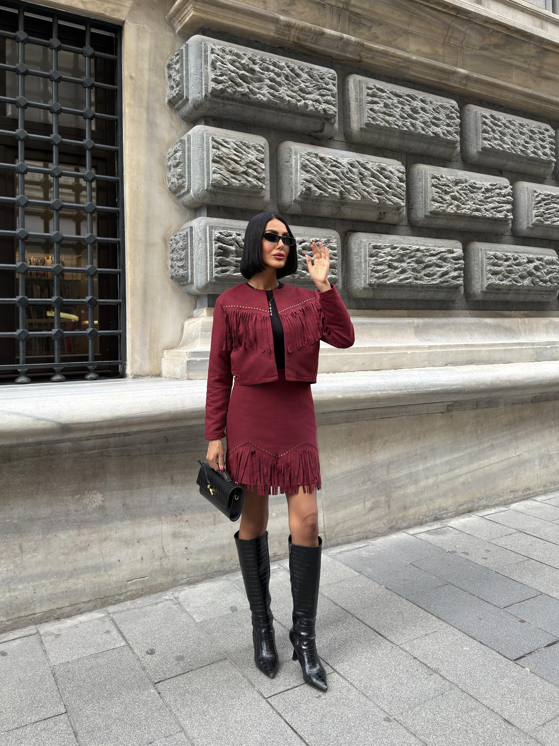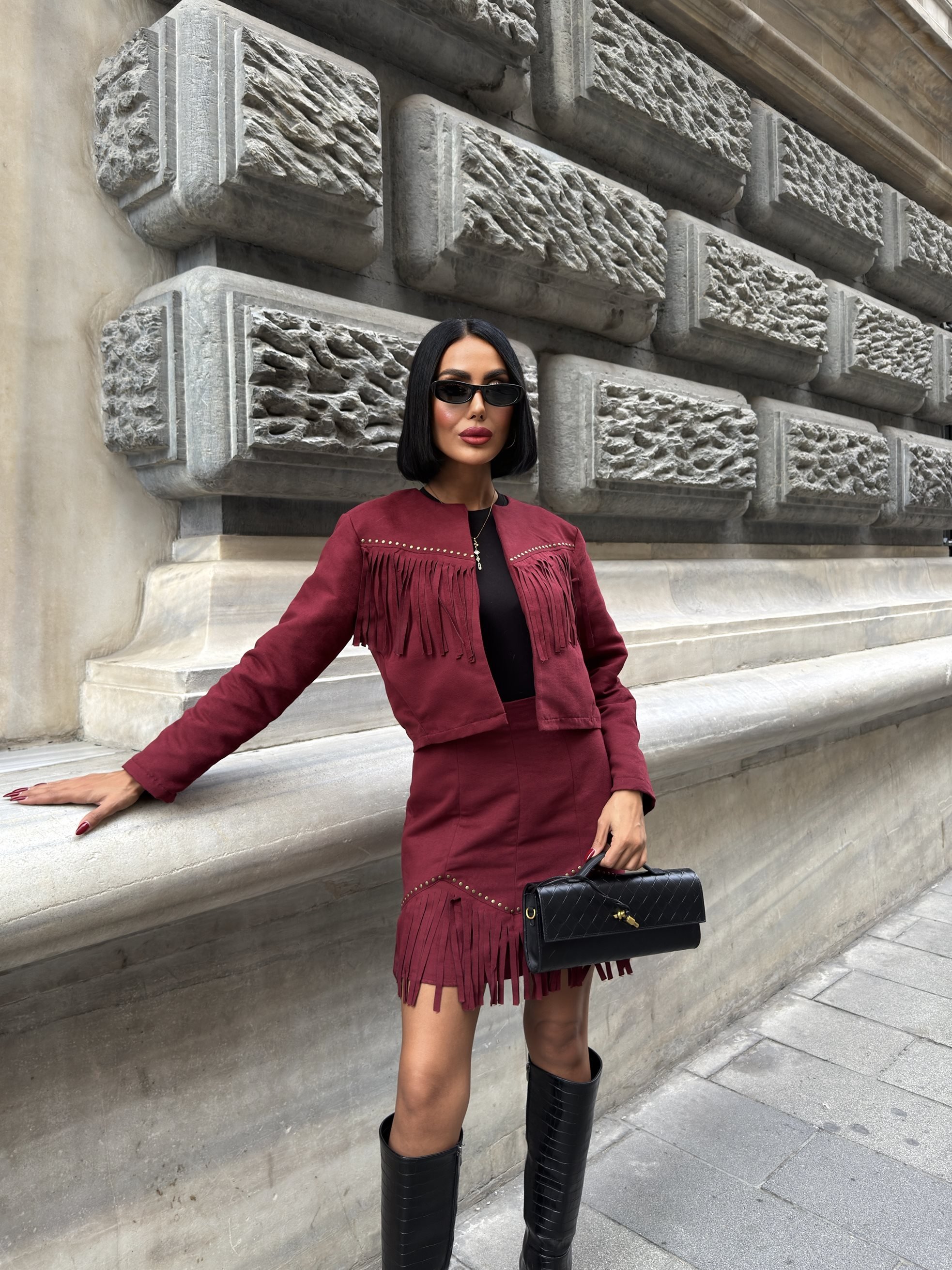 3100 ÇEKETLİ SUET TAKIM BURGUNDY - BORDO