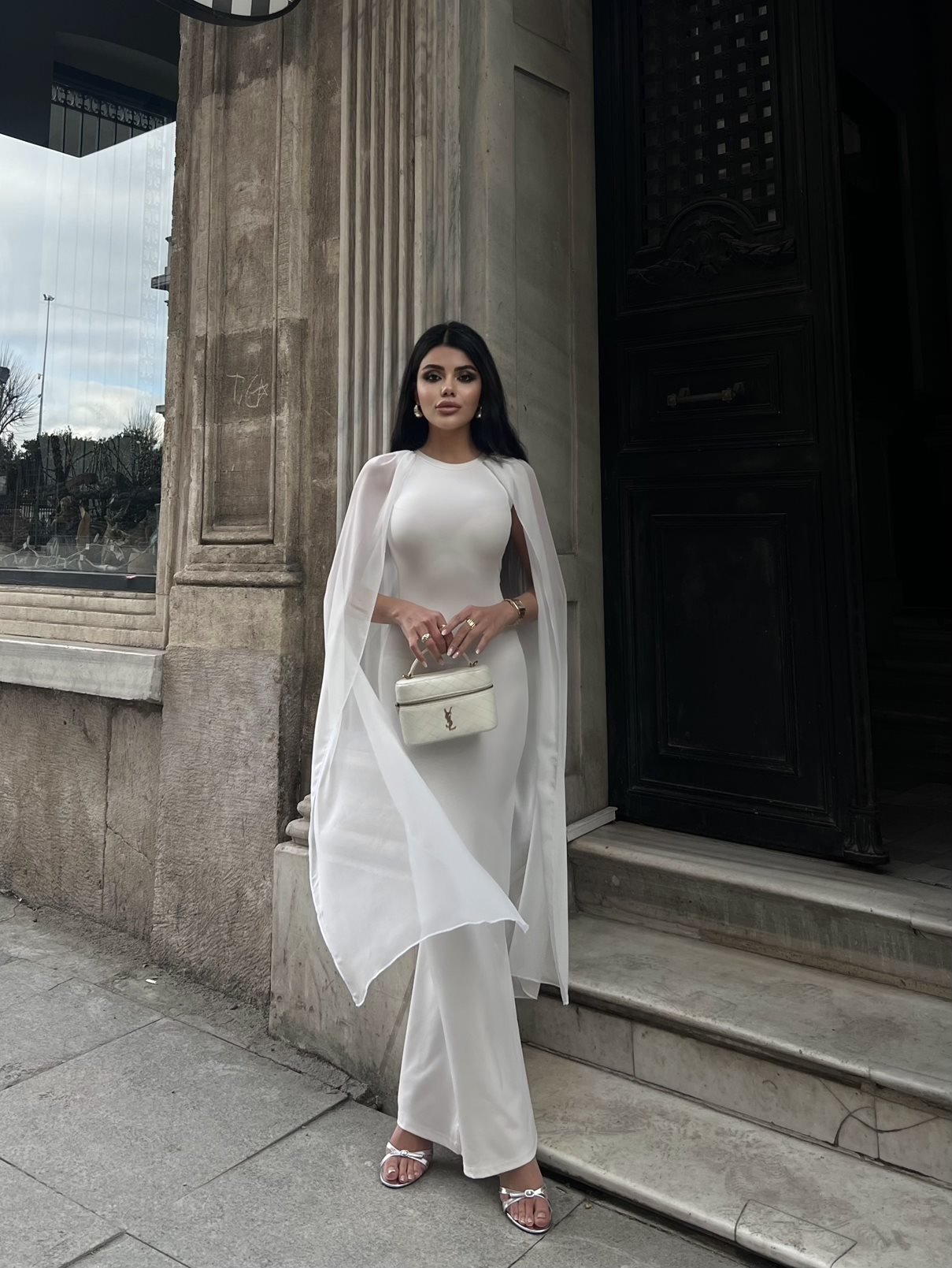 3120 KOLLARI TÜLLÜ ELBİSE WHİTE - BEYAZ