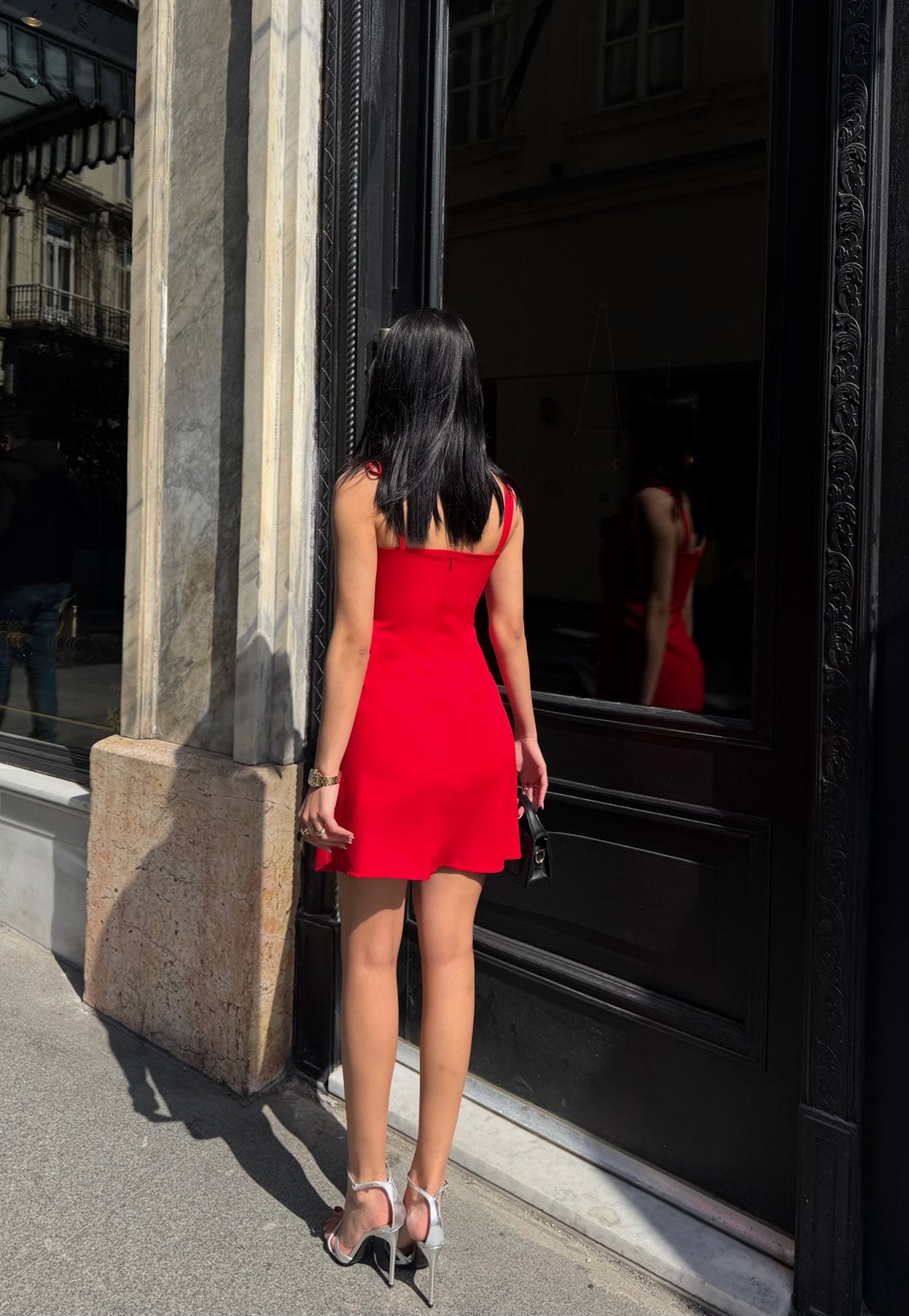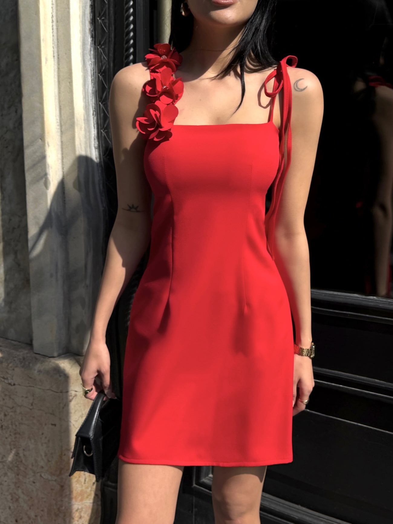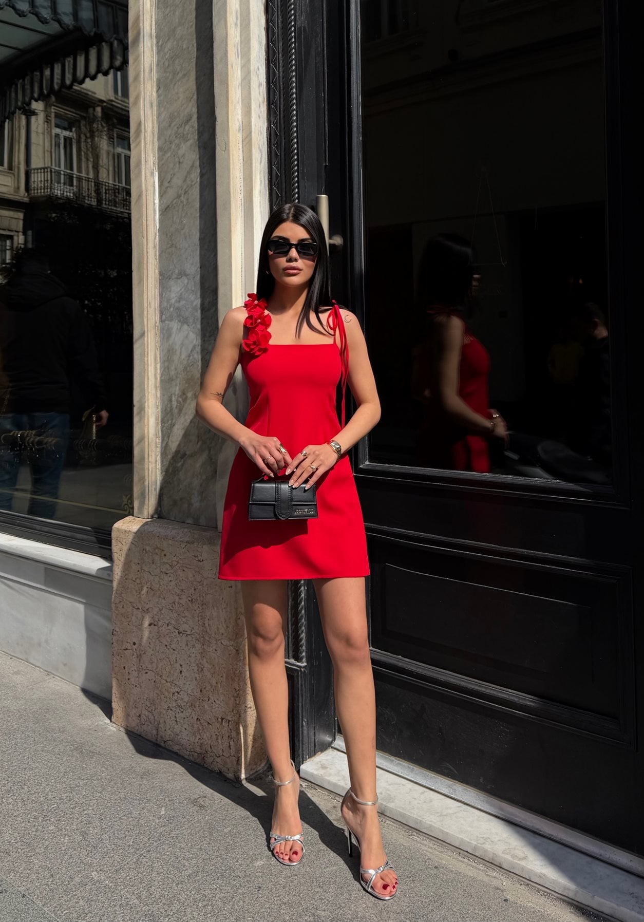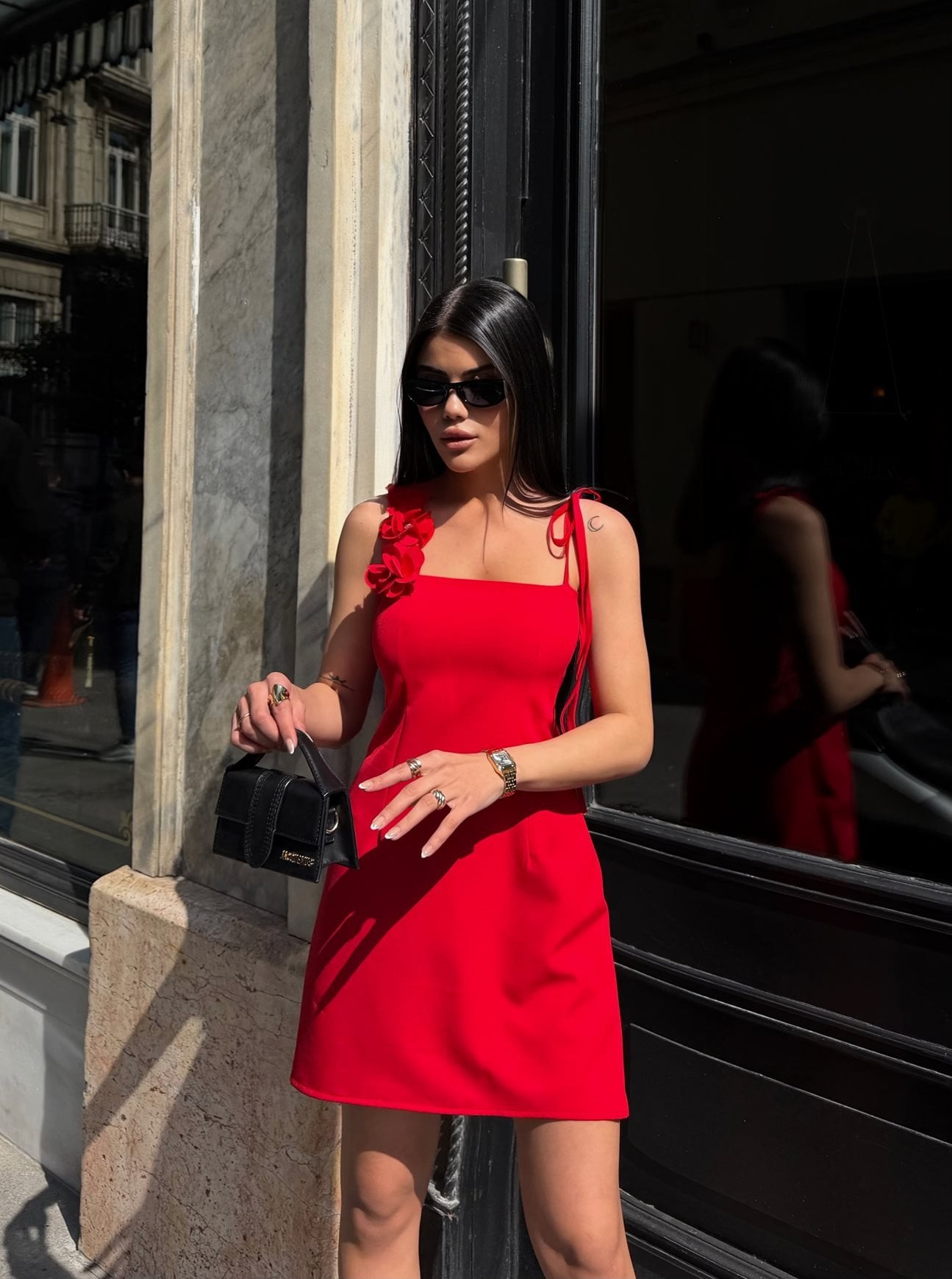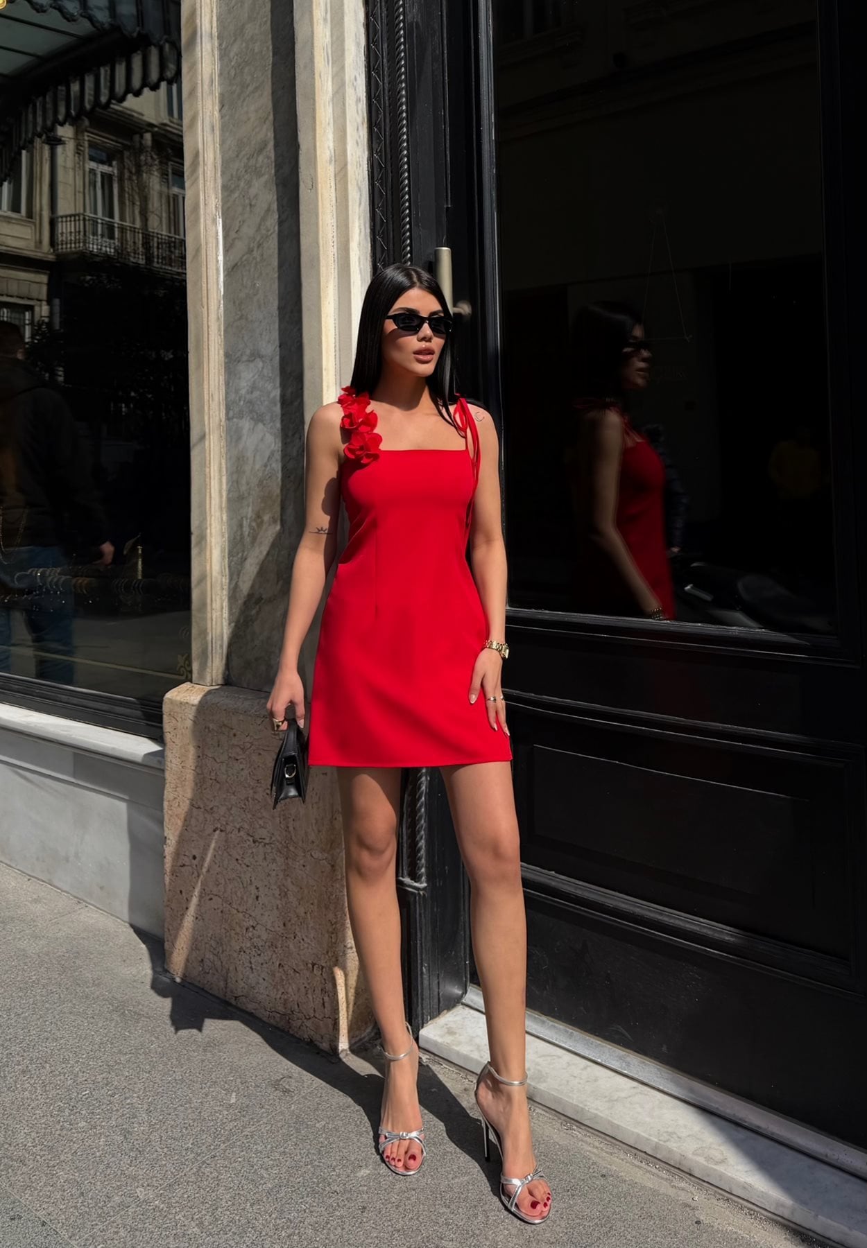 3129 GÜL ASKILI ELBİSE RED - KIRMIZI