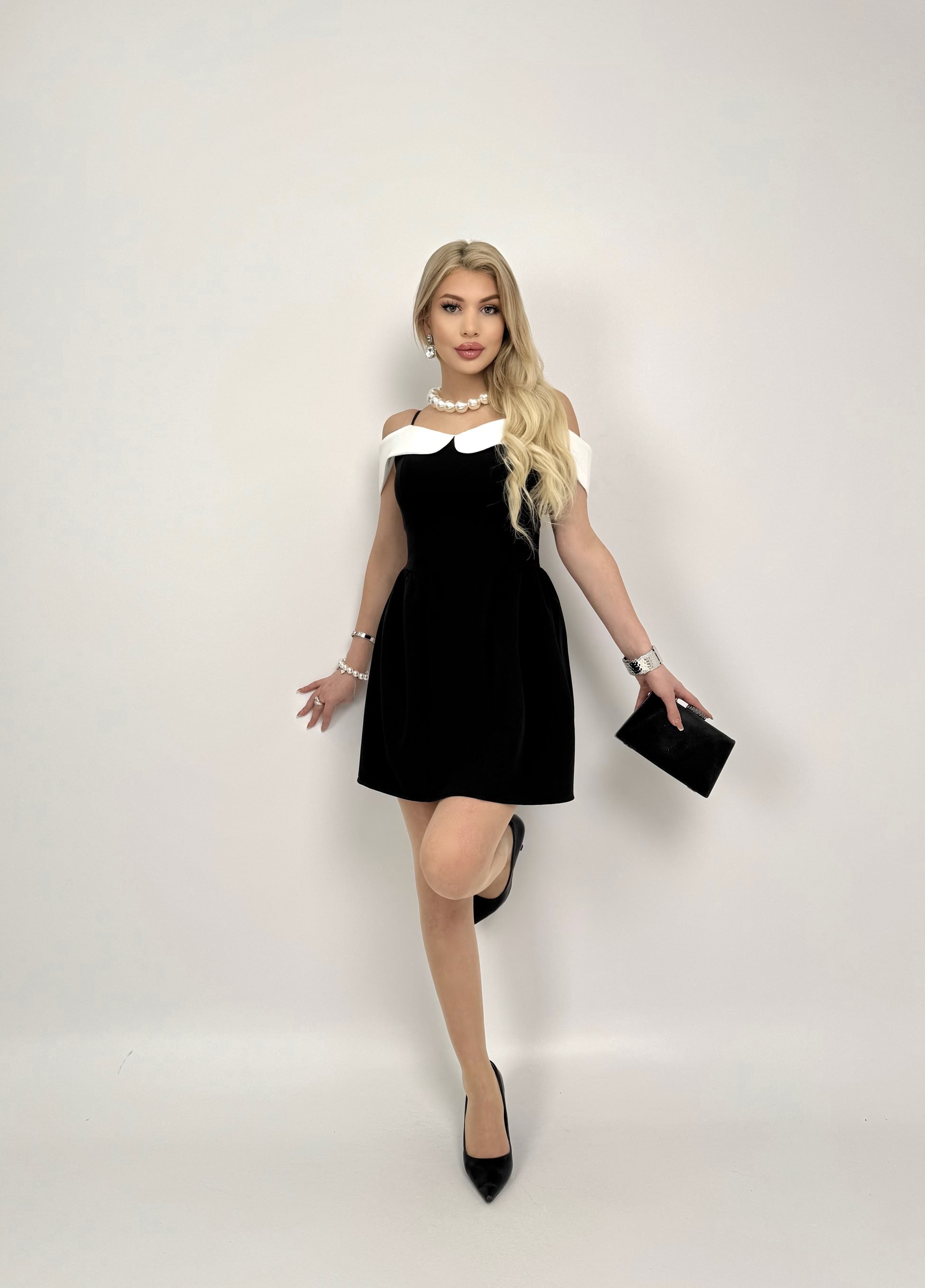 4006 ASKILI GÖGÜS ALERLİ KISA ELBİSE BLACK - SİYAH