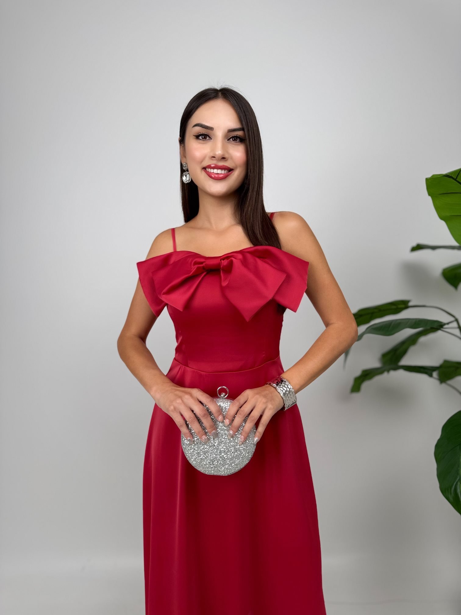 4015 ÖN KURDELA MİDİ ELBİSE BURGUNDY - BORDO