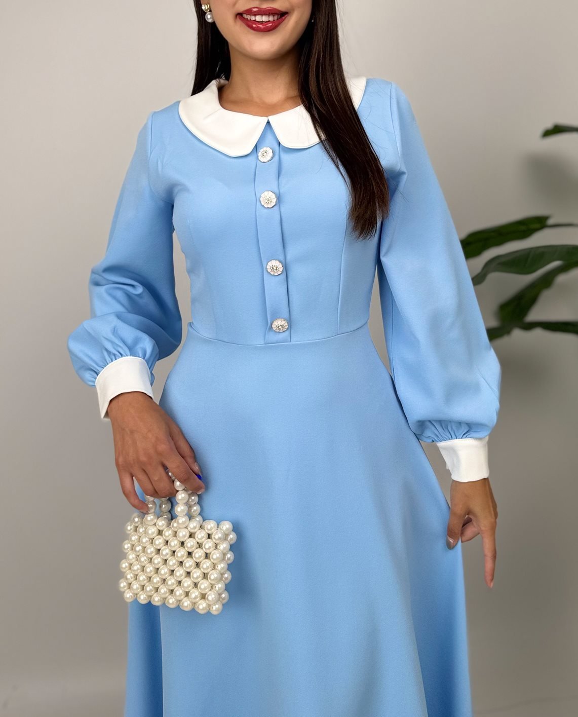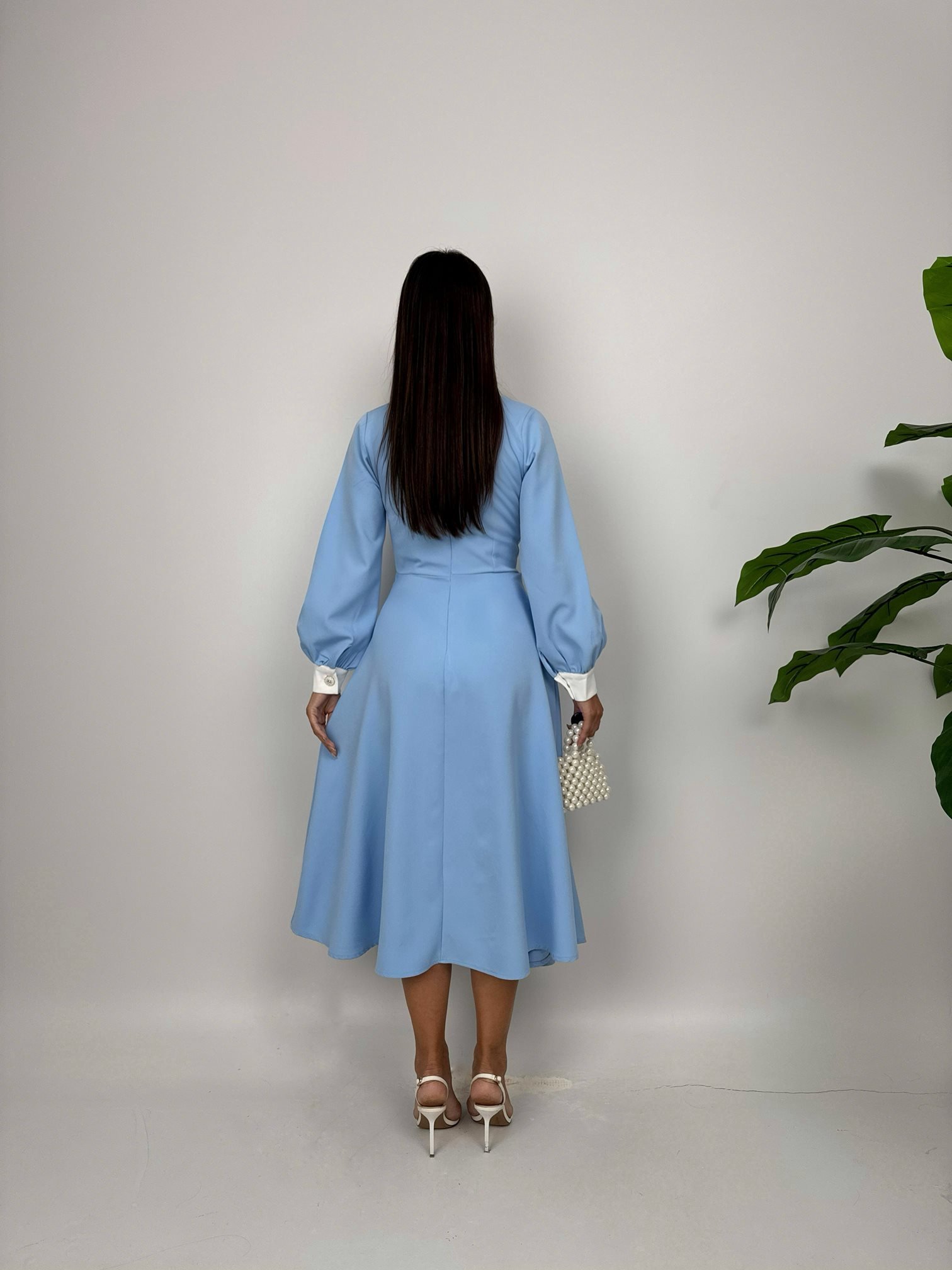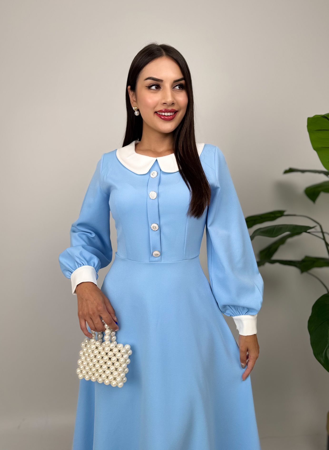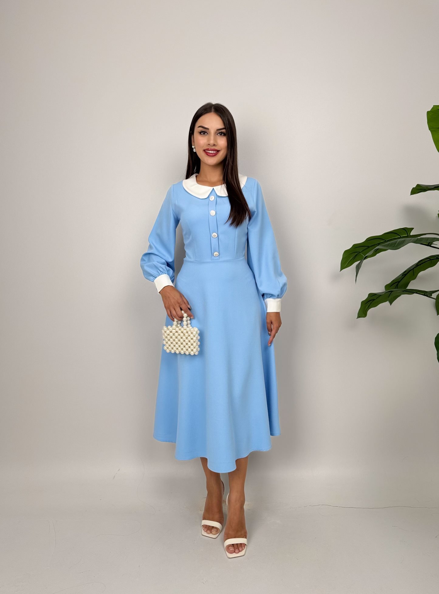 1001 MİDİ BEBE YAKA ELBİSE BLUE - MAVİ