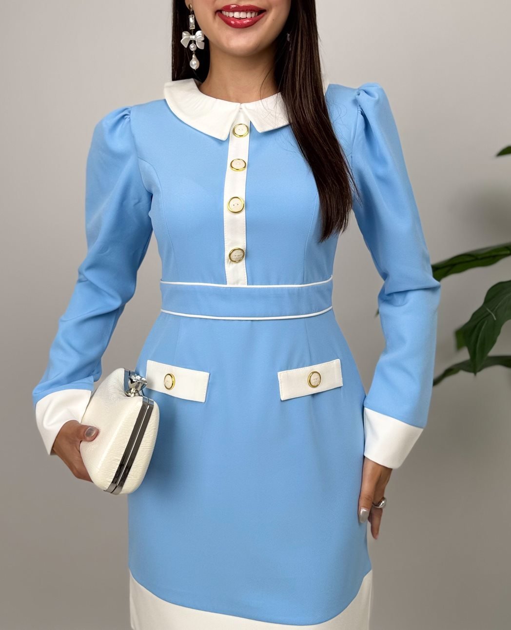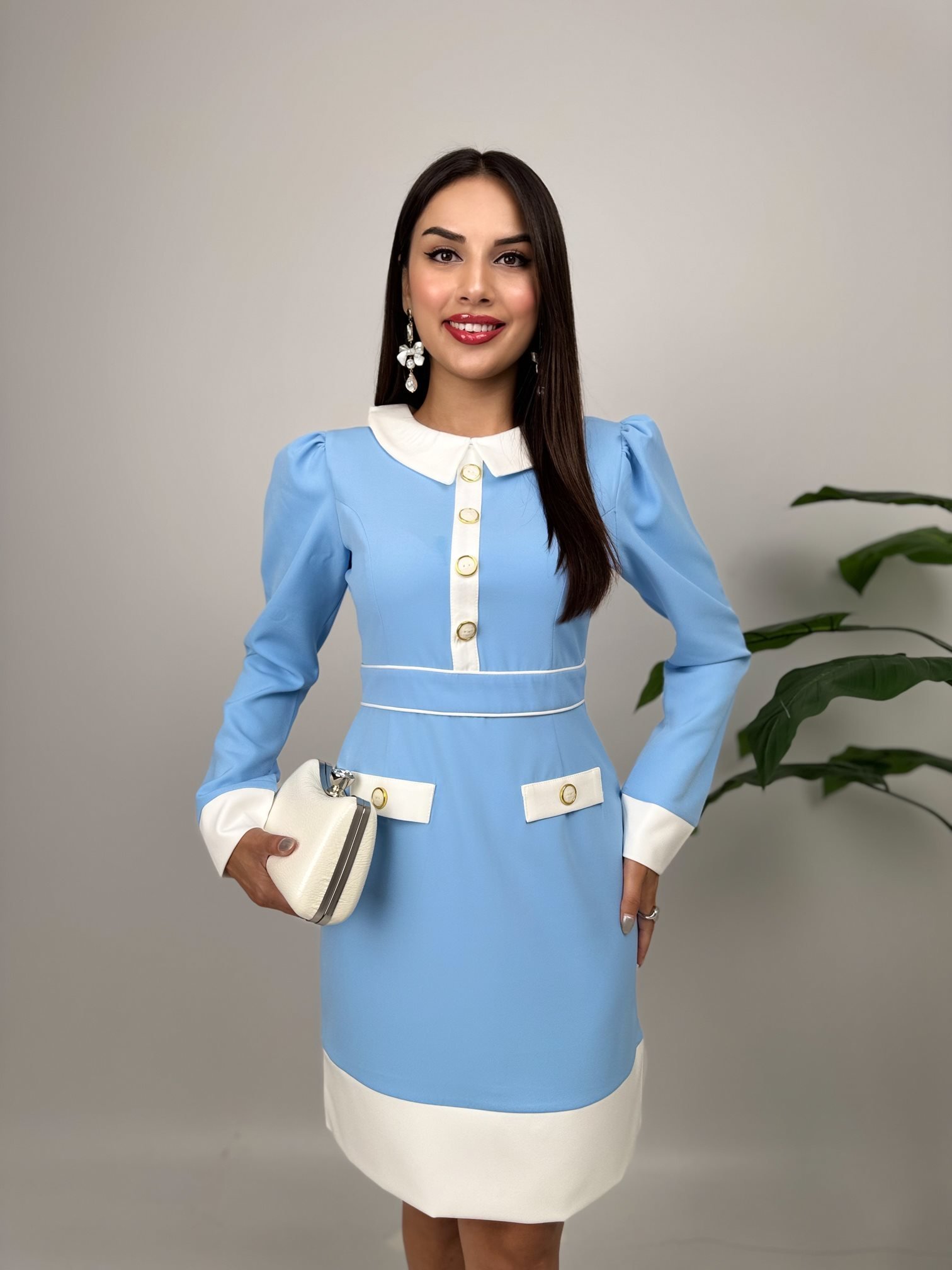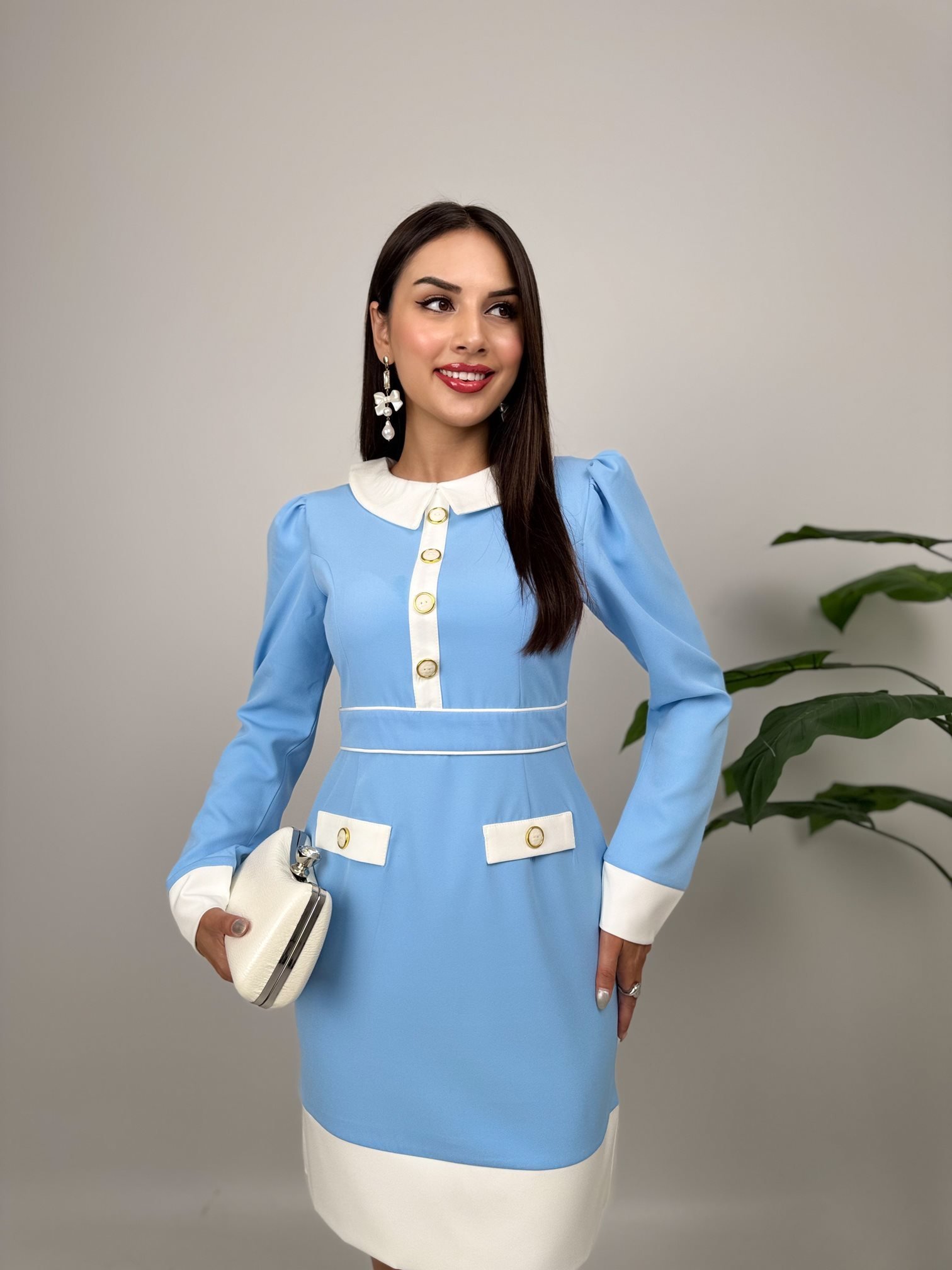 1002 GARNİLİ KISA DAR ELBİSE BLUE - MAVİ