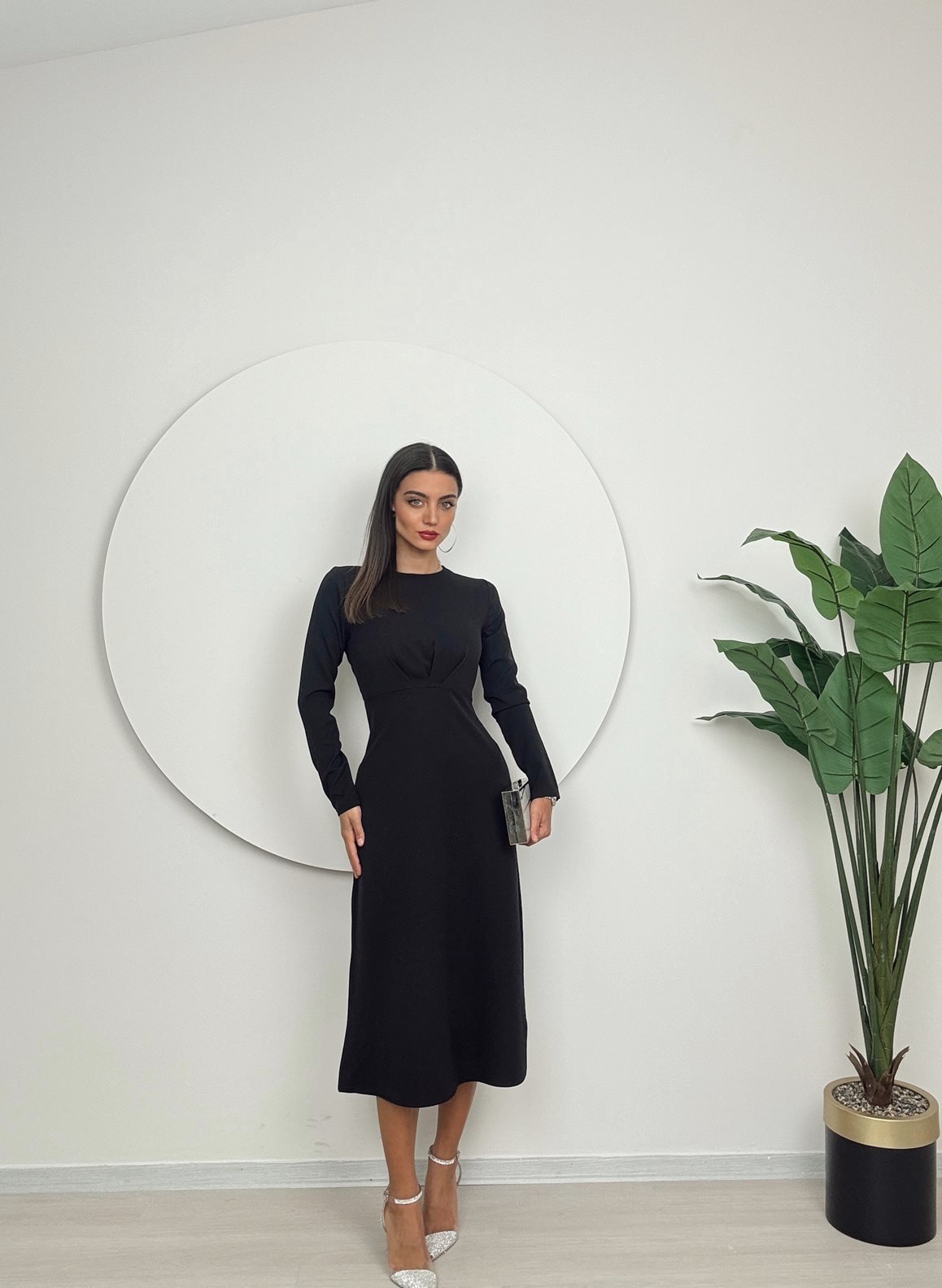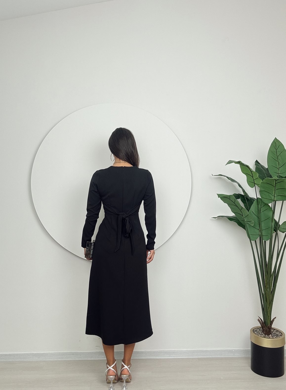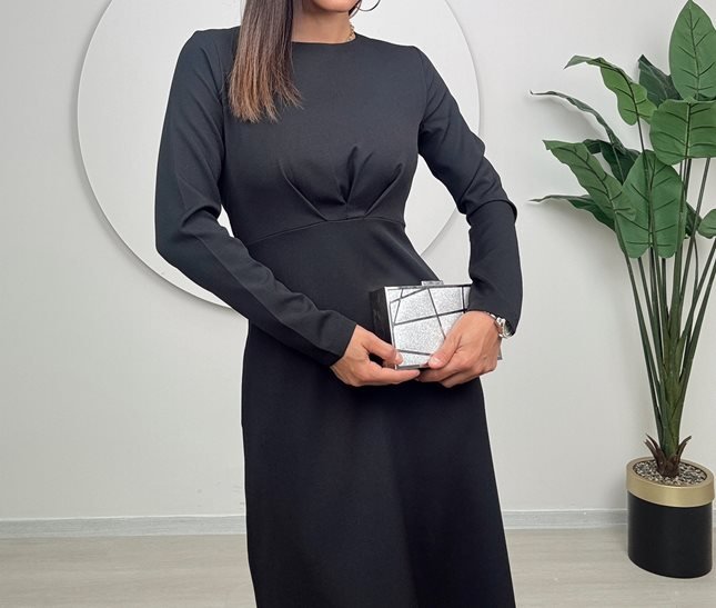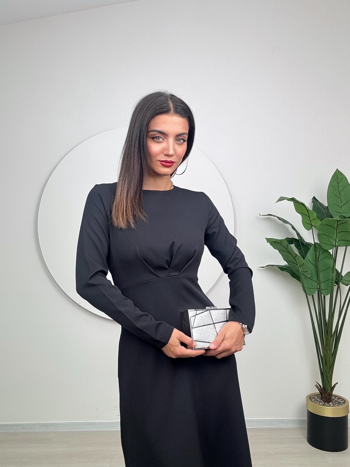 1011 ROBA PİLE ELBİSE BLACK - SİYAH