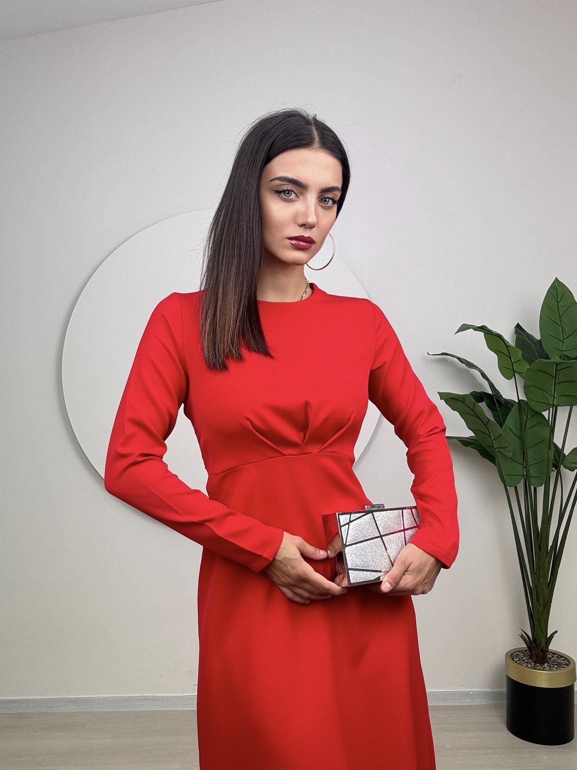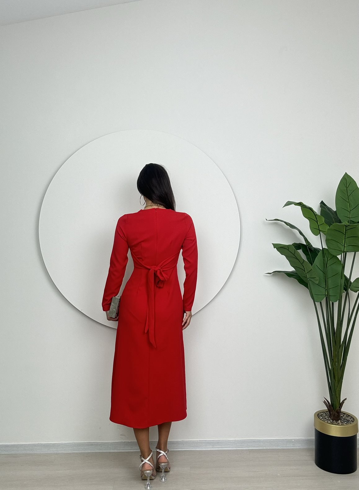 1011 ROBA PİLE ELBİSE RED - KIRMIZI