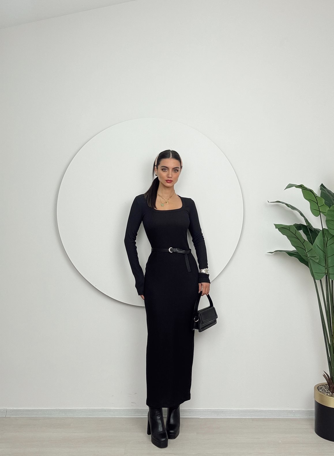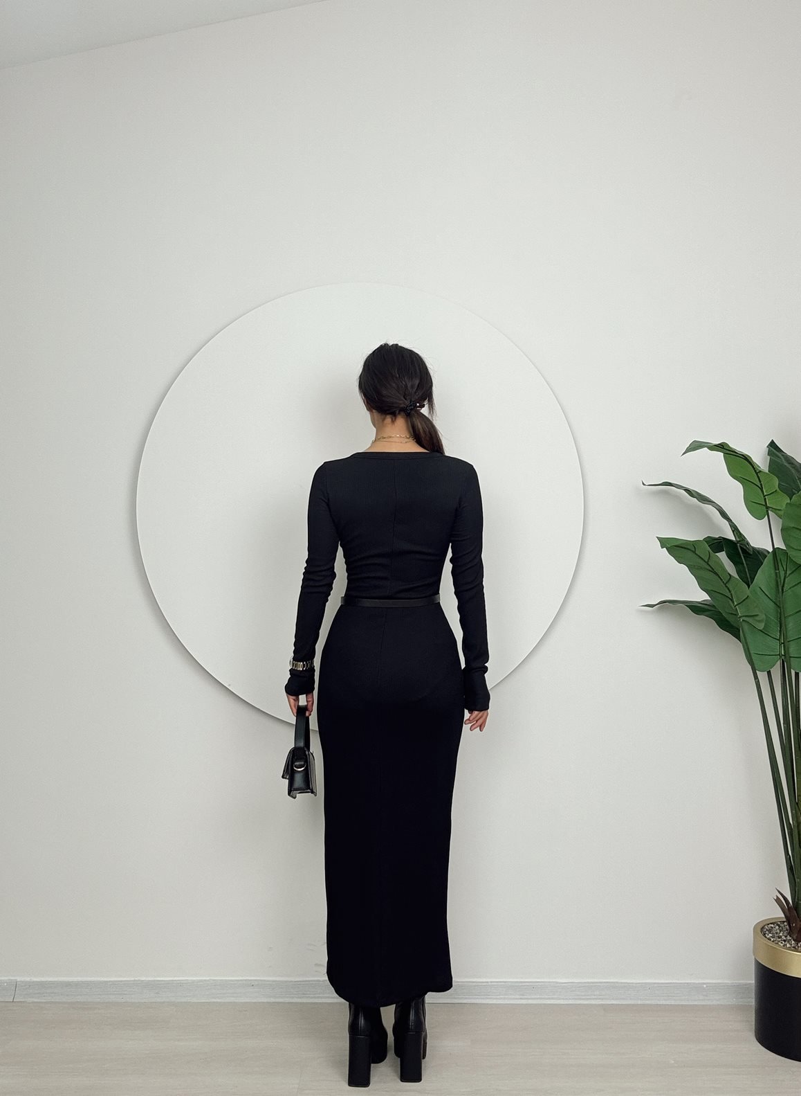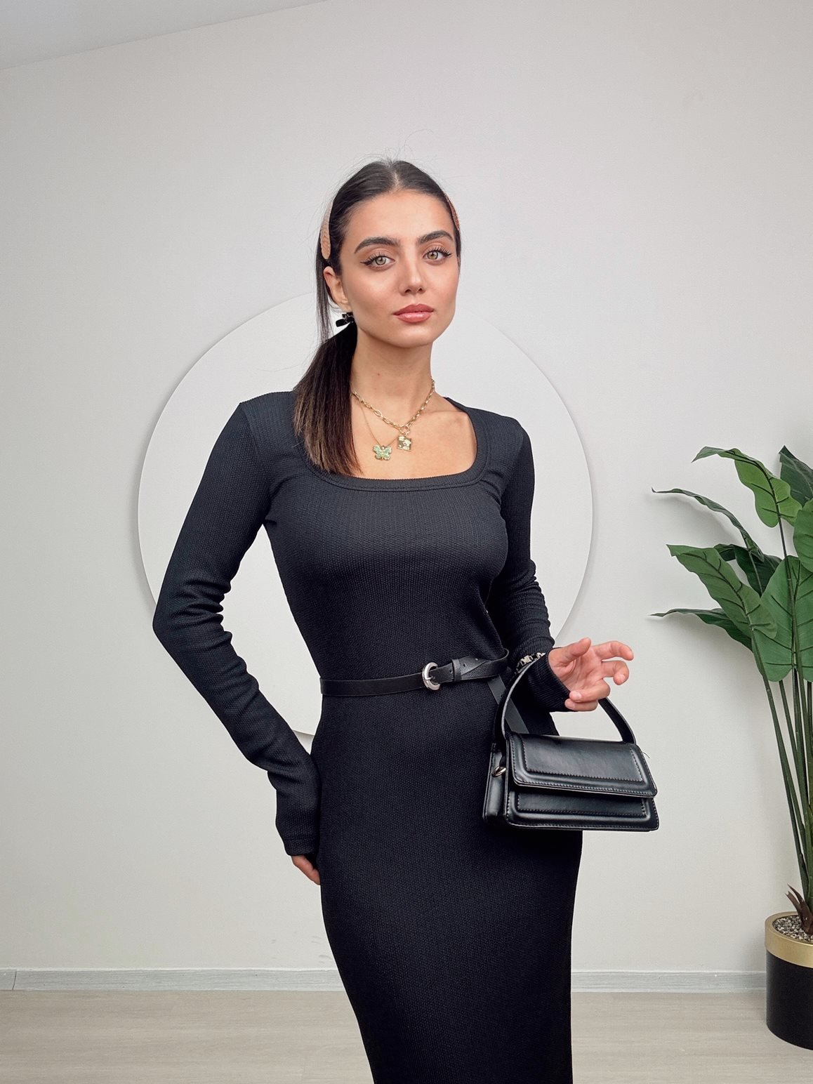 1013 U YAKA ÖRME ELBİSE BLACK - SİYAH