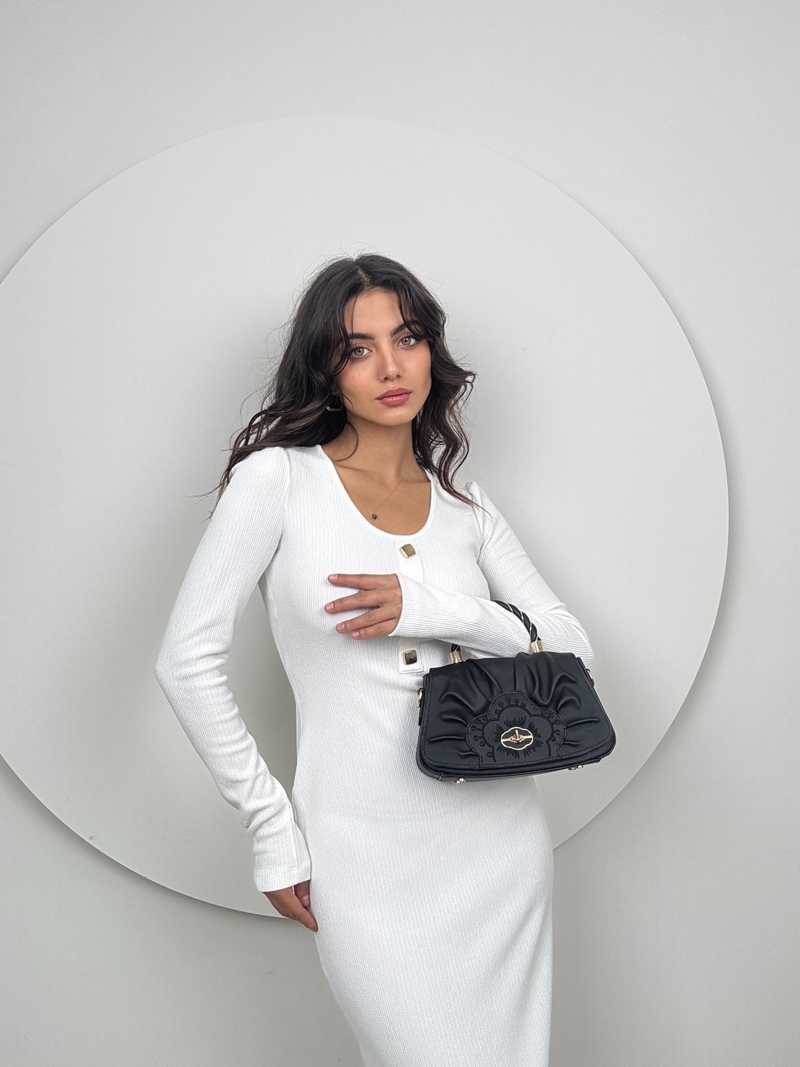 1014 V YAKA ÖRME ELBİSE WHİTE - BEYAZ