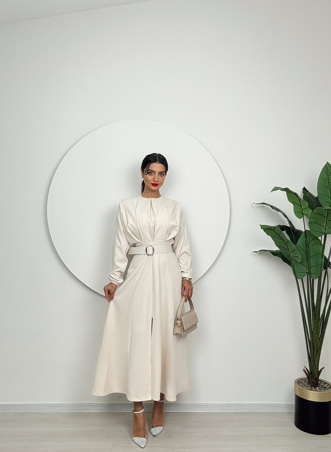 1017 PİLELİ KEMERLİ UZUN ELBİSE