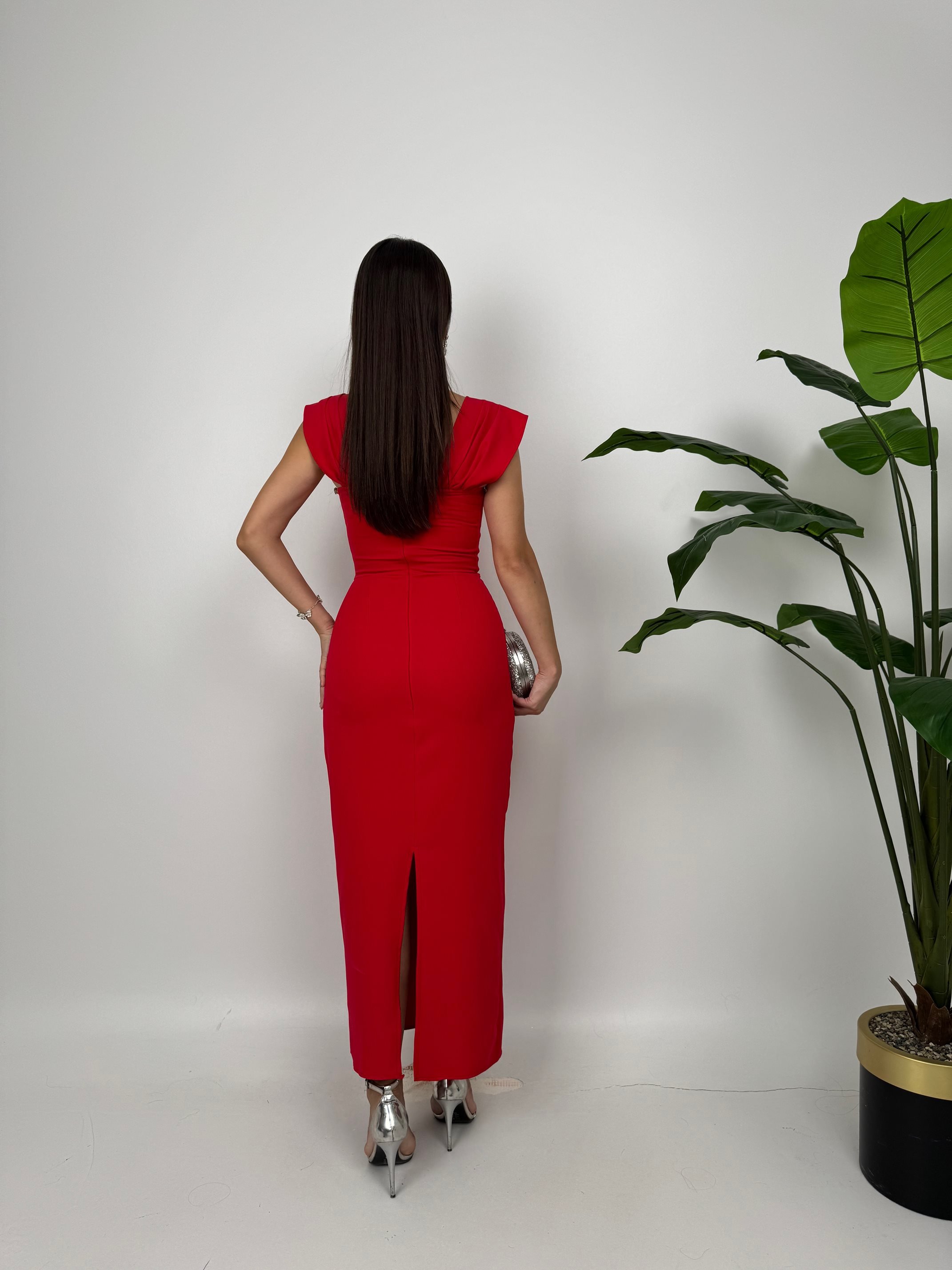 1022 GÖGÜS ELİŞİ DETAY ELBİSE RED - KIRMIZI