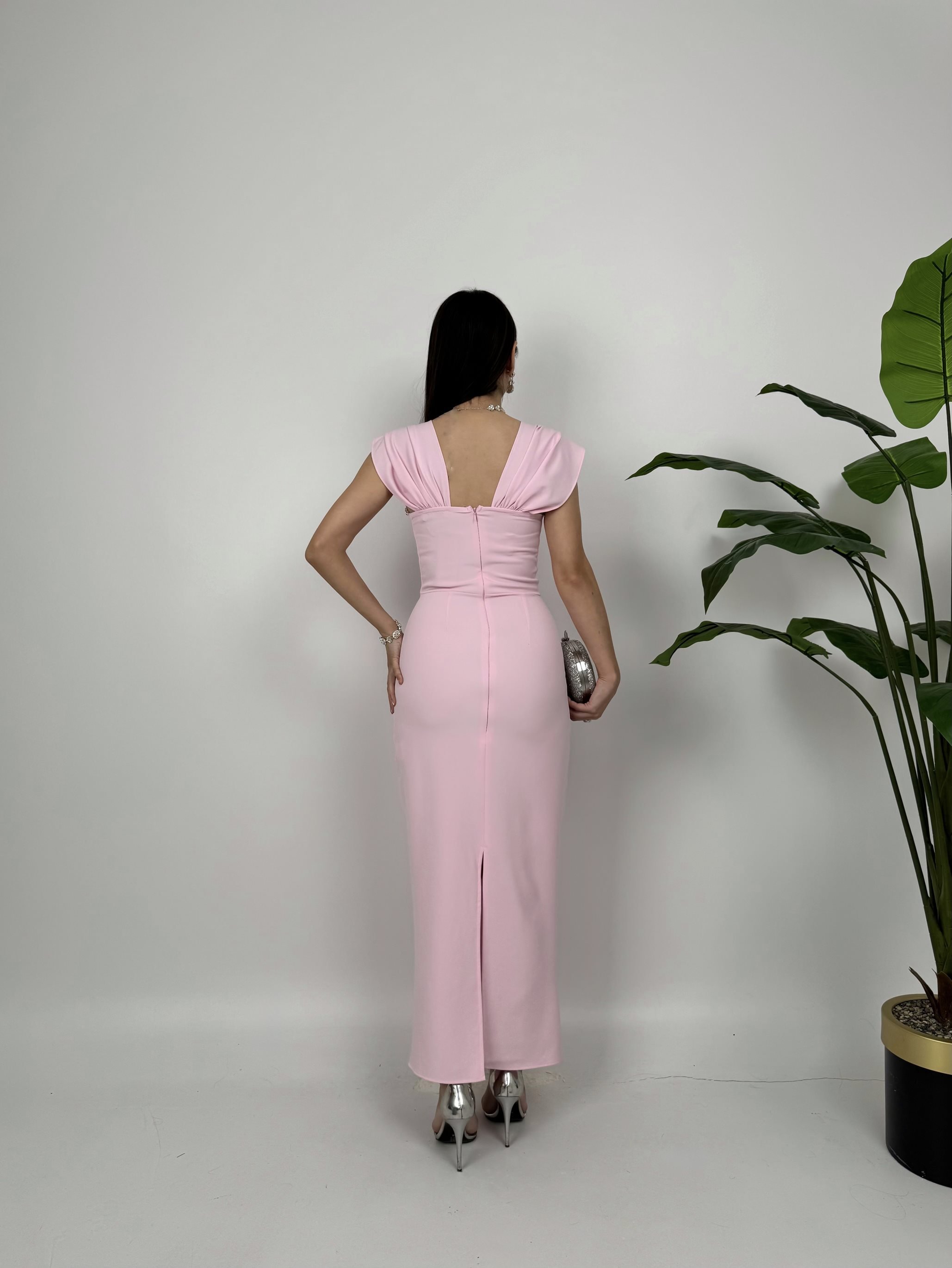 1022 GÖGÜS ELİŞİ DETAY ELBİSE PİNK - PEMBE