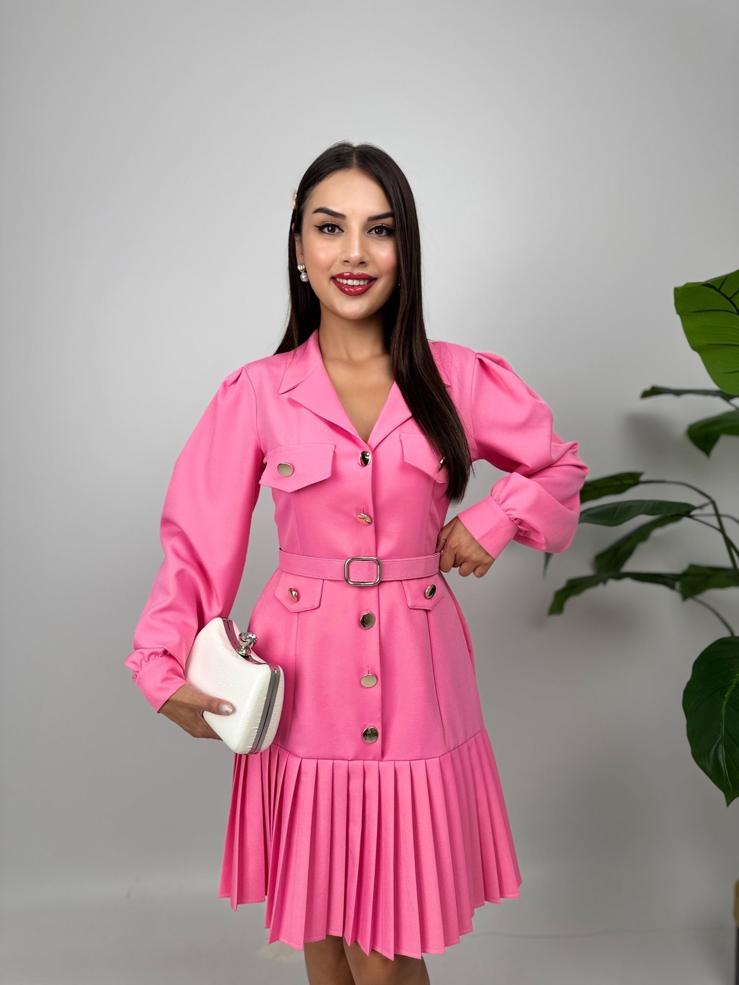 1023 PLİSELİ KISA ELBİSE PİNK - PEMBE