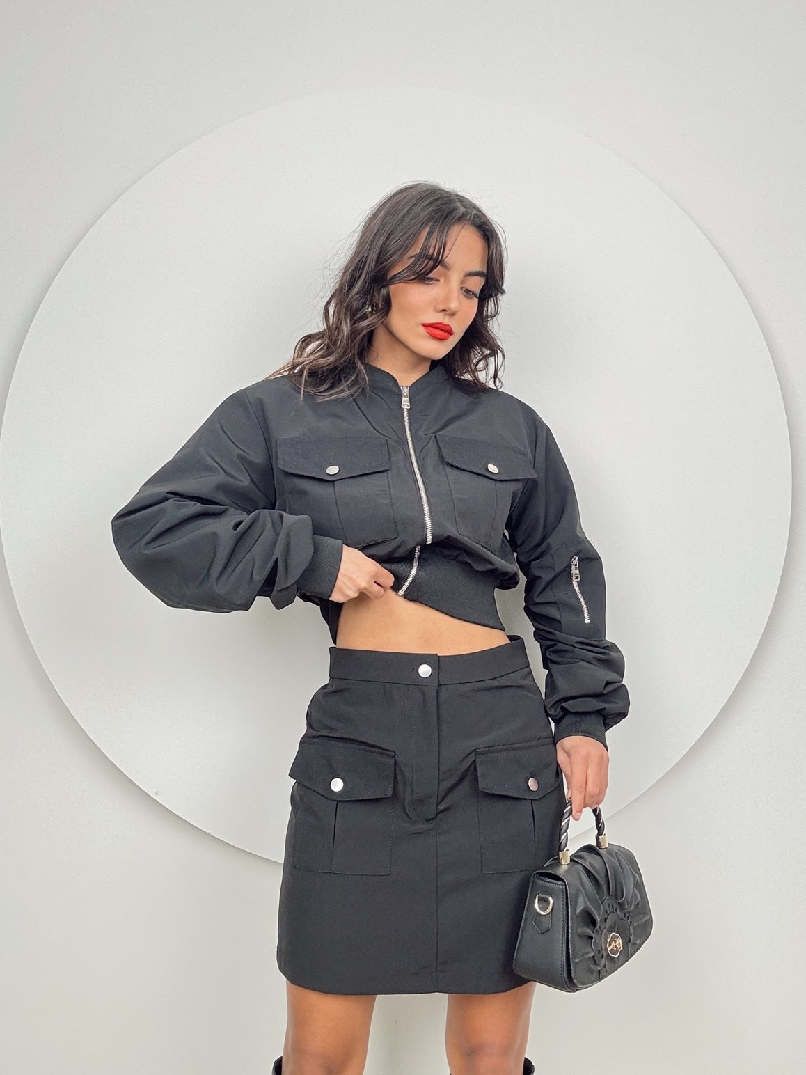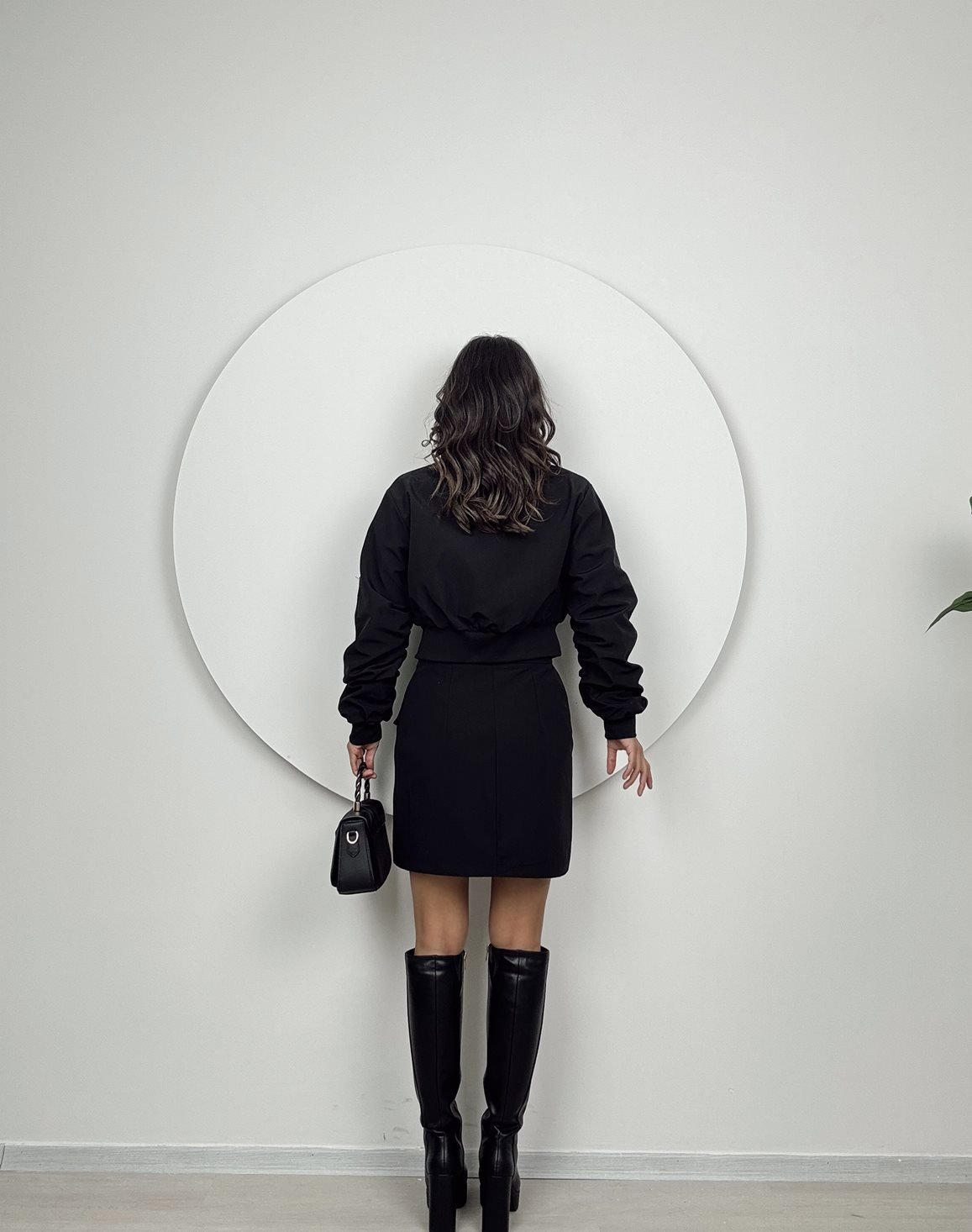 1028 KISA ETEKLİ BOMBER TAKIM BLACK - SİYAH