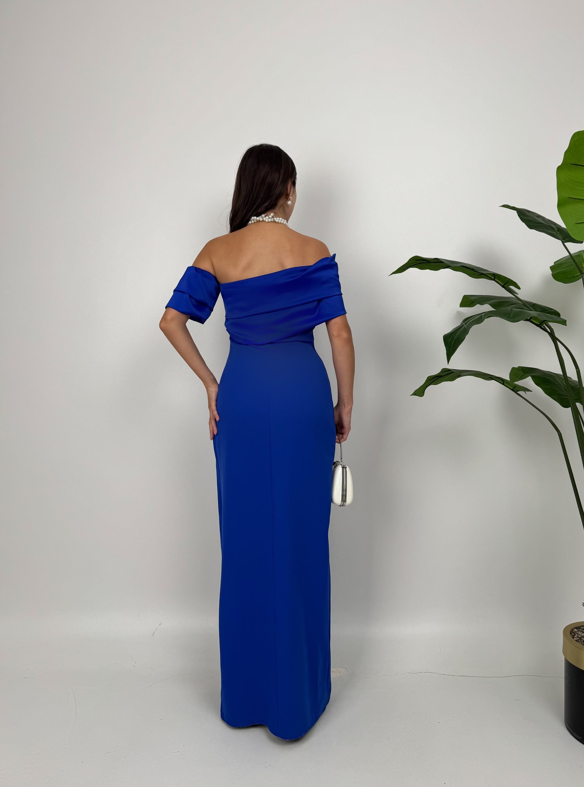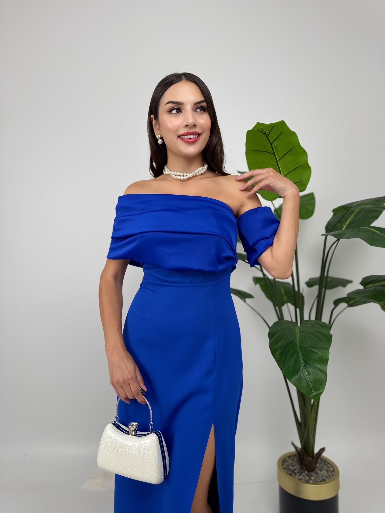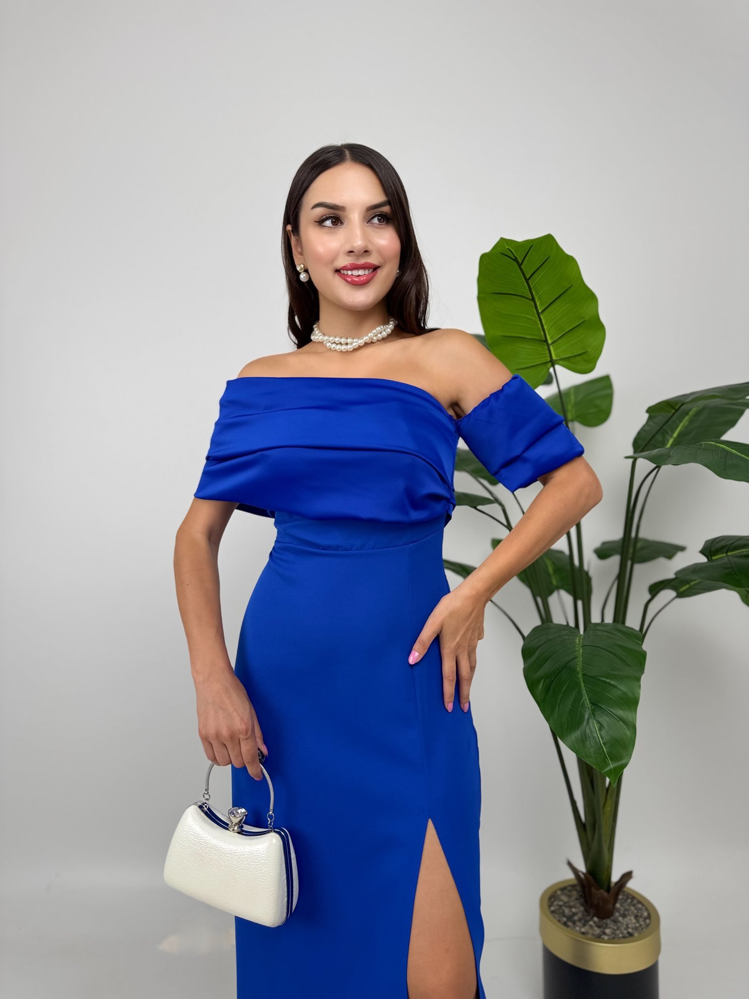 1035 GÖGÜS SATEN ELBİSE SAXE - SAX
