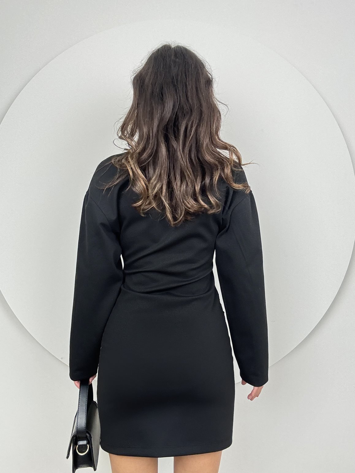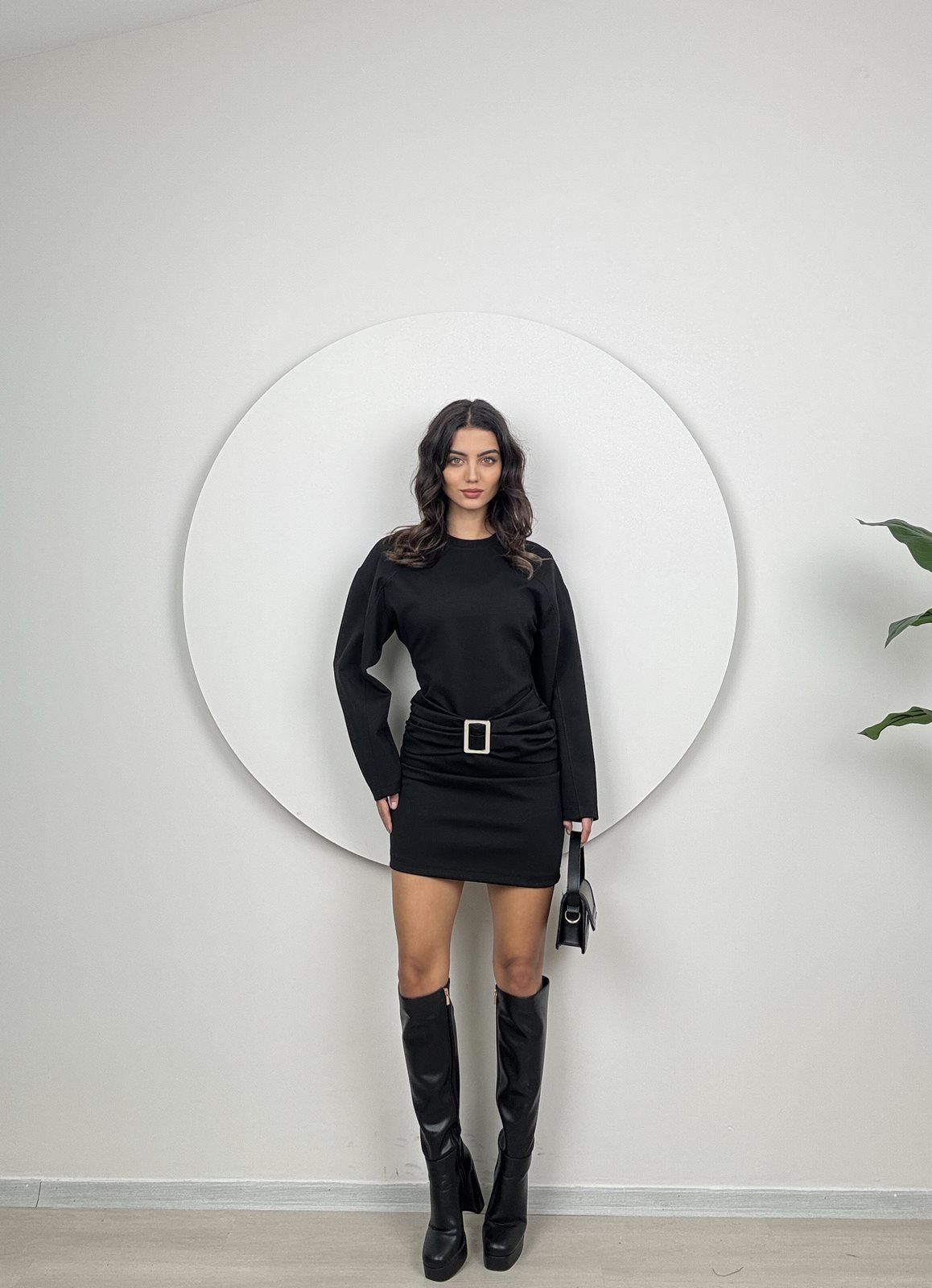 1062 ÖRME TOKALI MİNİ DAR ELBİSE BLACK - SİYAH