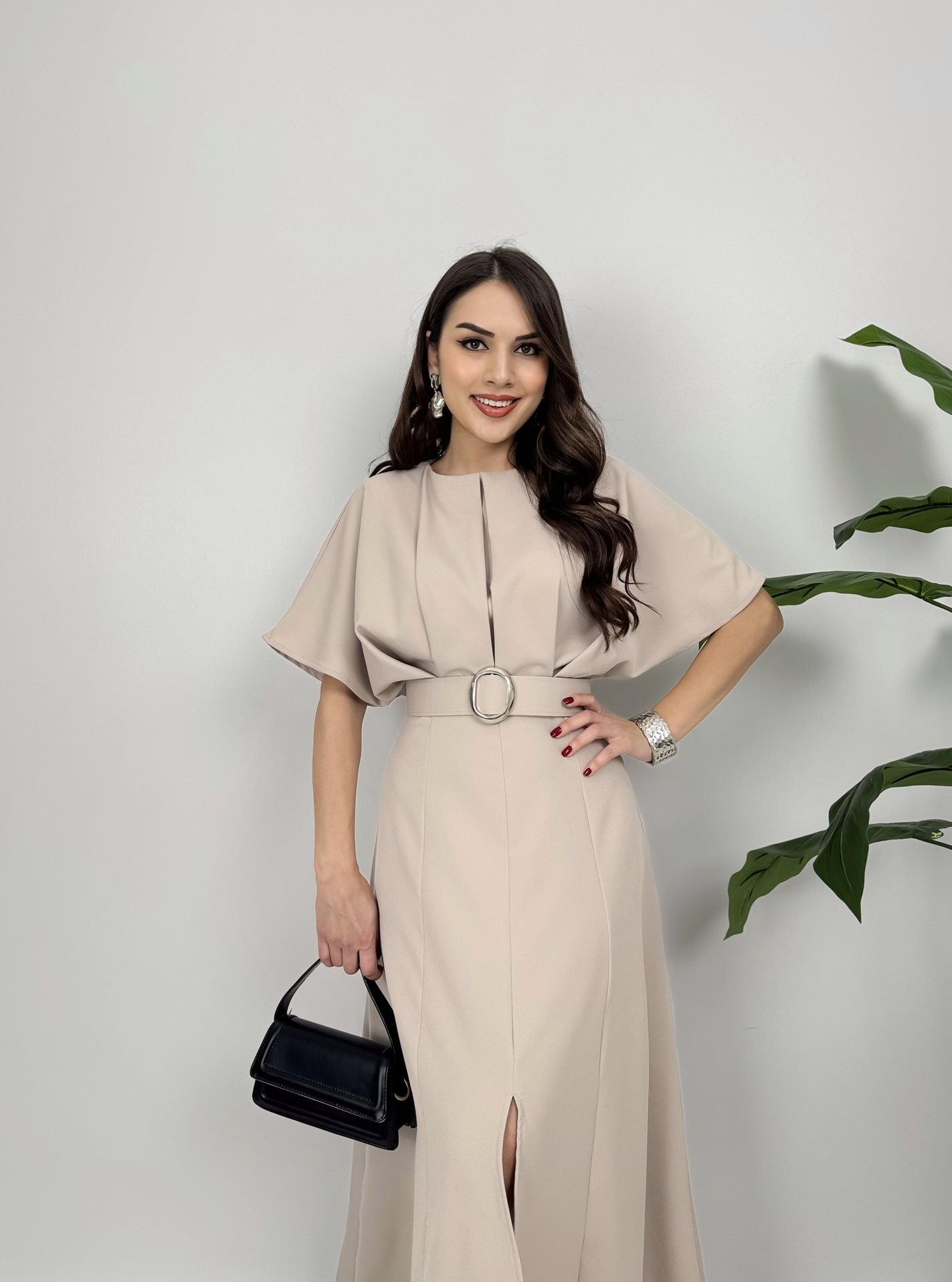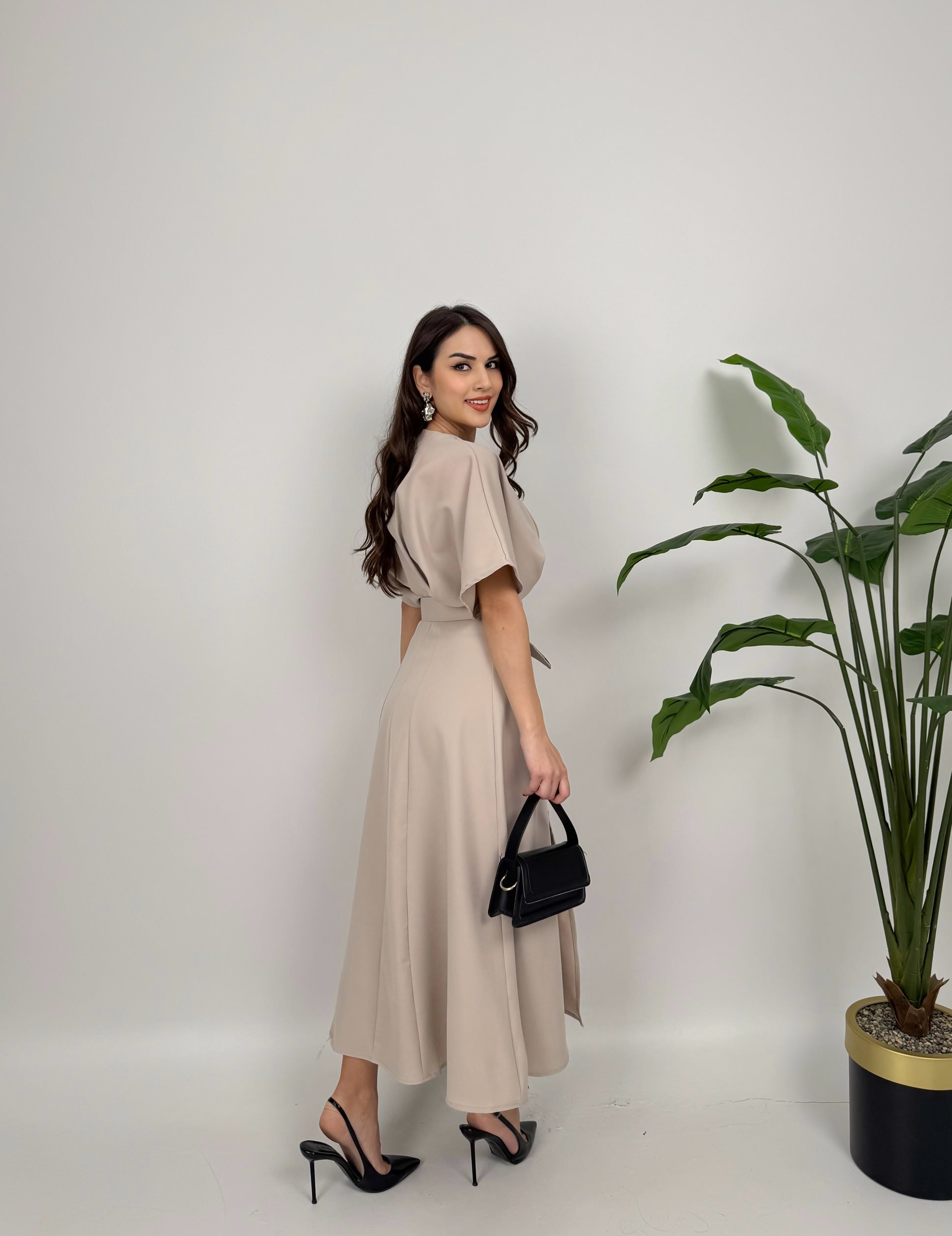 2056 ATLAS KUMAŞ KEMERLİ ELBİSE