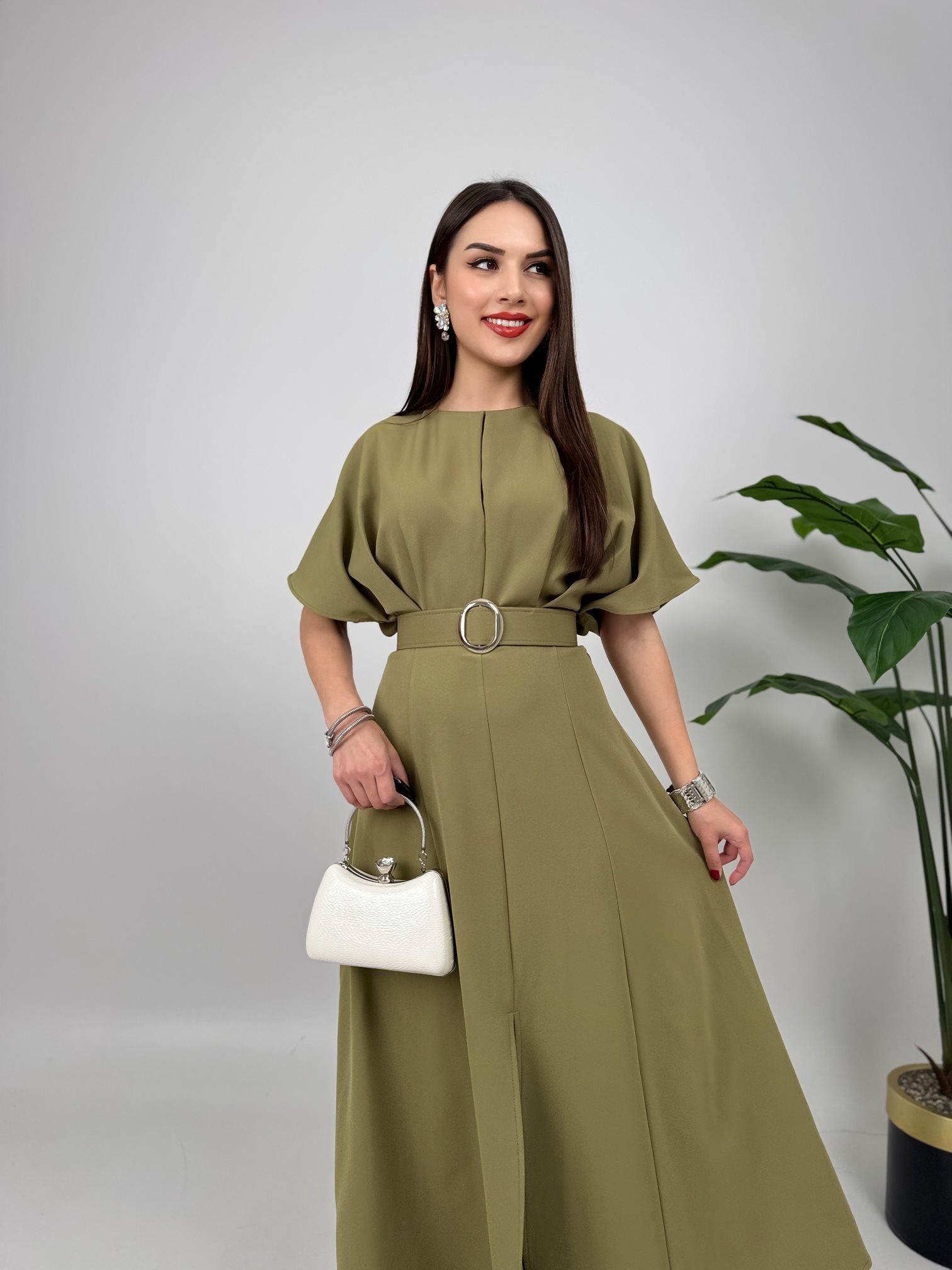 2056 ATLAS KUMAŞ KEMERLİ ELBİSE KHAKİ - HAKİ