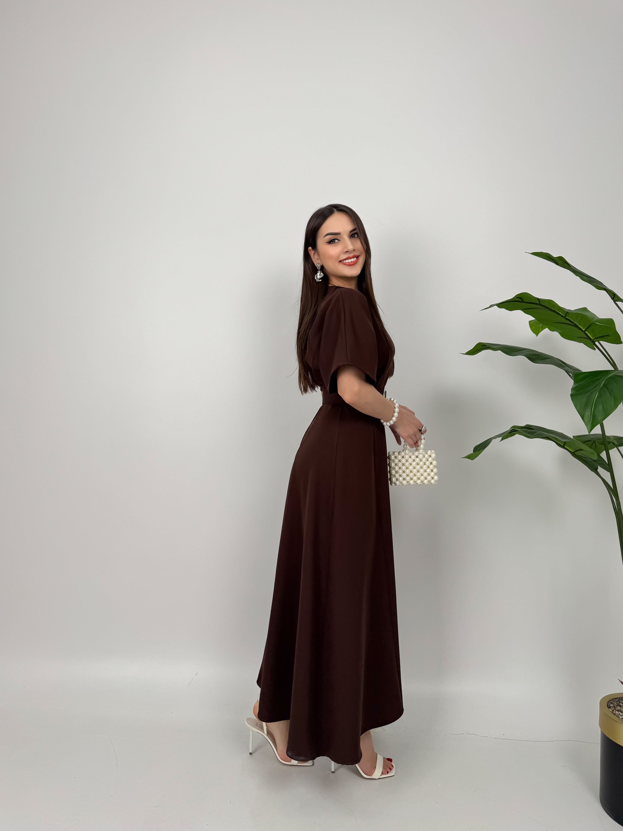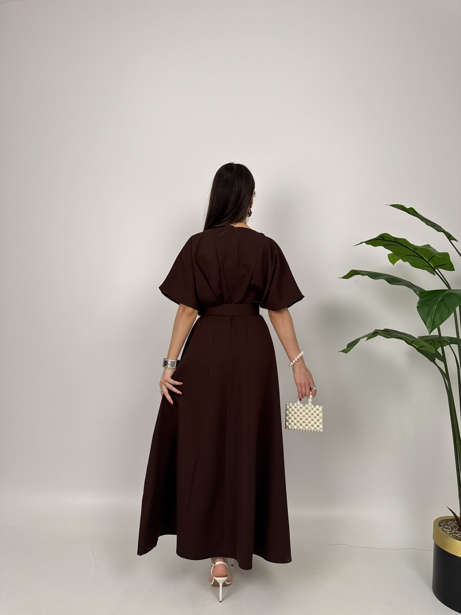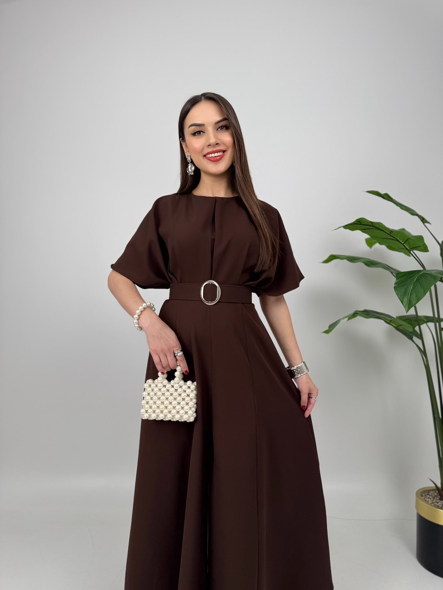 2056 ATLAS KUMAŞ KEMERLİ ELBİSE BROWN - KAHVE