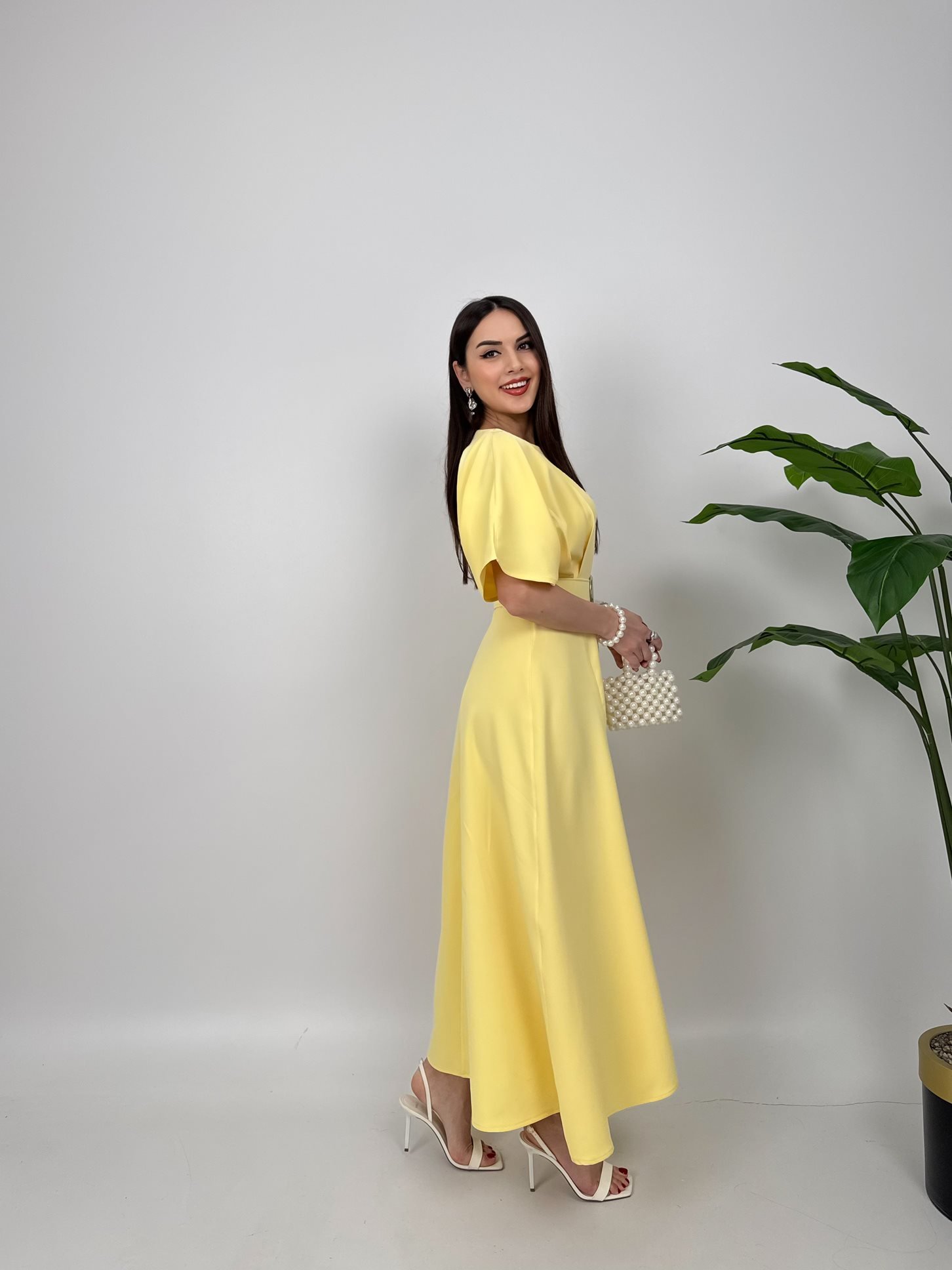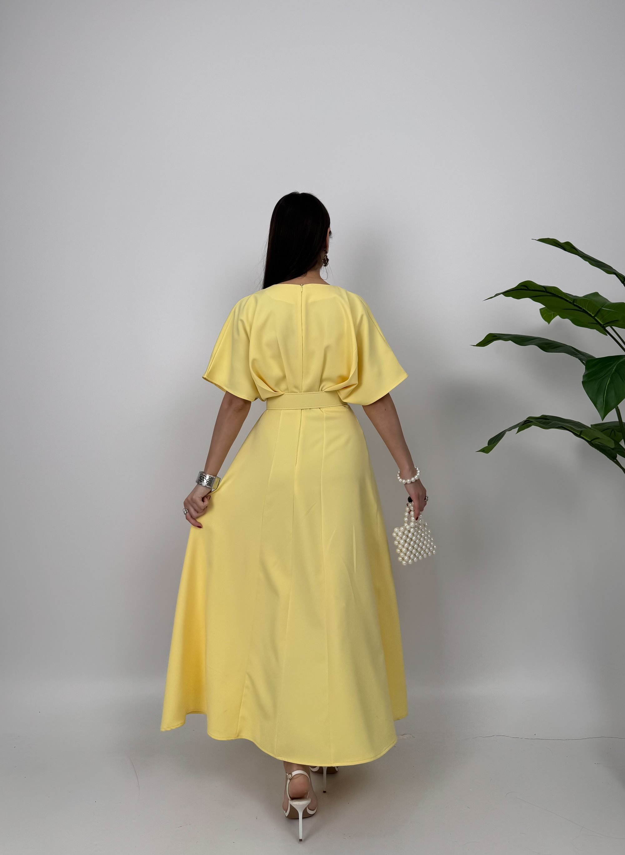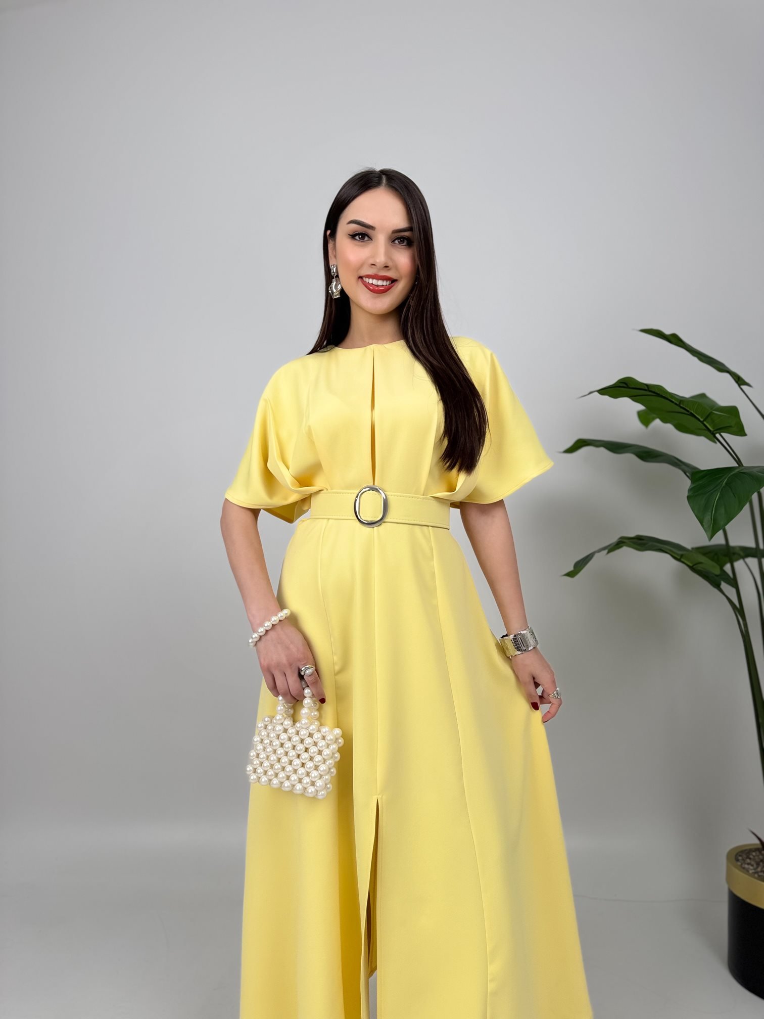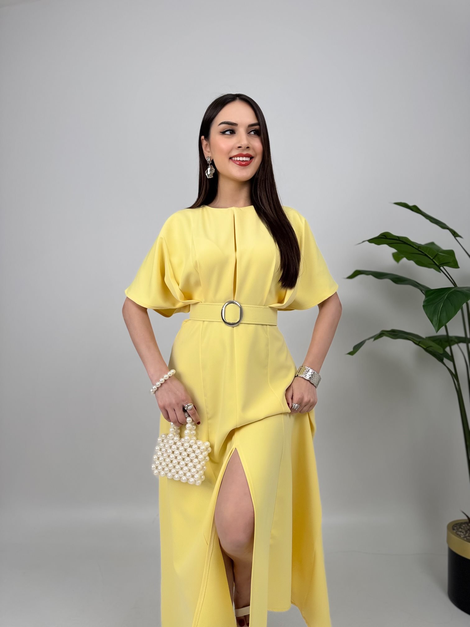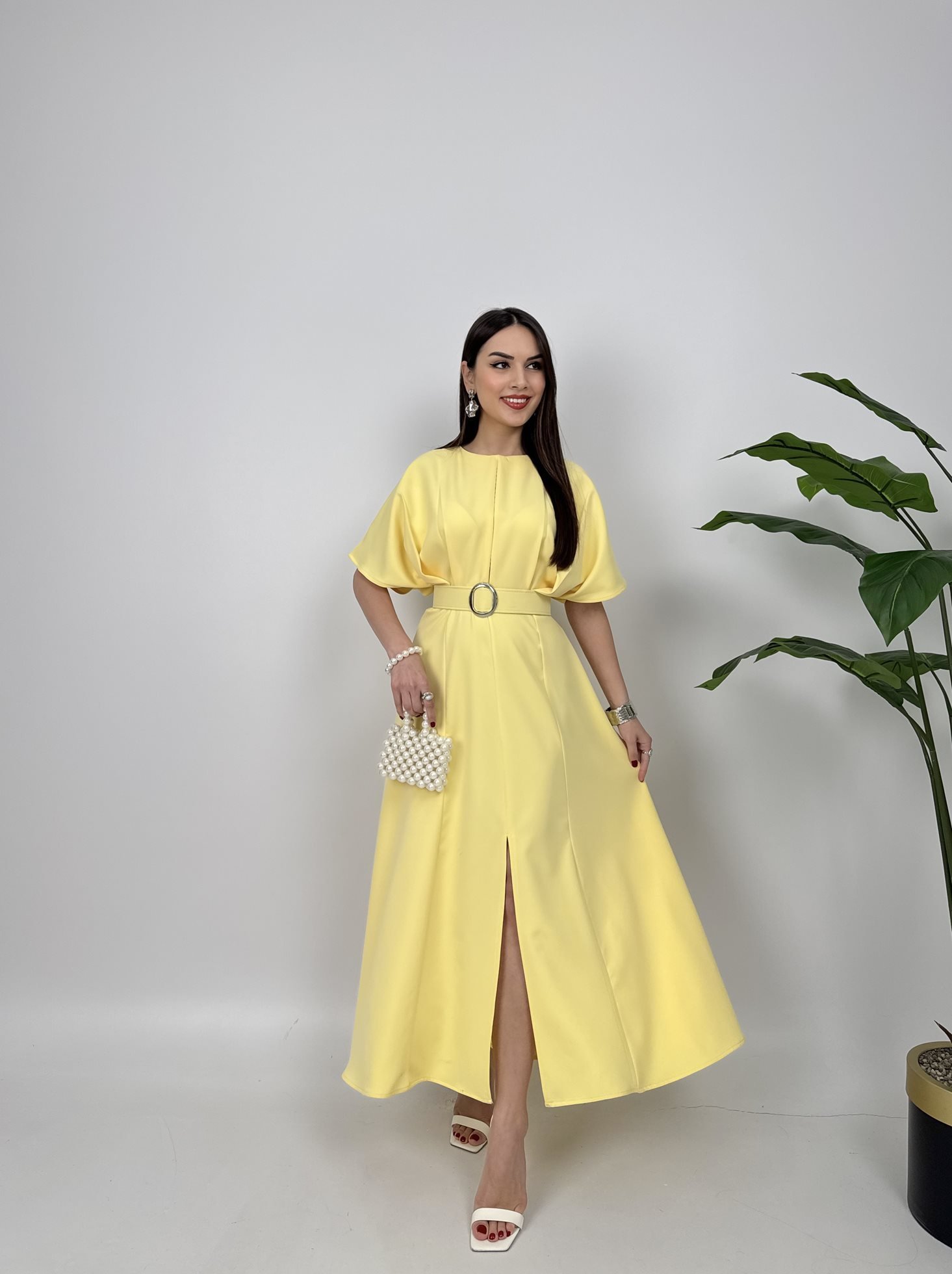 2056 ATLAS KUMAŞ KEMERLİ ELBİSE YELLOW - SARI