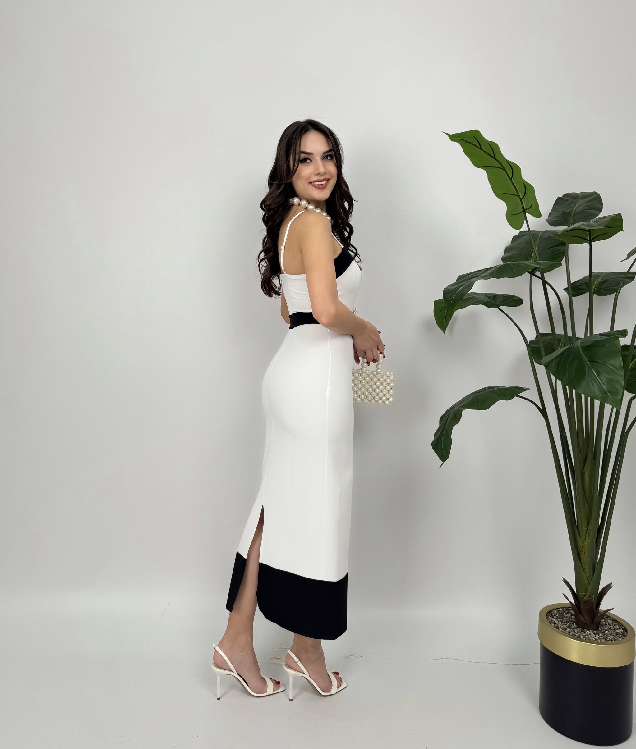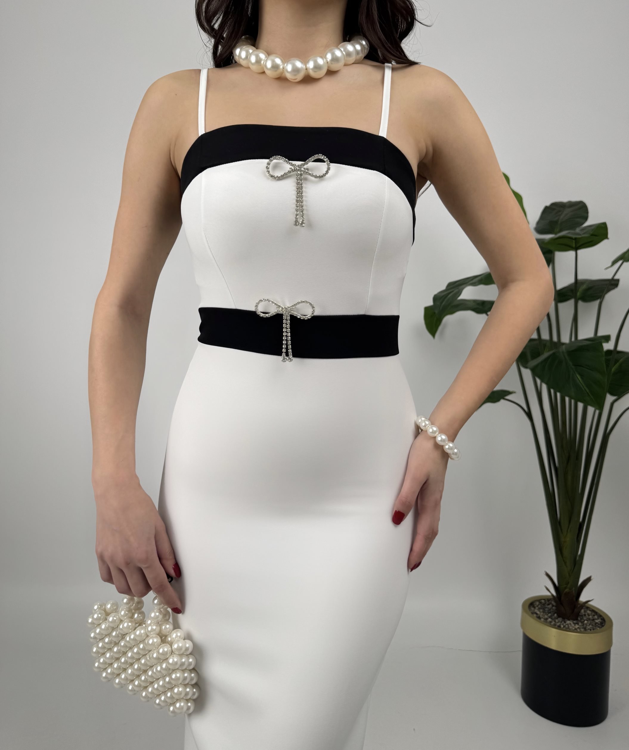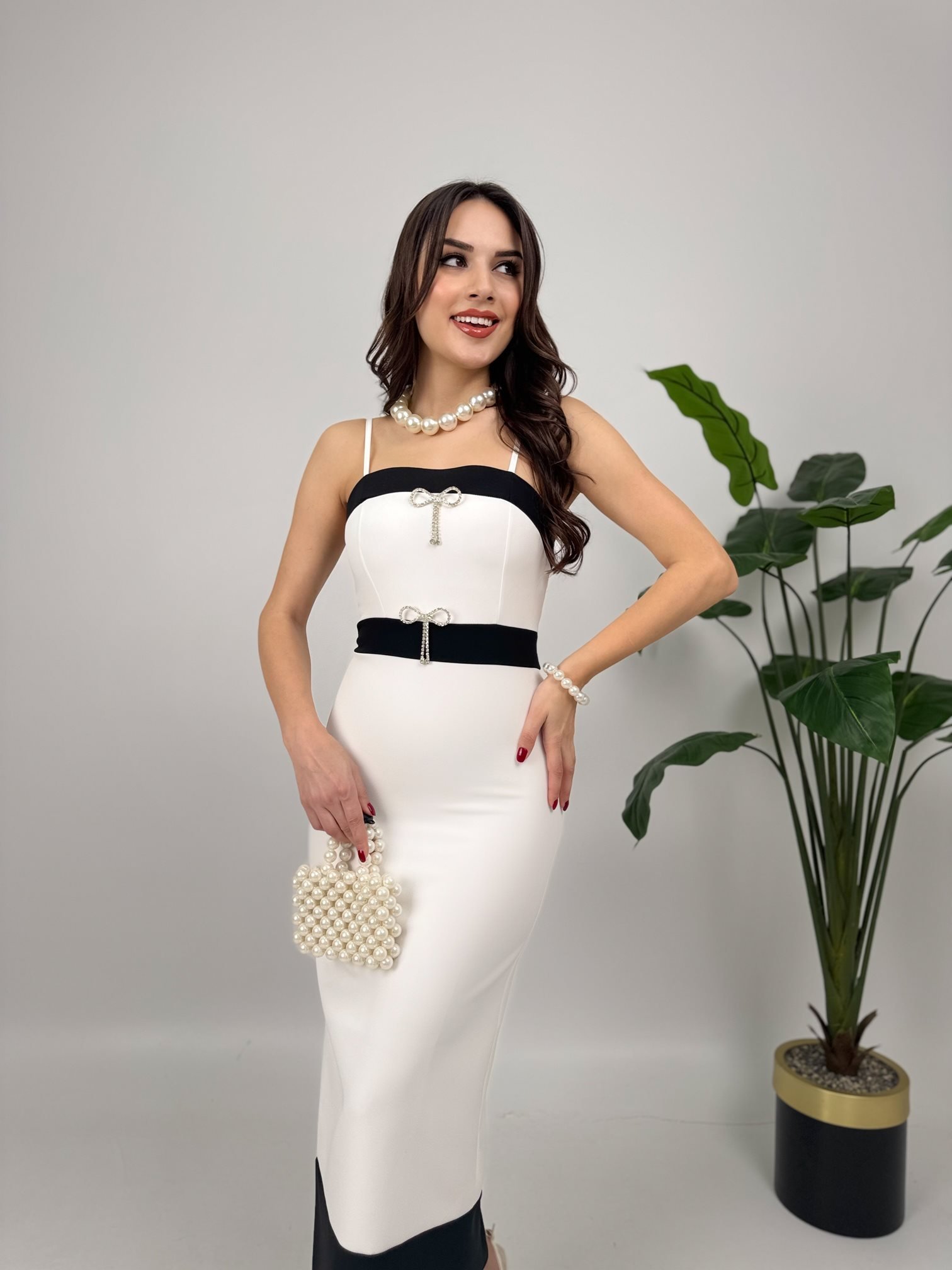 2079 ASKILI FİYONK TAŞLI AKS ELBİSE WHİTE - BEYAZ