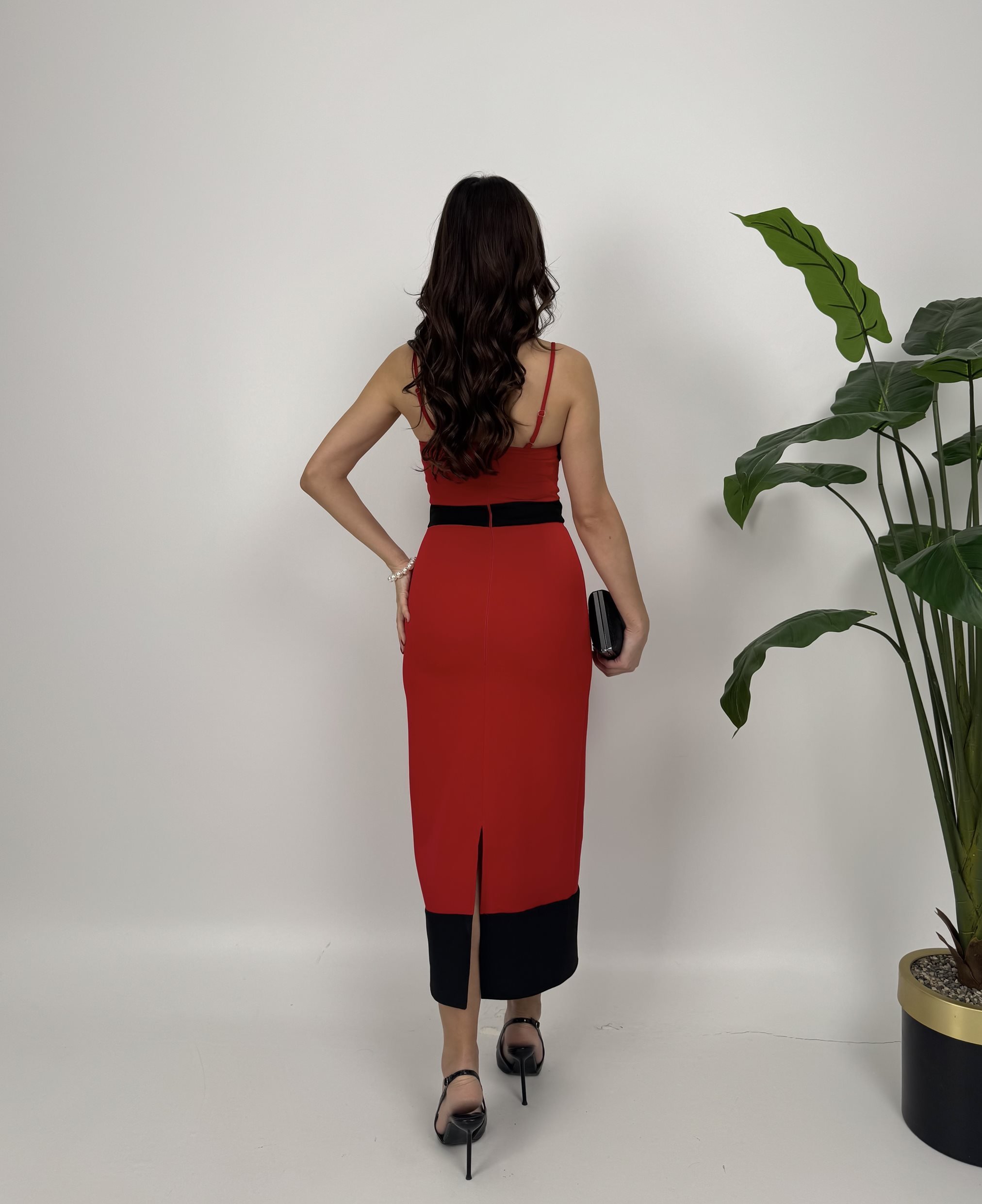 2079 ASKILI FİYONK TAŞLI AKS ELBİSE RED - KIRMIZI