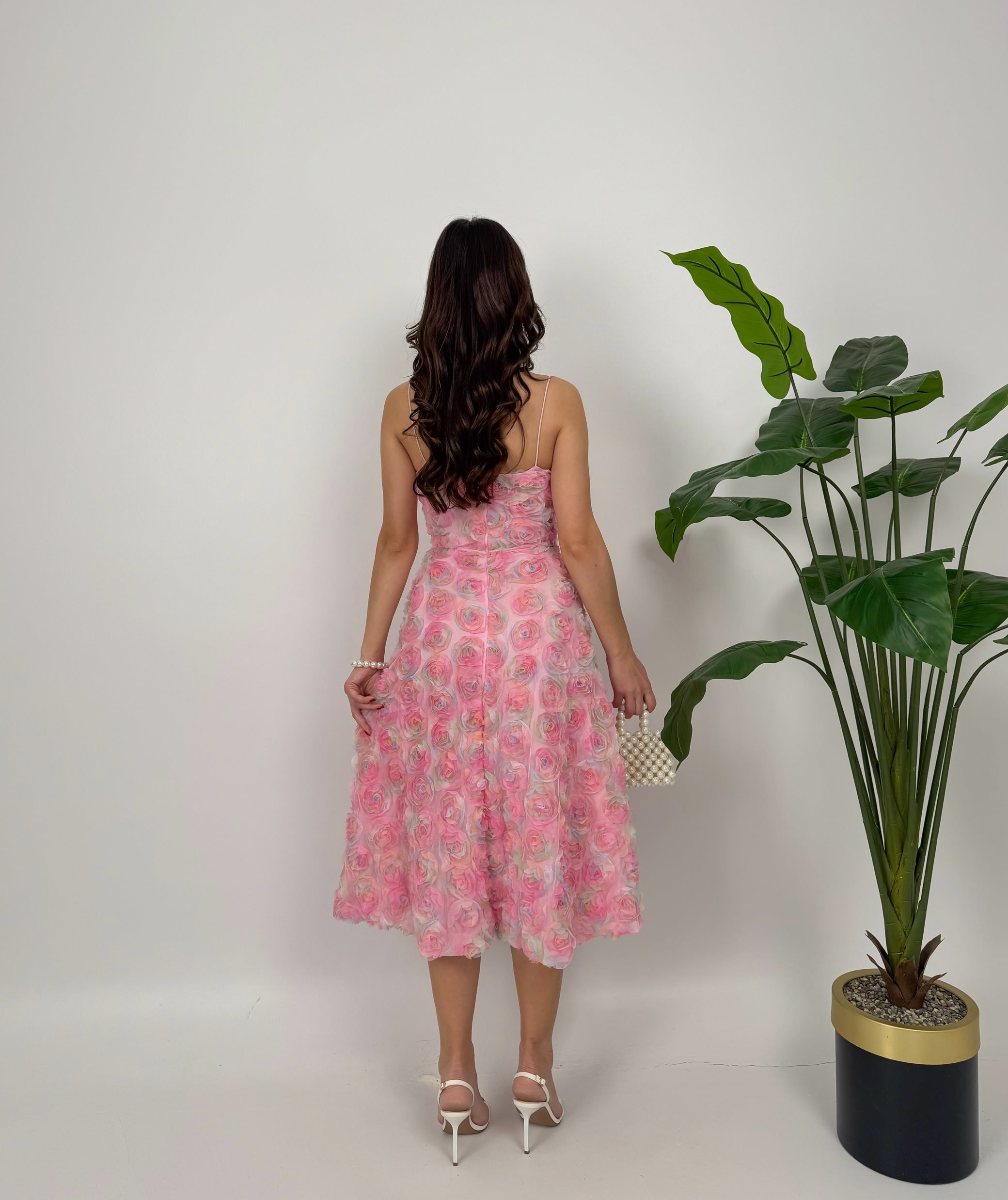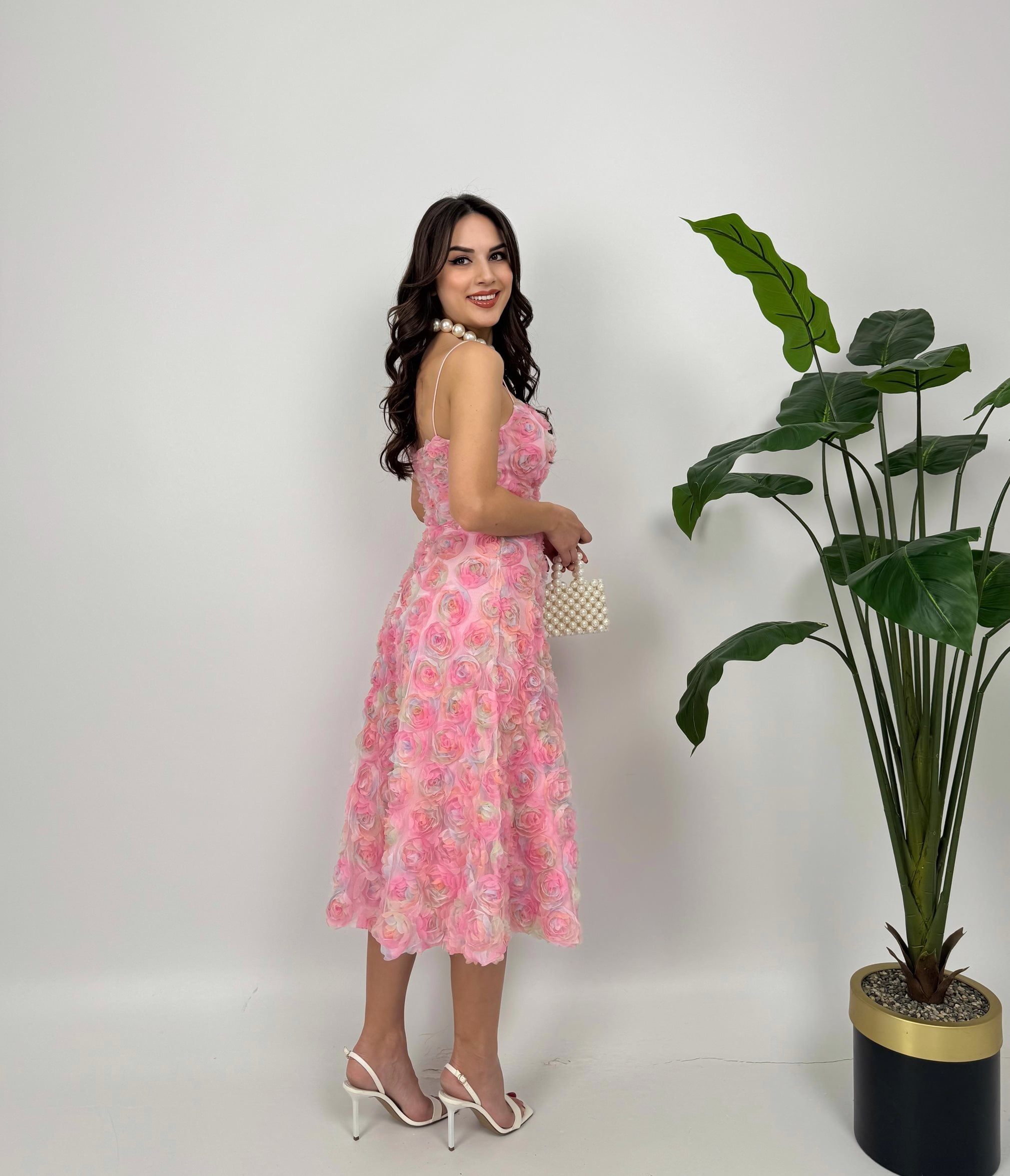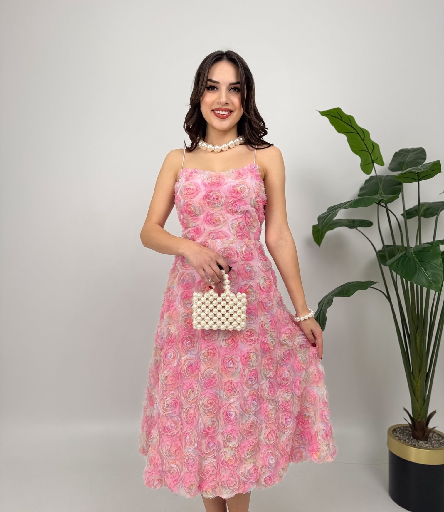 2081 İTHAL GÜL DESEN ELBİSE PİNK - PEMBE