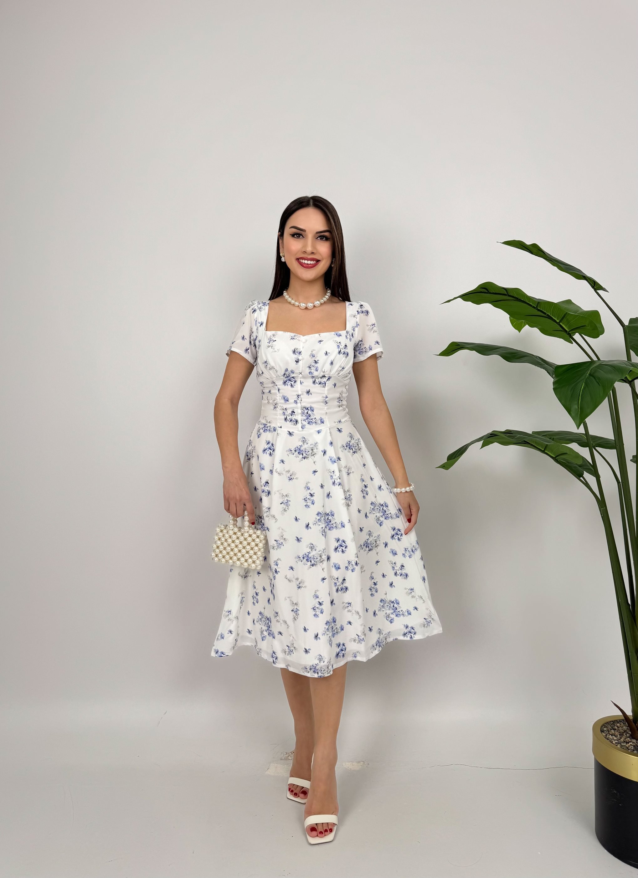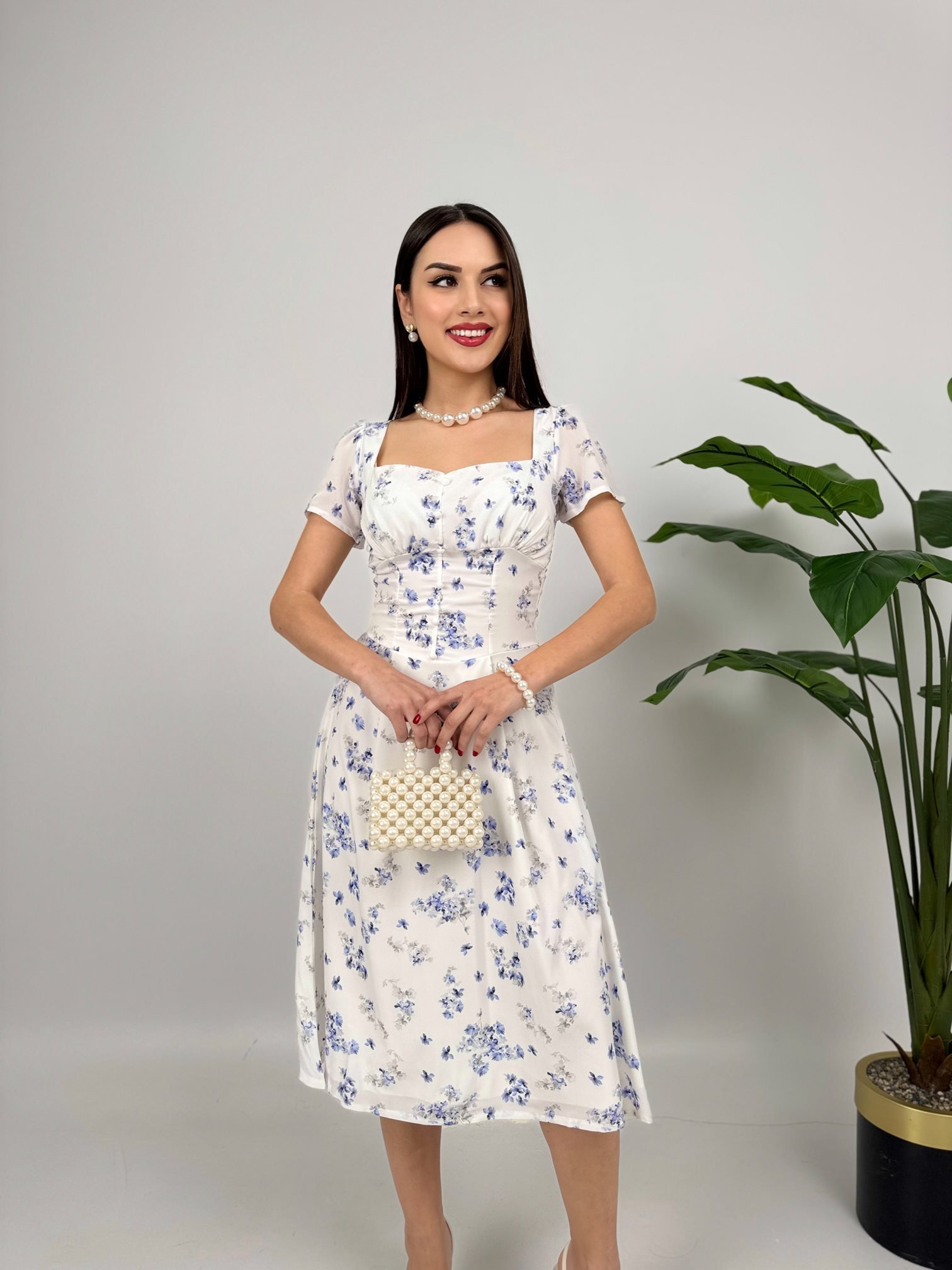 2133 ÇİÇEK DESENLİ ELBİSE BLUE - MAVİ