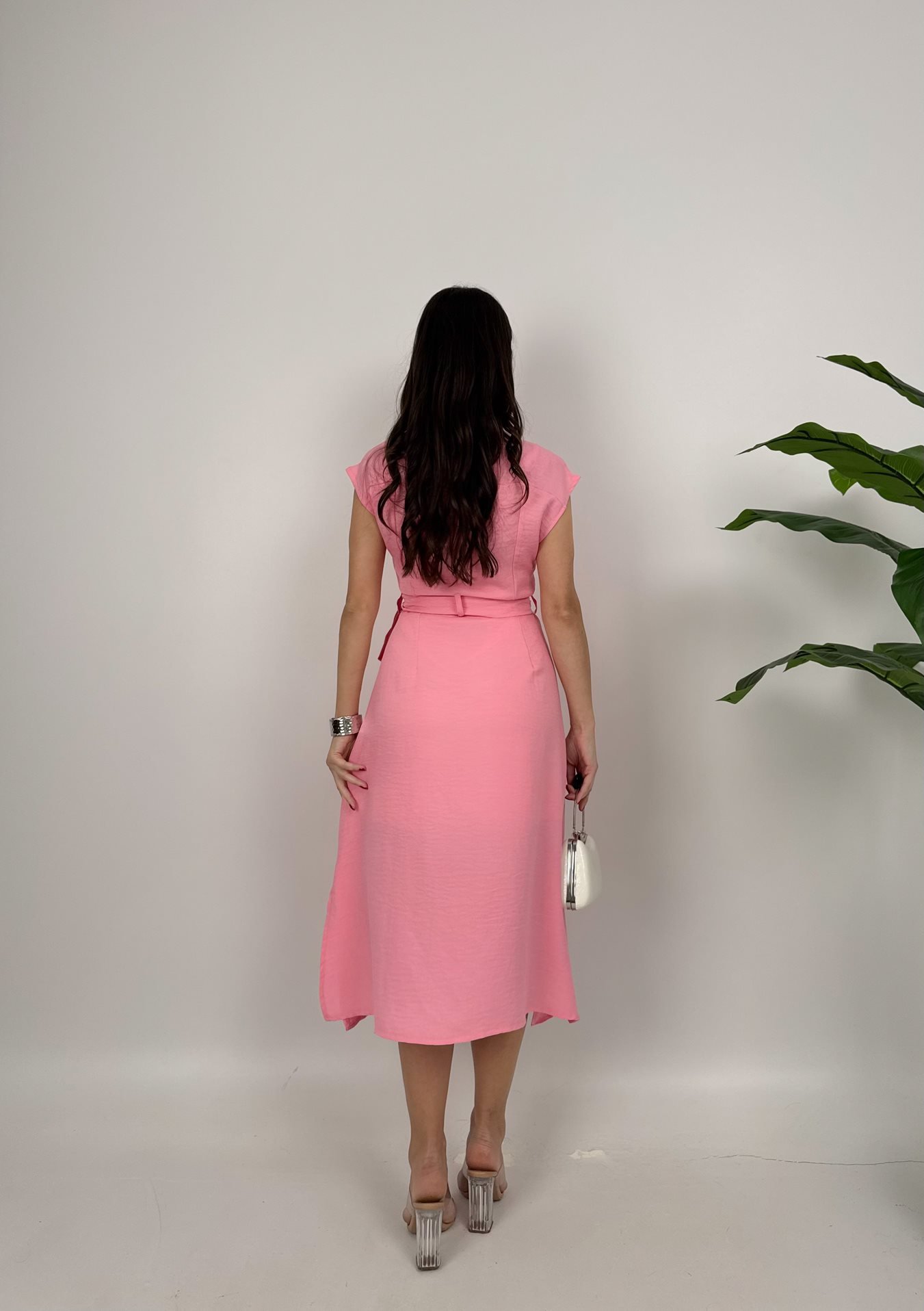 2150 KOLSUZ MİDİ ELBİSE PİNK - PEMBE