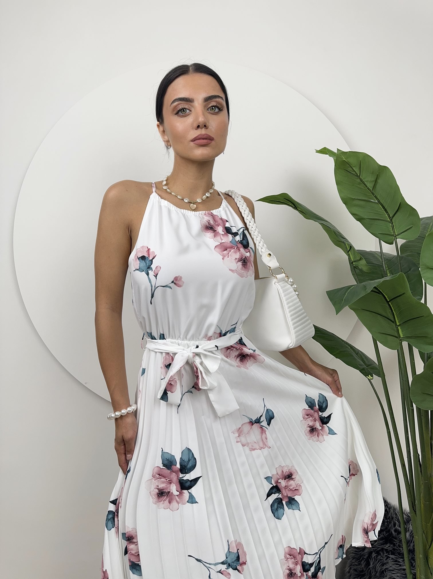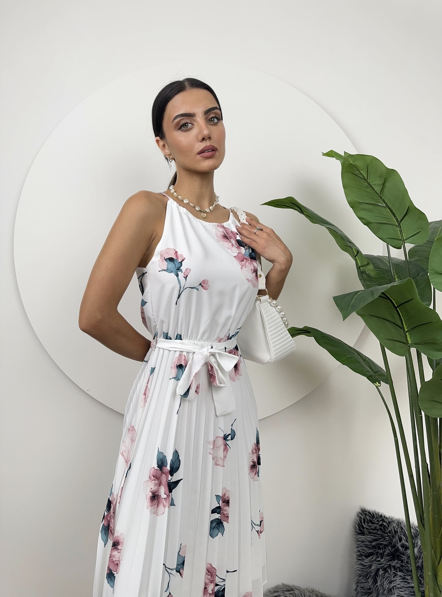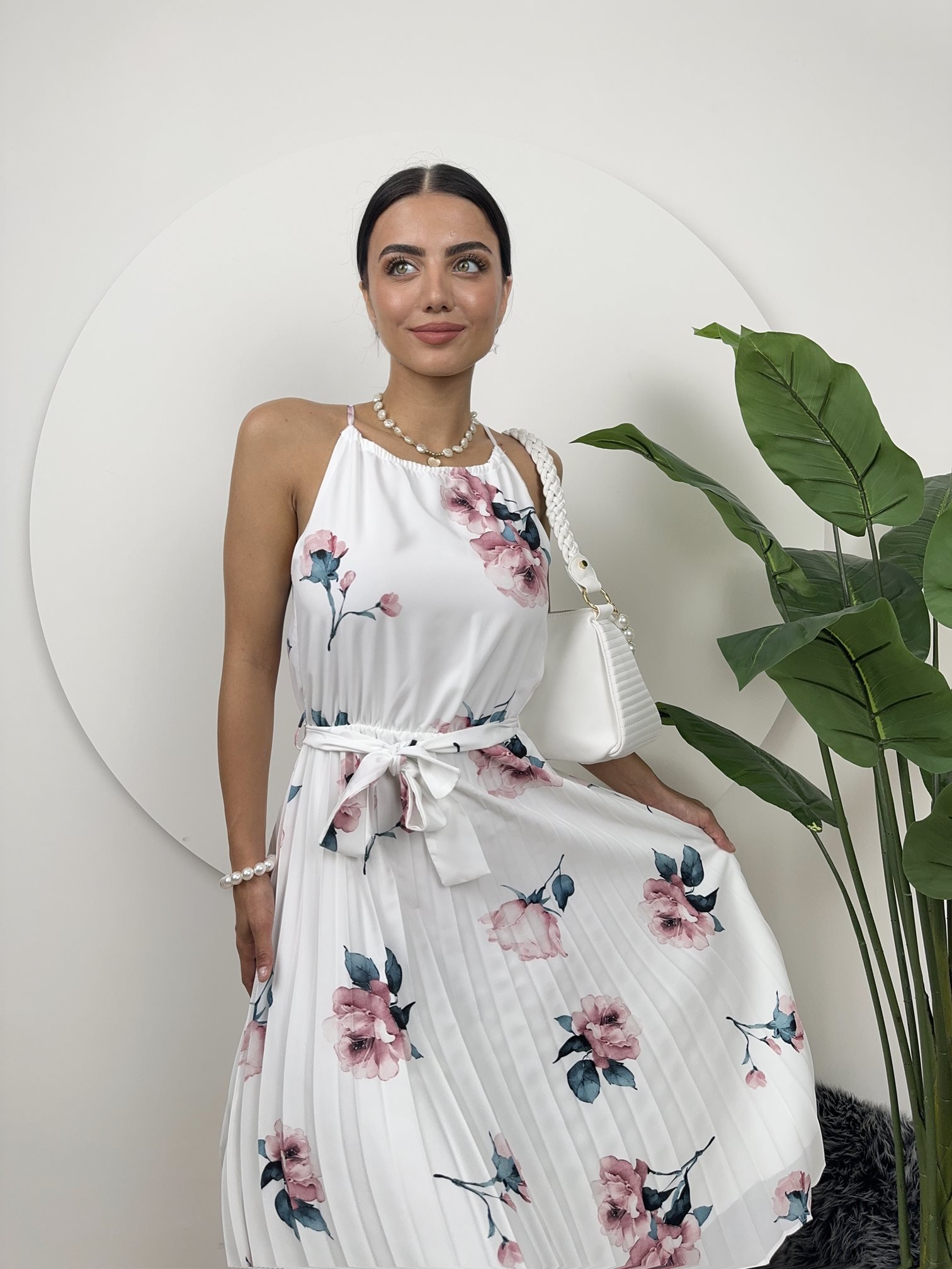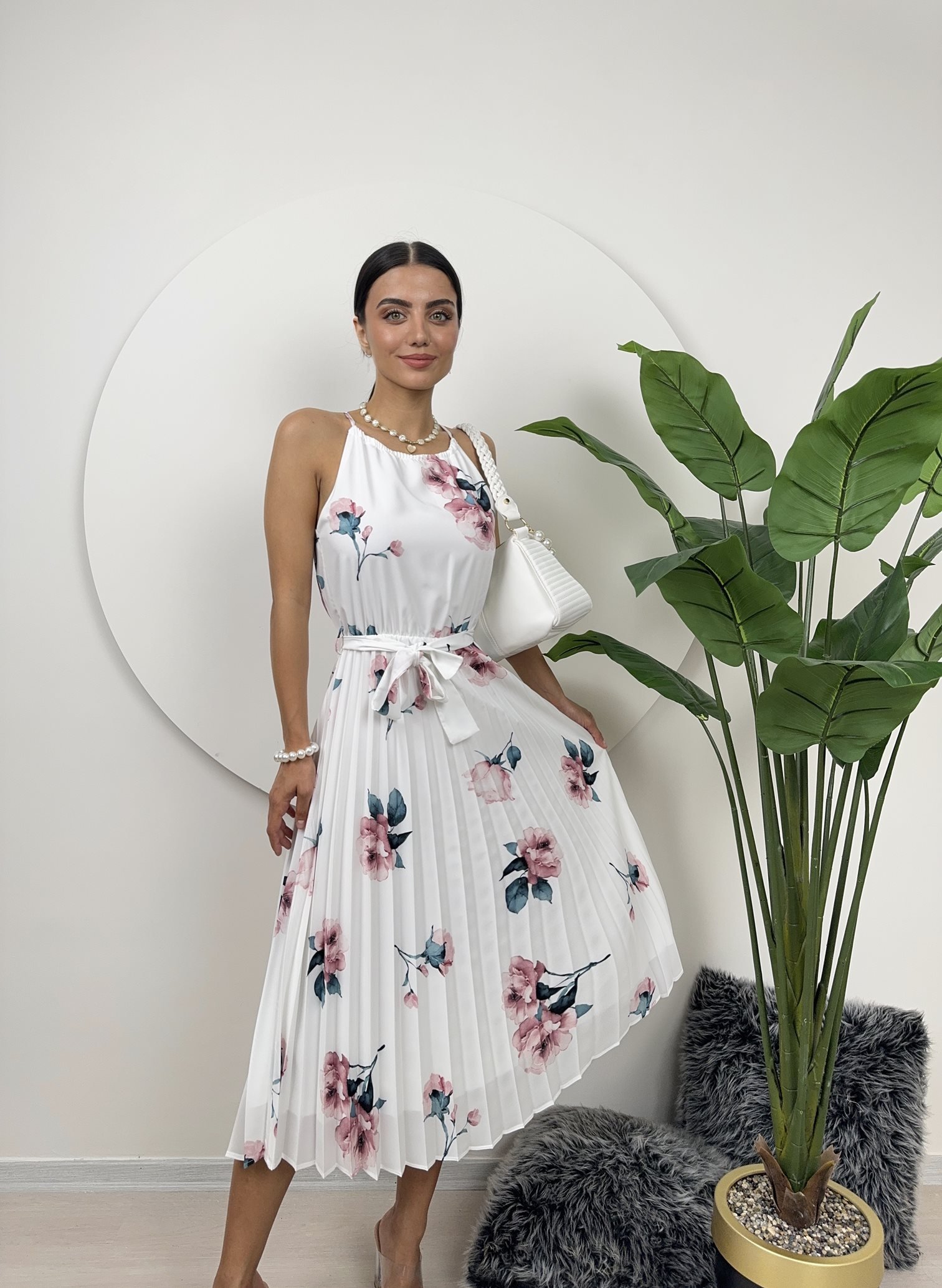 2158 GÜL DESENLİ BAĞCIKLI ELBİSE