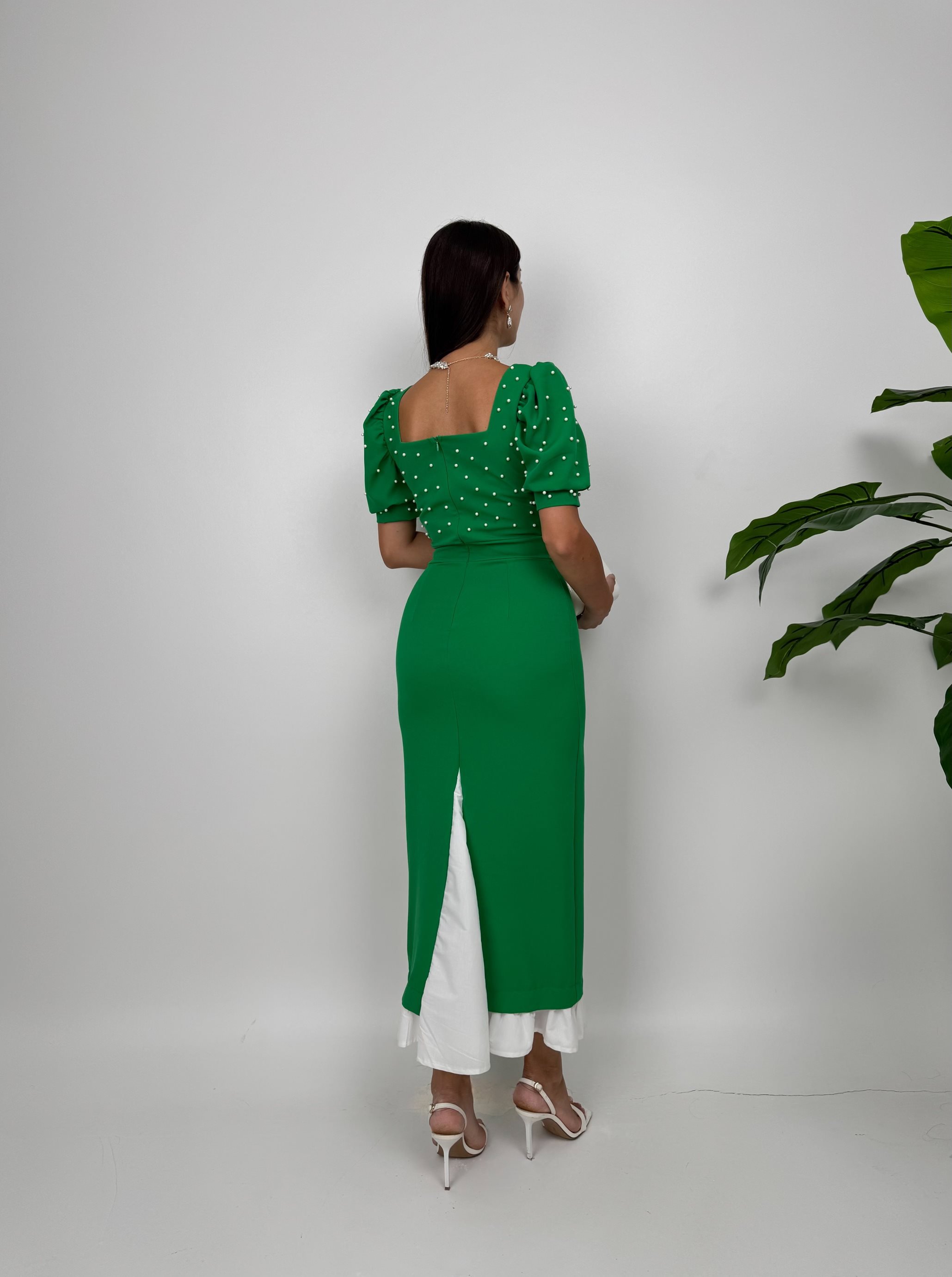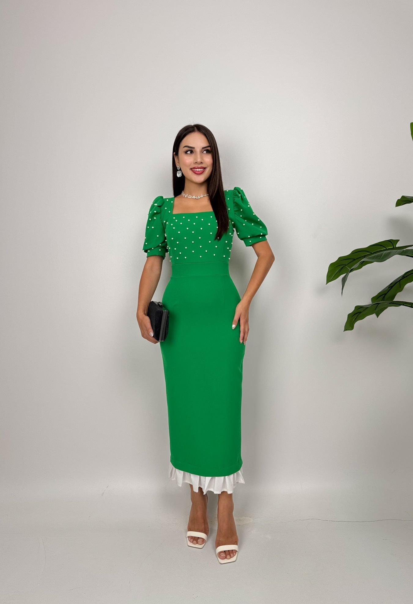 3005 İNCİ DETAYLI ELBİSE GREEN - YEŞİL
