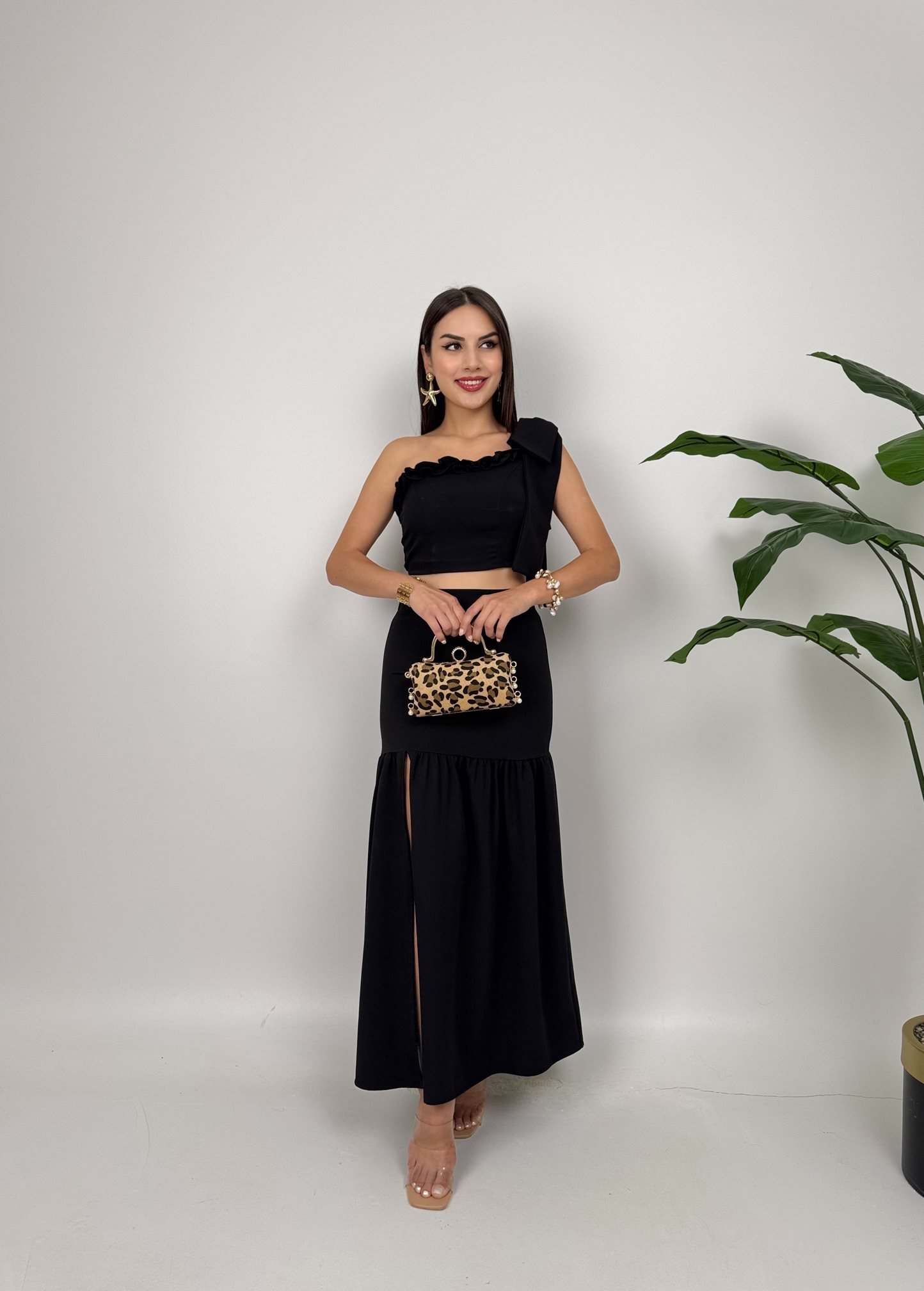 3011 GOĞUS FIRFIRLI ELBİSE BLACK - SİYAH