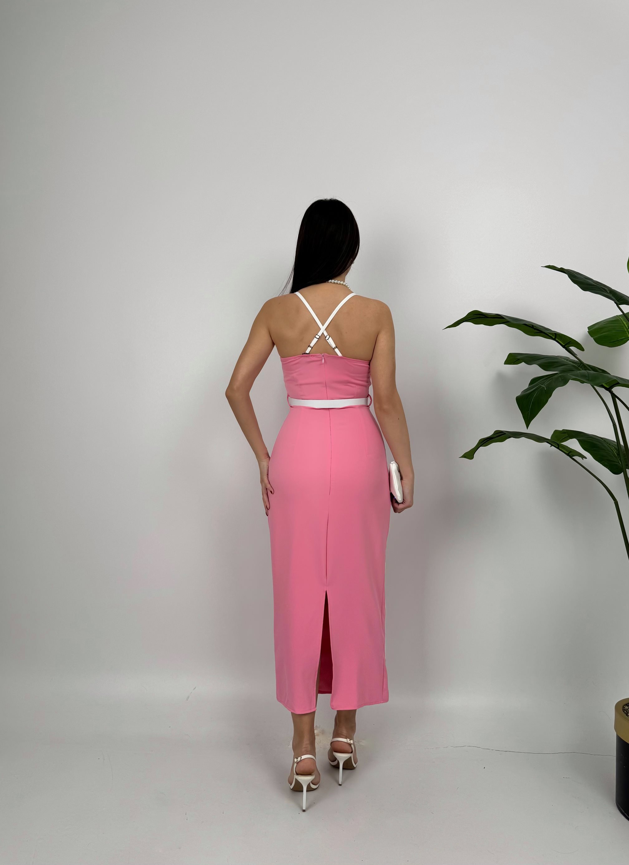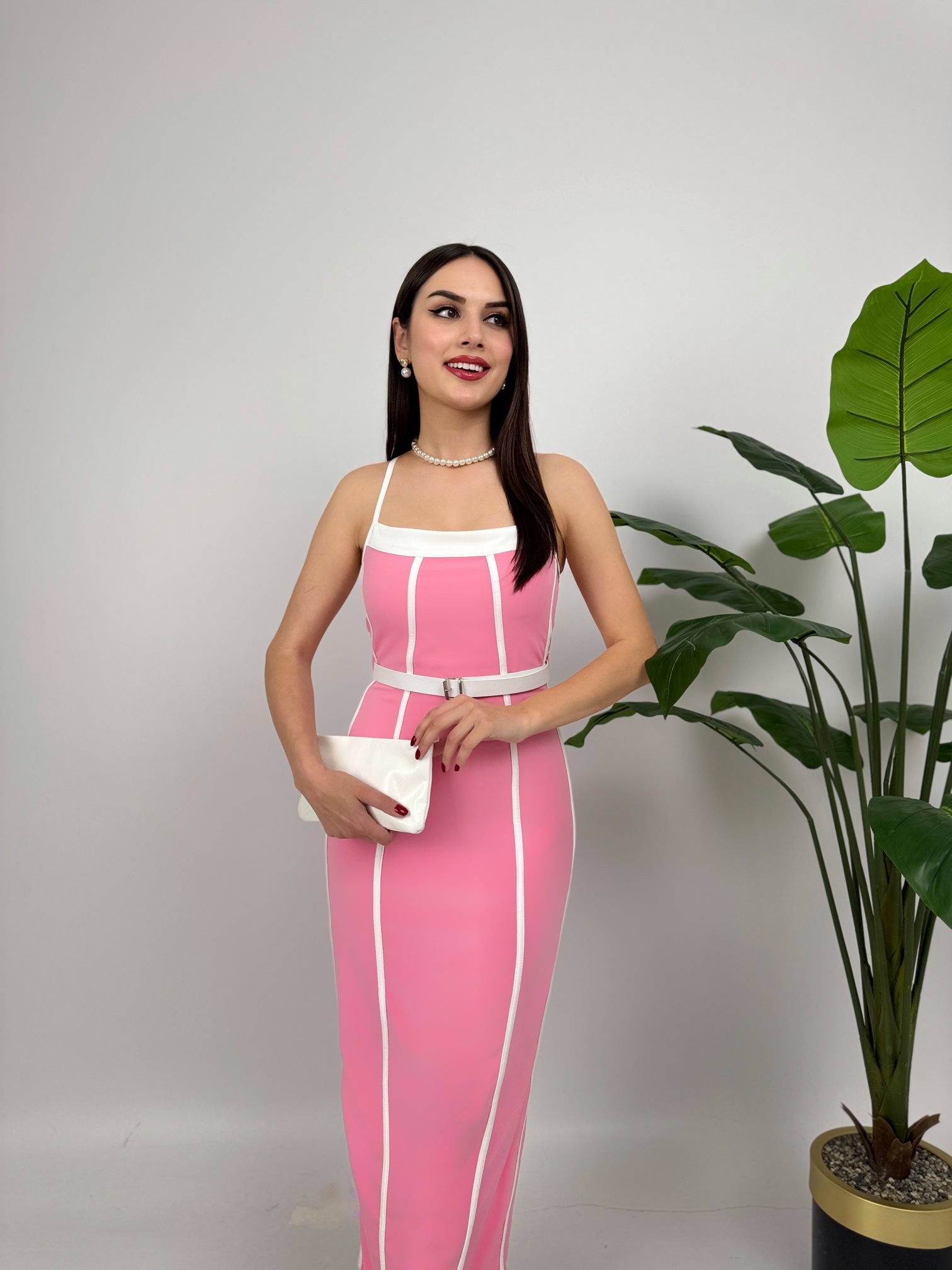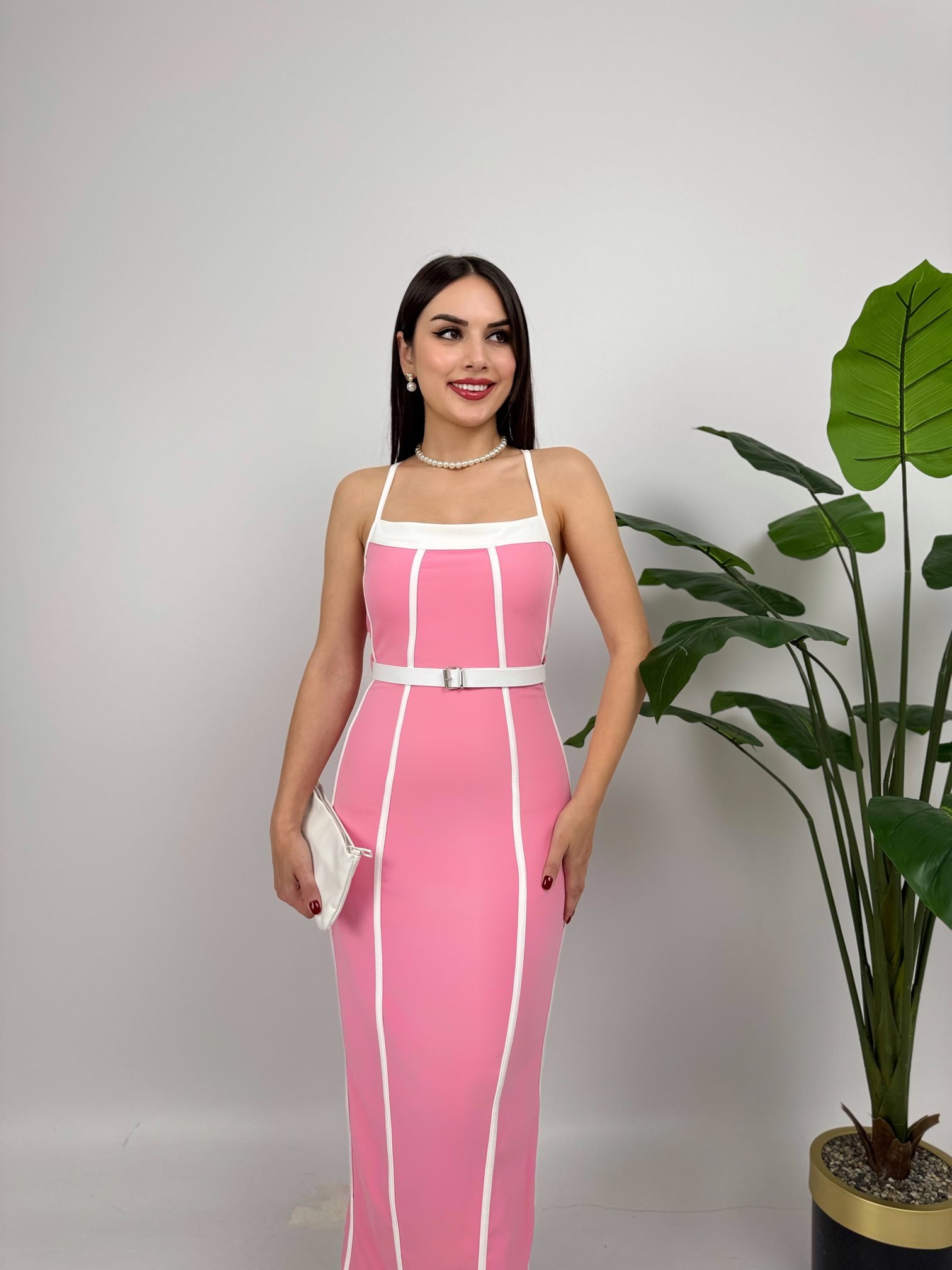 3018 BİYE DETAYLI ELBİSE PİNK - PEMBE