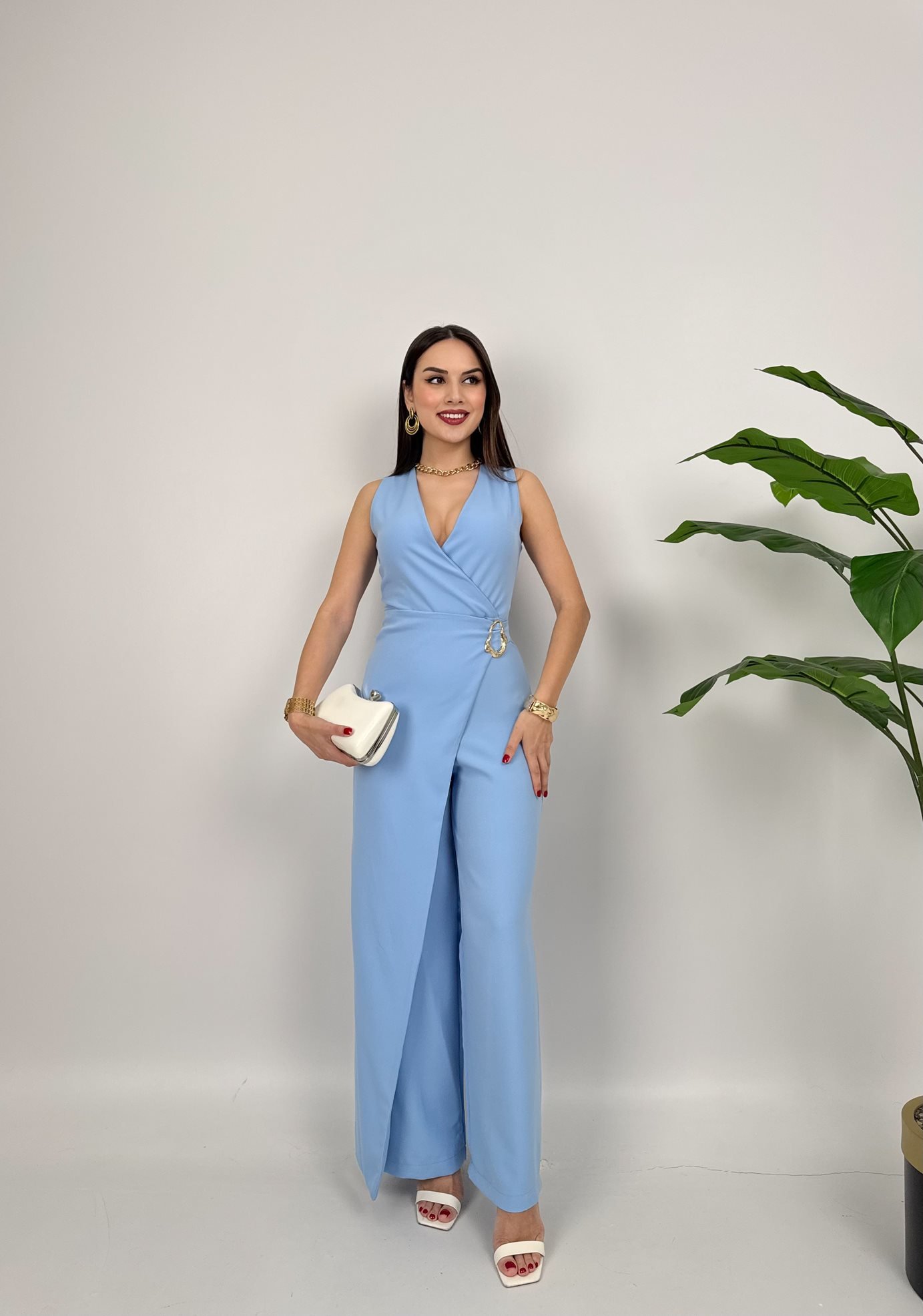 3019 BELDEN TOKA DETAYLI TULUM BABY BLUE - BEBE MAVİ
