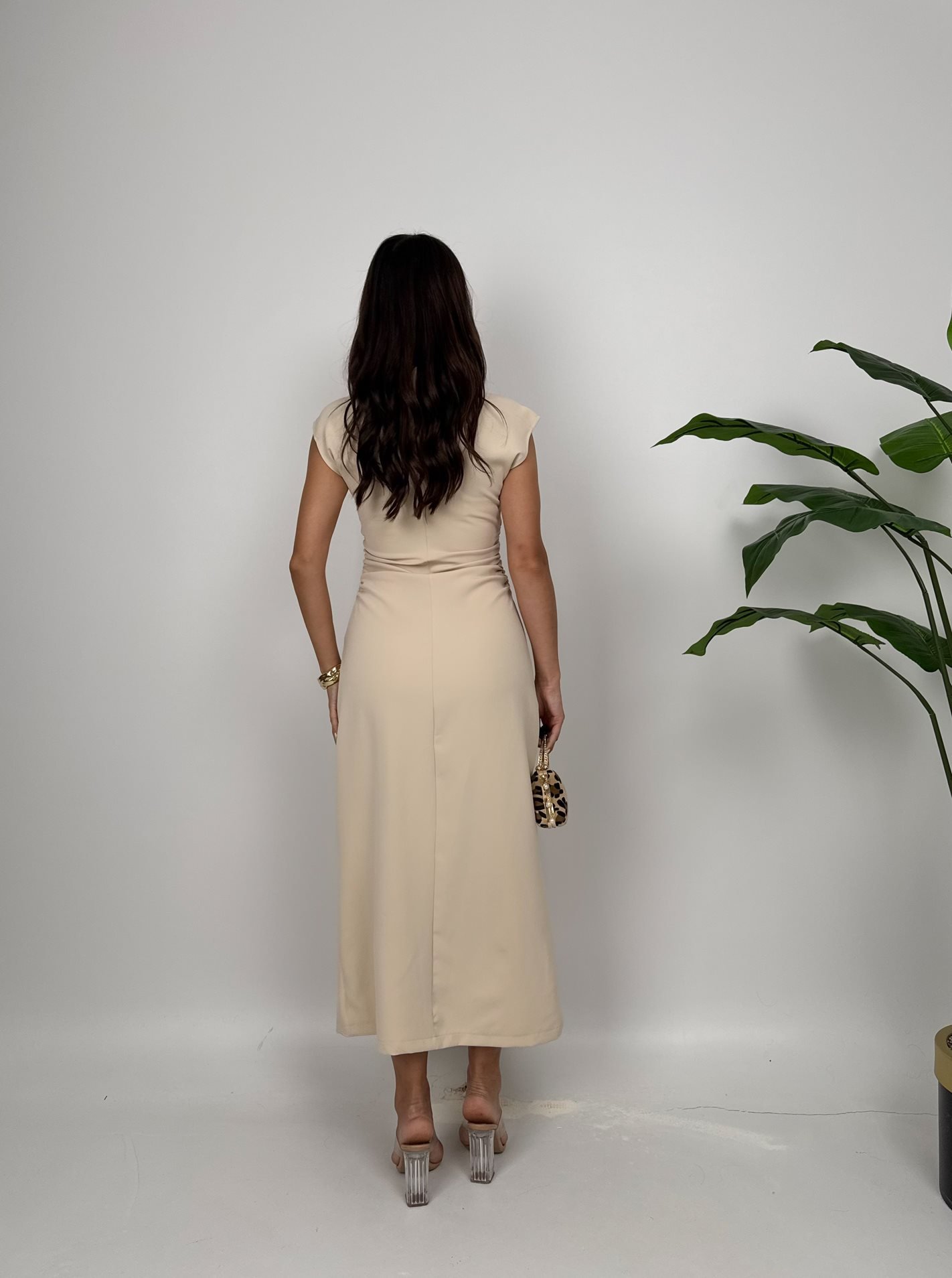 3026 ÖNDEN DÜĞMELİ ELBİSE STONE - TAŞ
