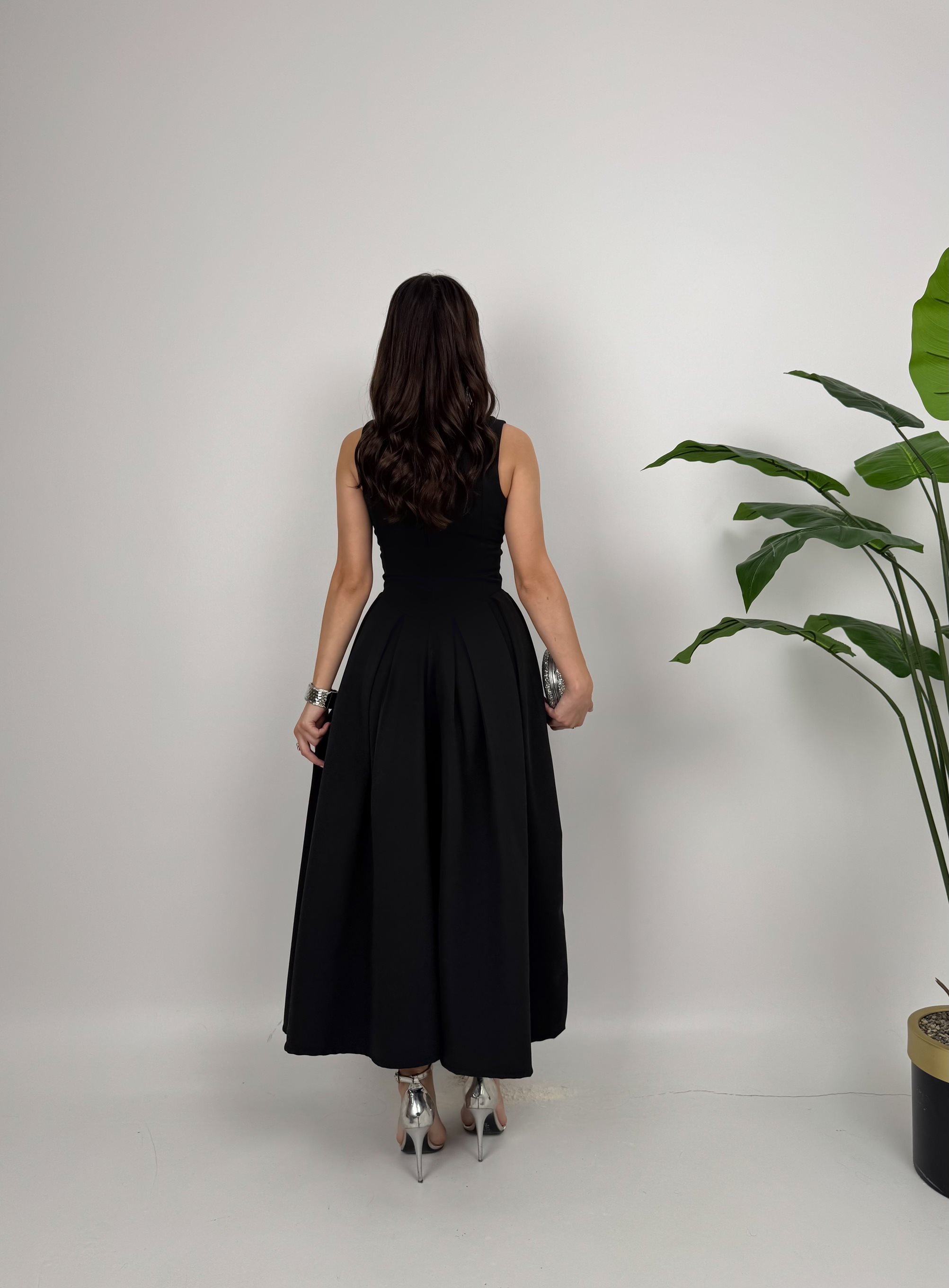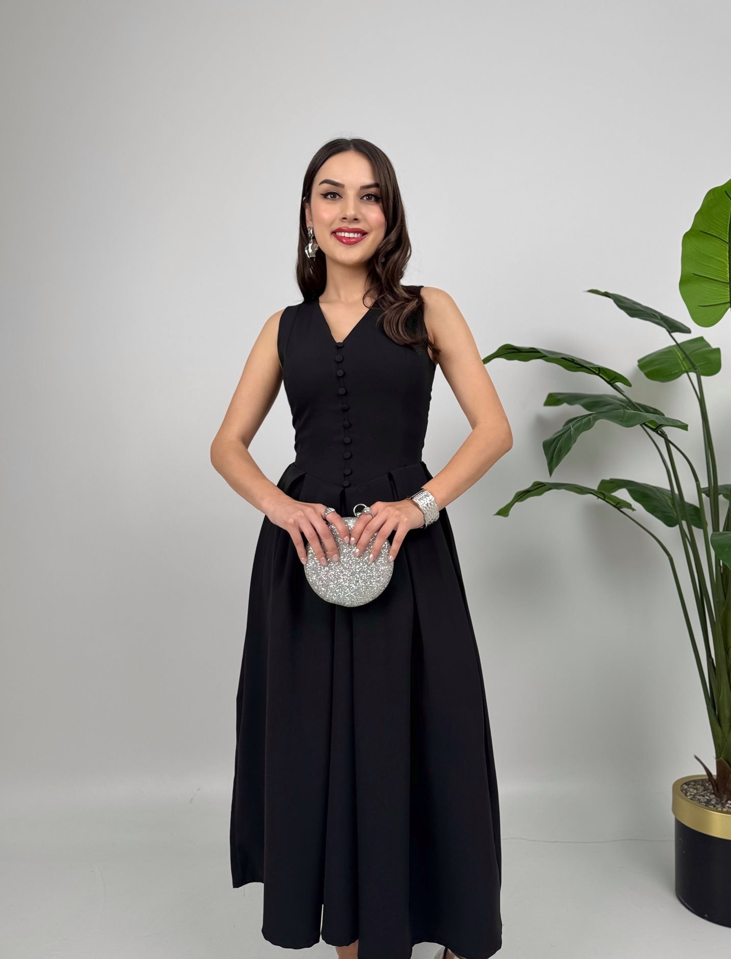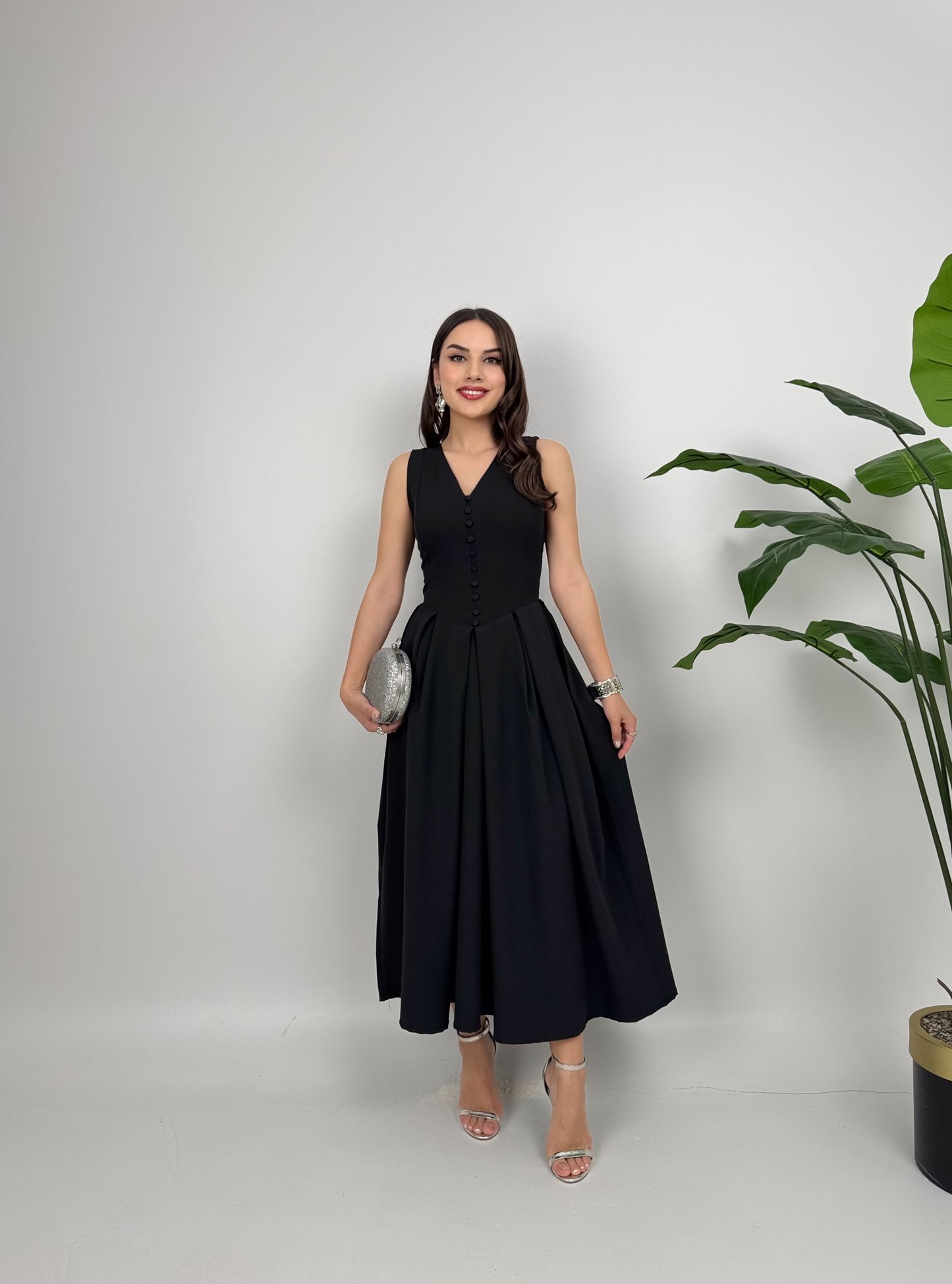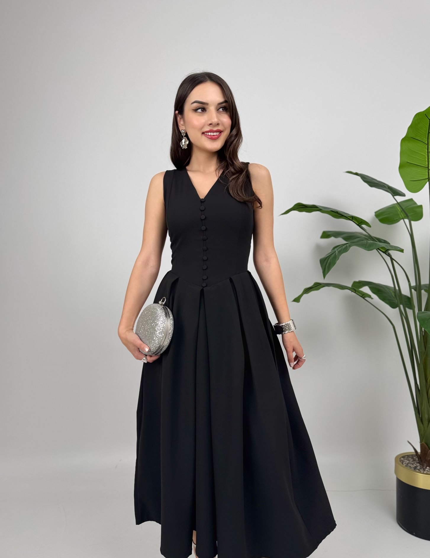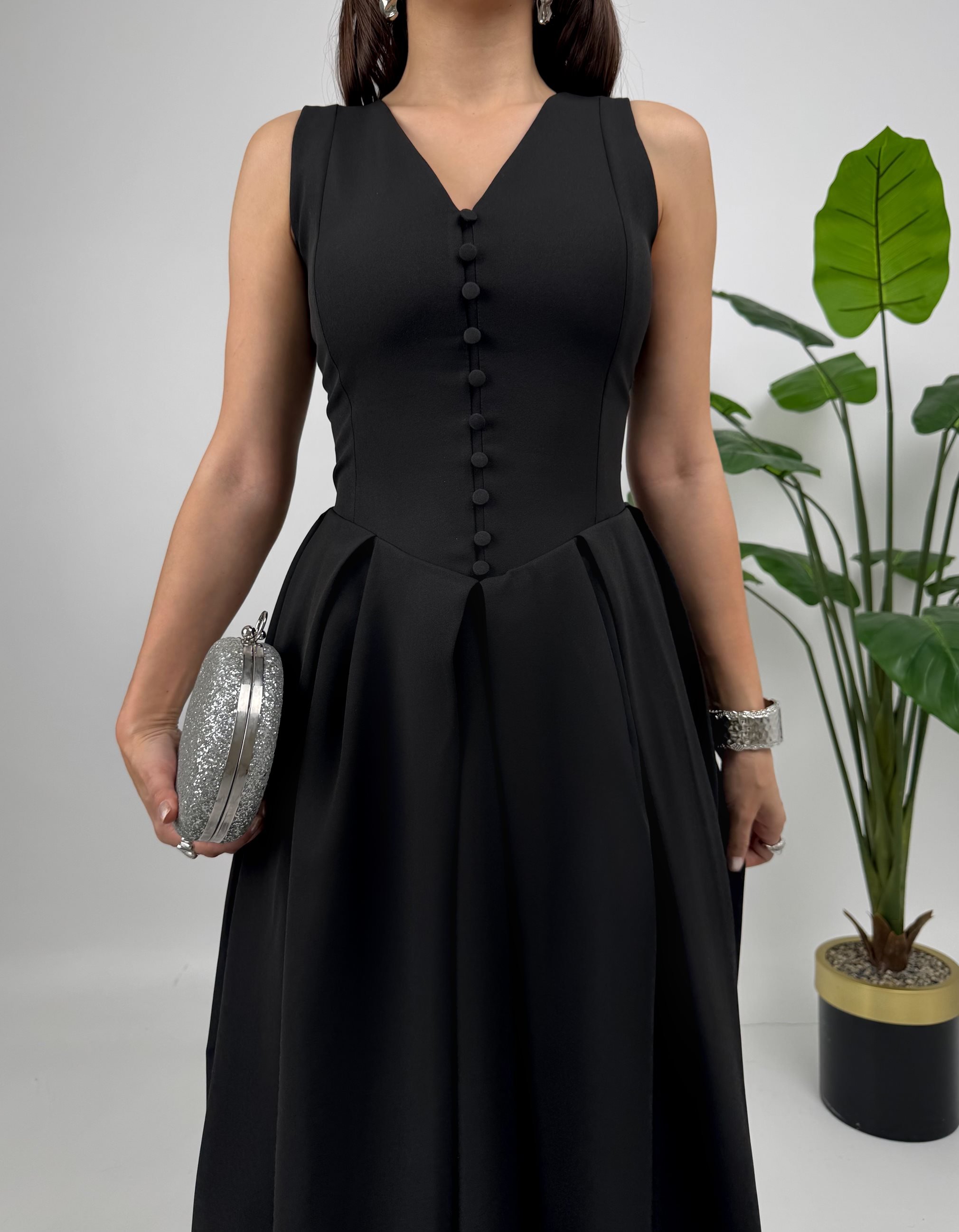 3031 KOLSUZ ÖNDEN DÜĞMELİ ELBİSE BLACK - SİYAH
