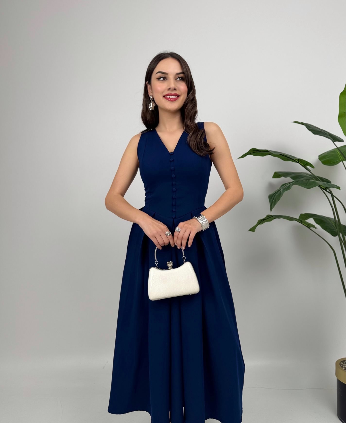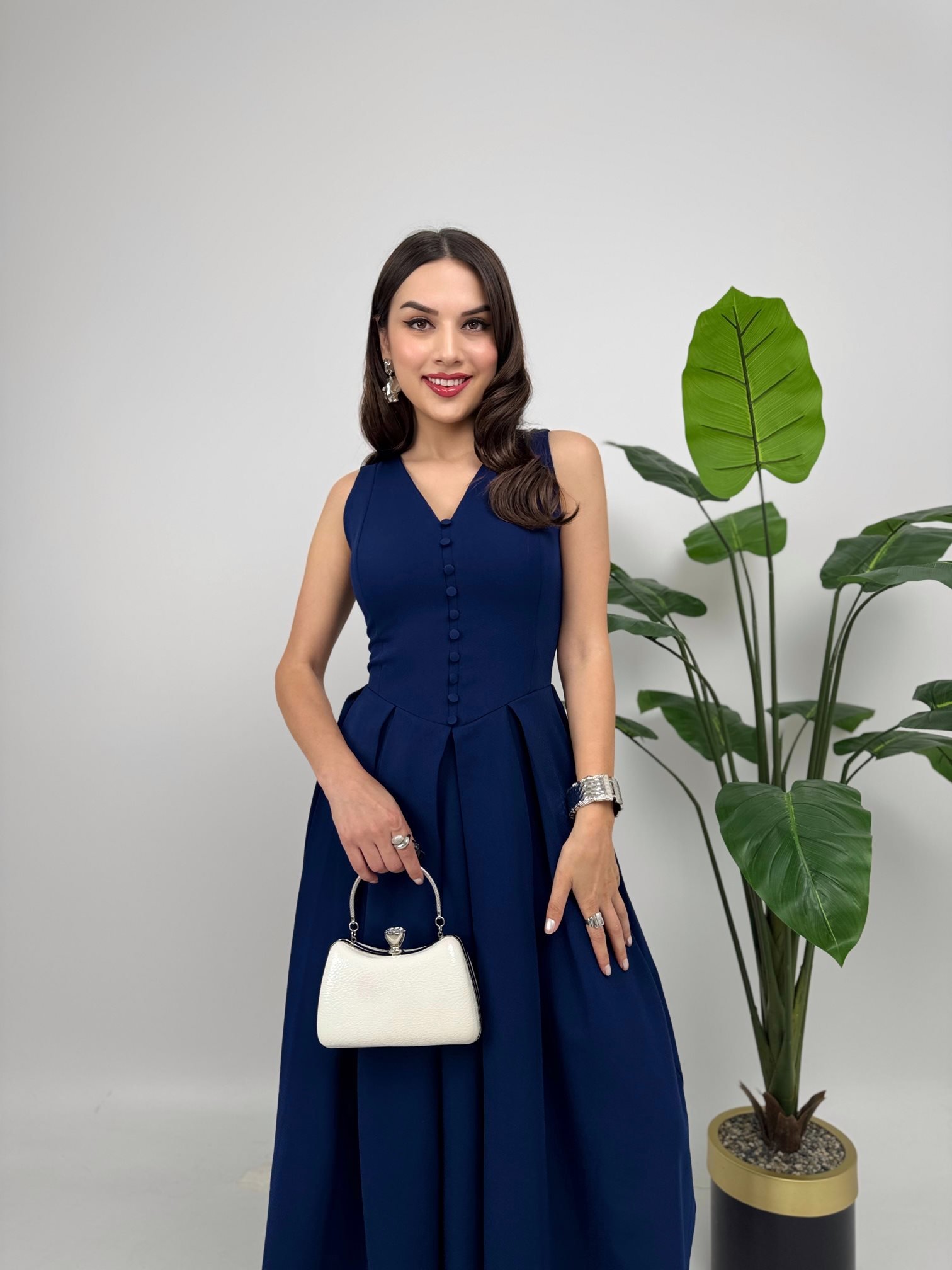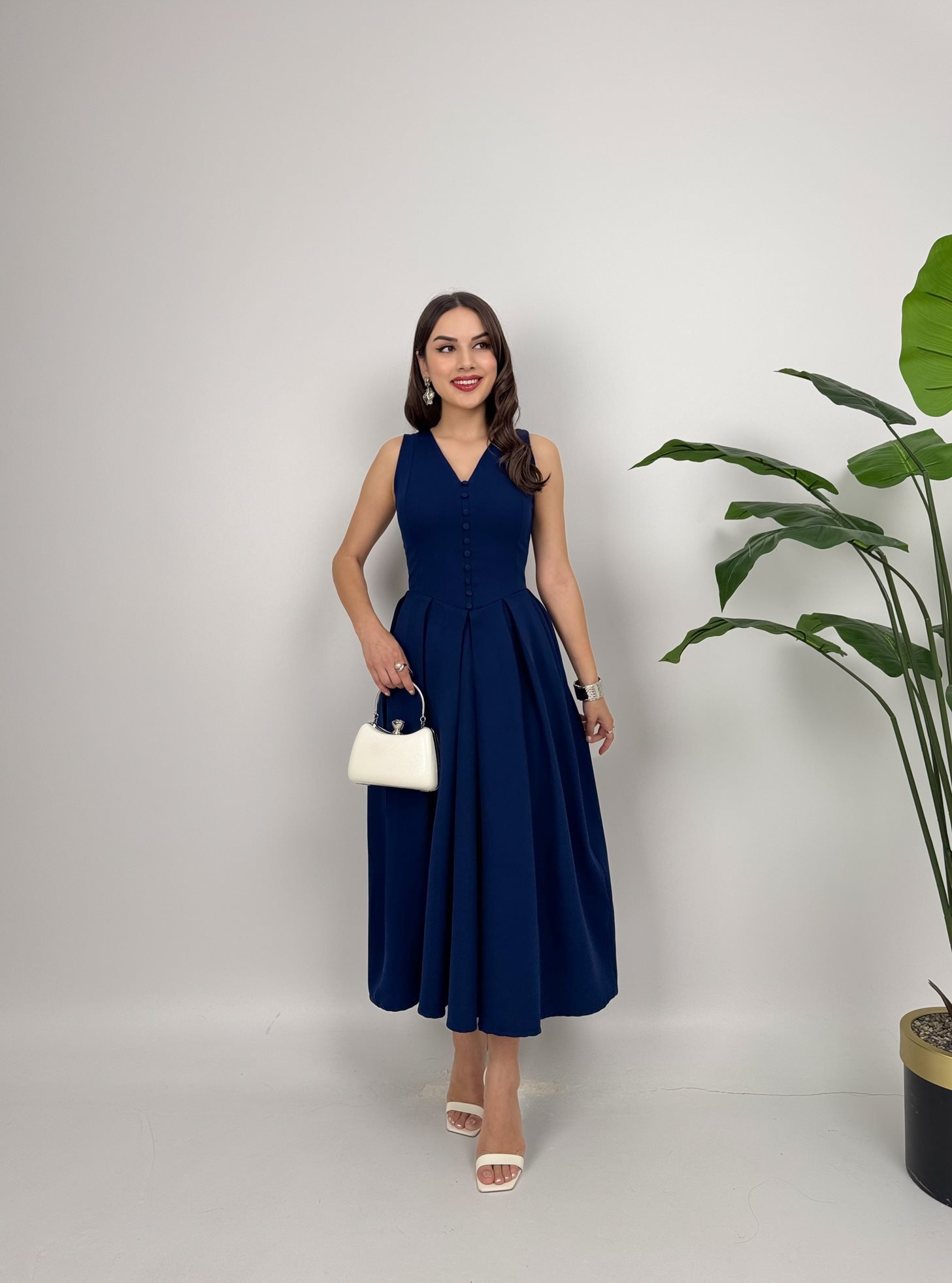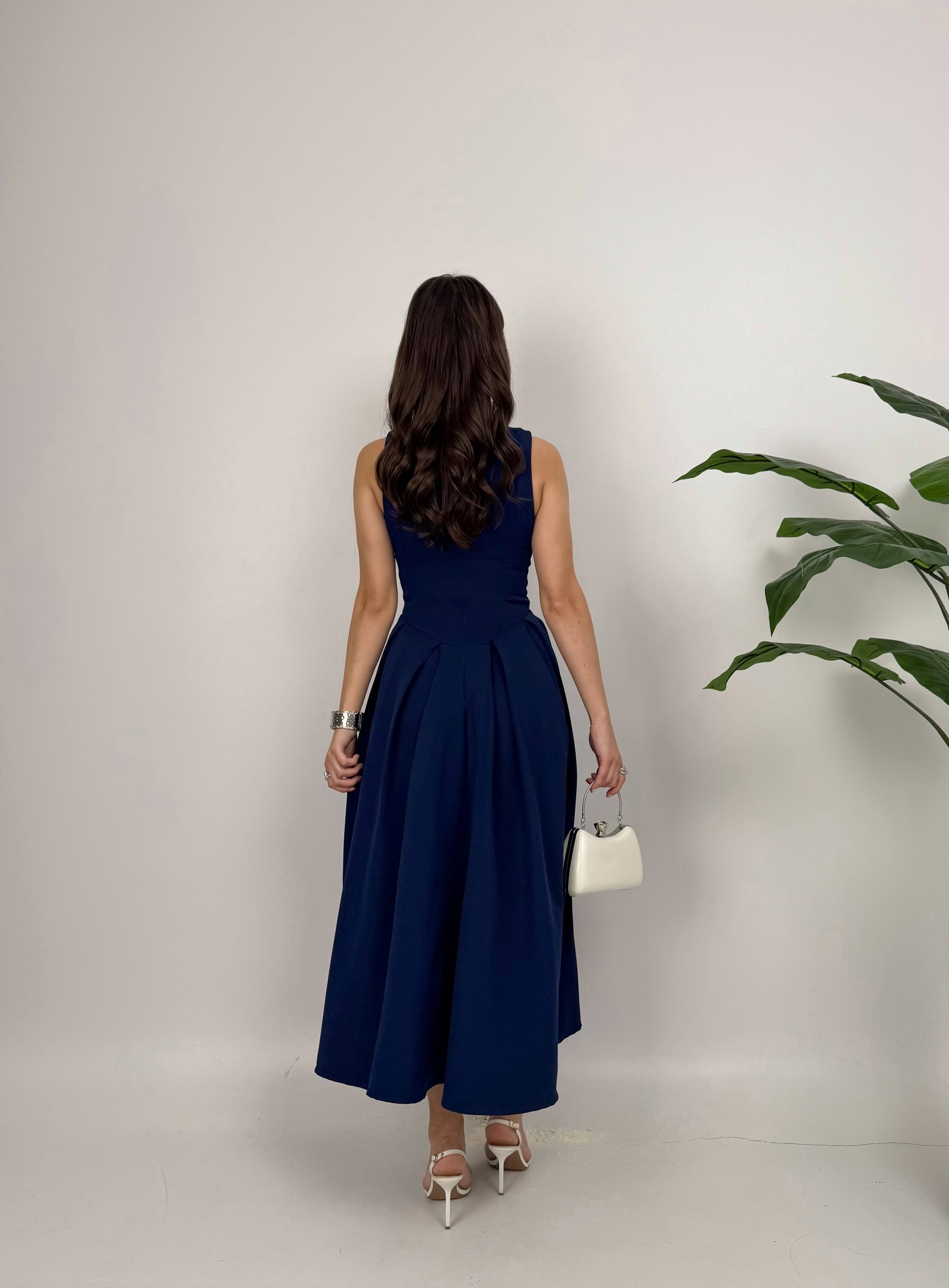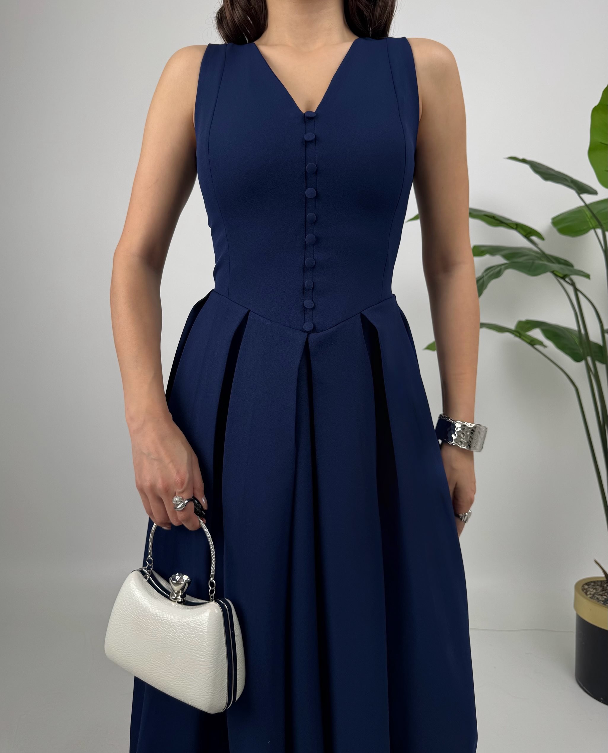 3031 KOLSUZ ÖNDEN DÜĞMELİ ELBİSE NAVY BLUE - LACİVERT