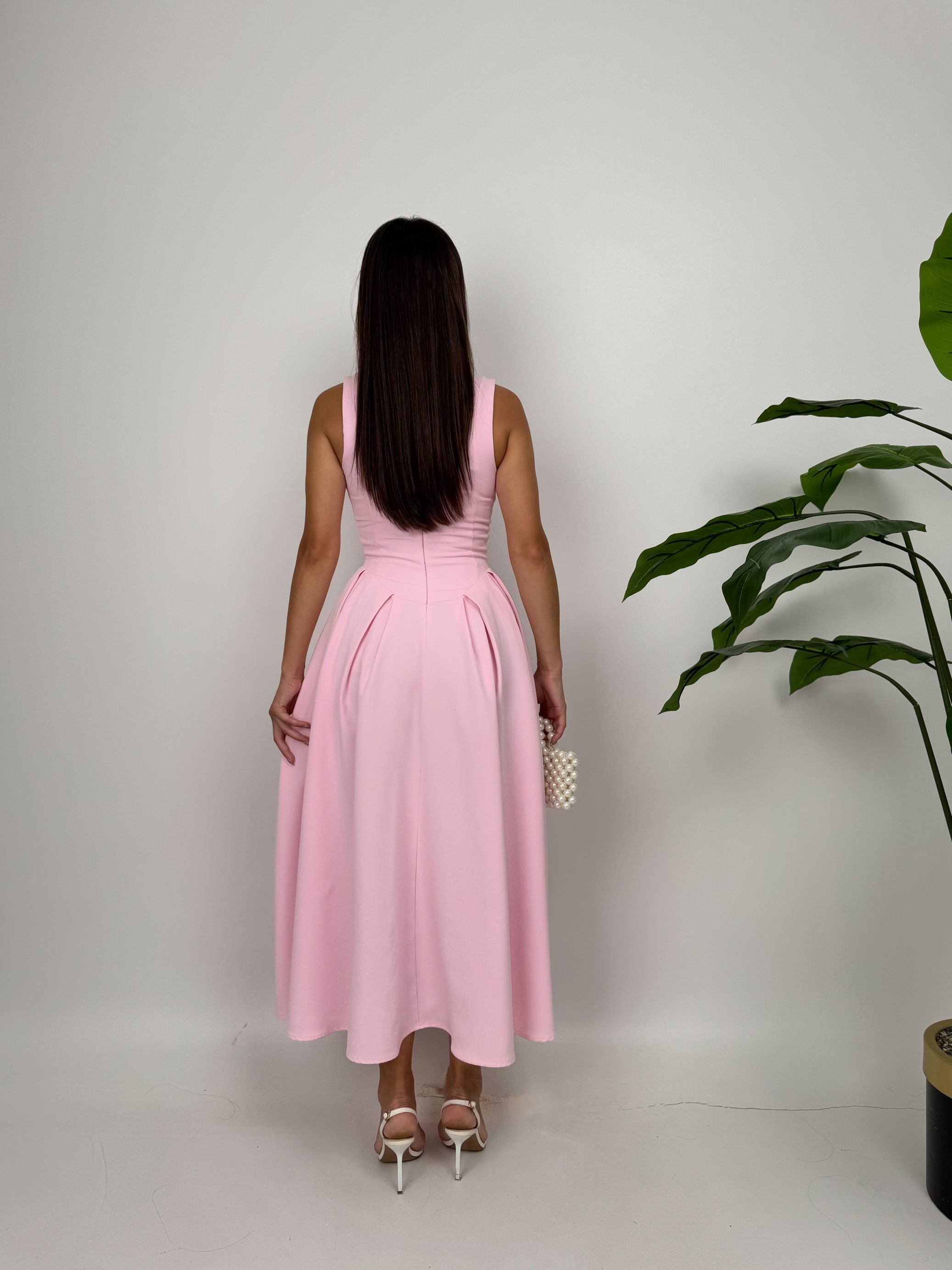 3031 KOLSUZ ÖNDEN DÜĞMELİ ELBİSE PİNK - PEMBE