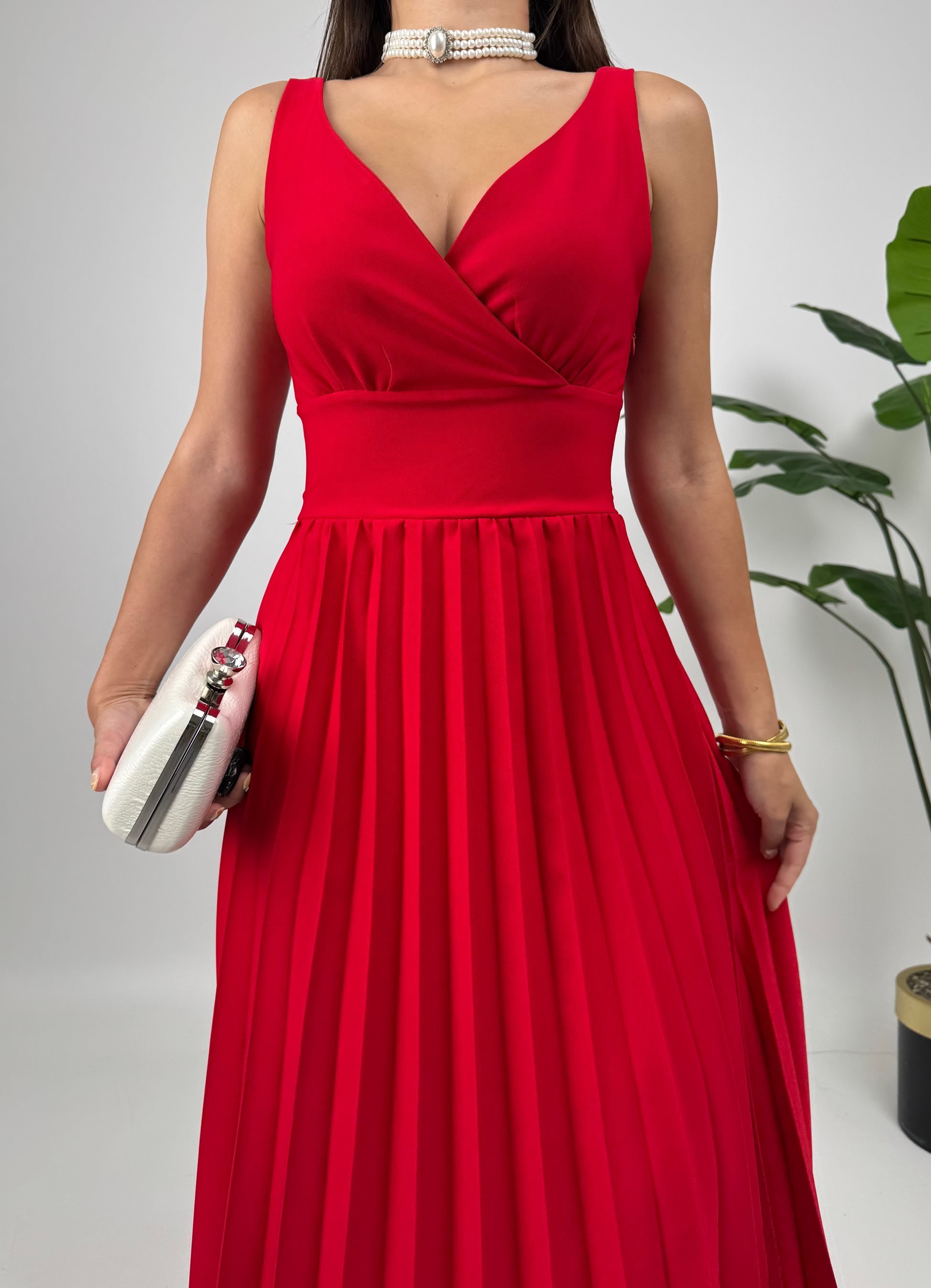 3038 PLİSELİ ELBİSE RED - KIRMIZI