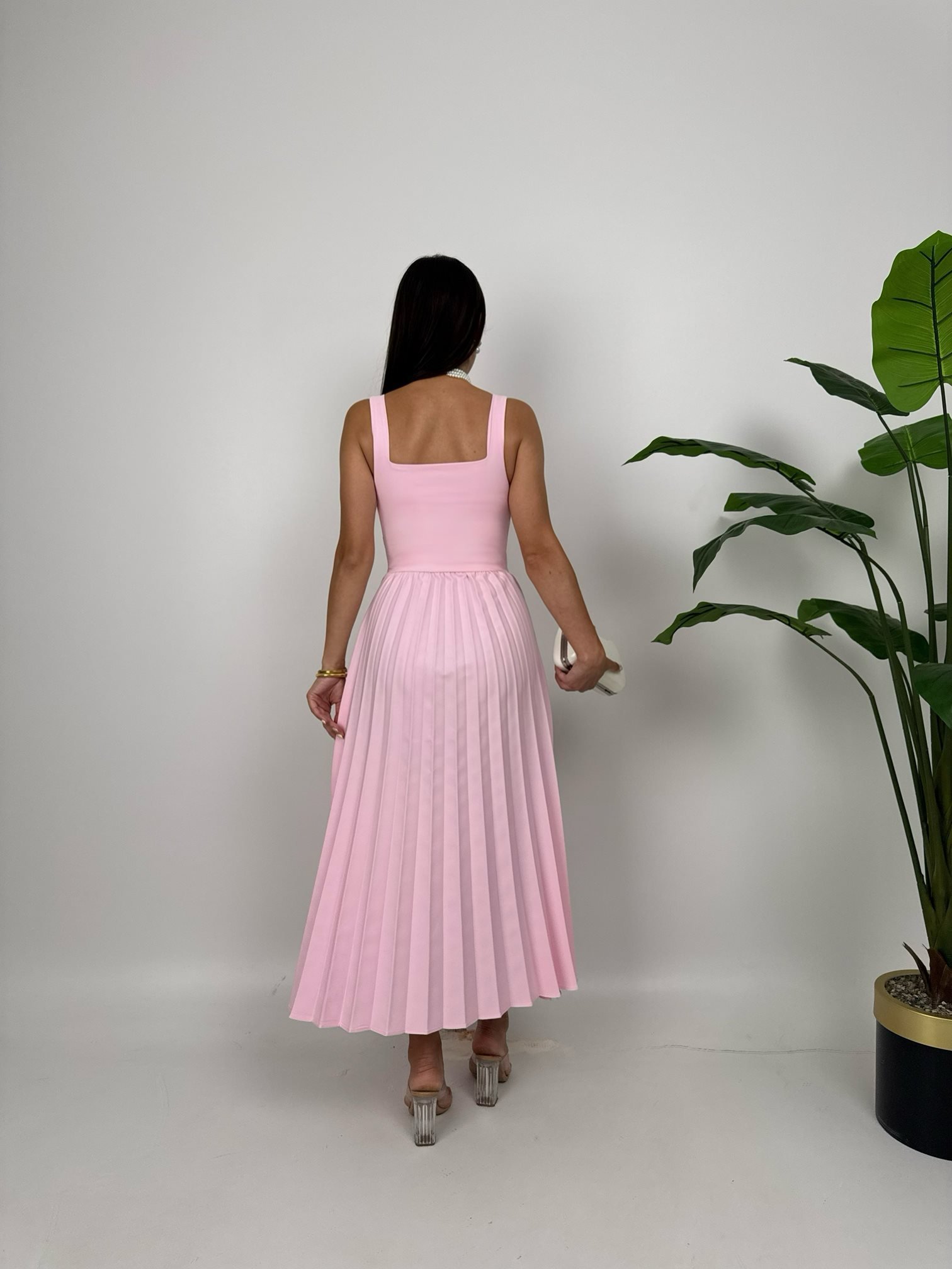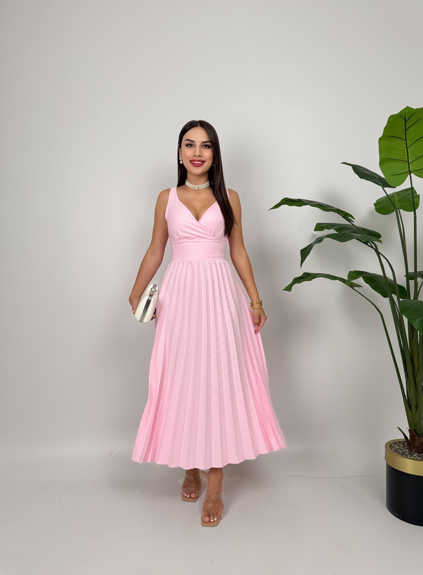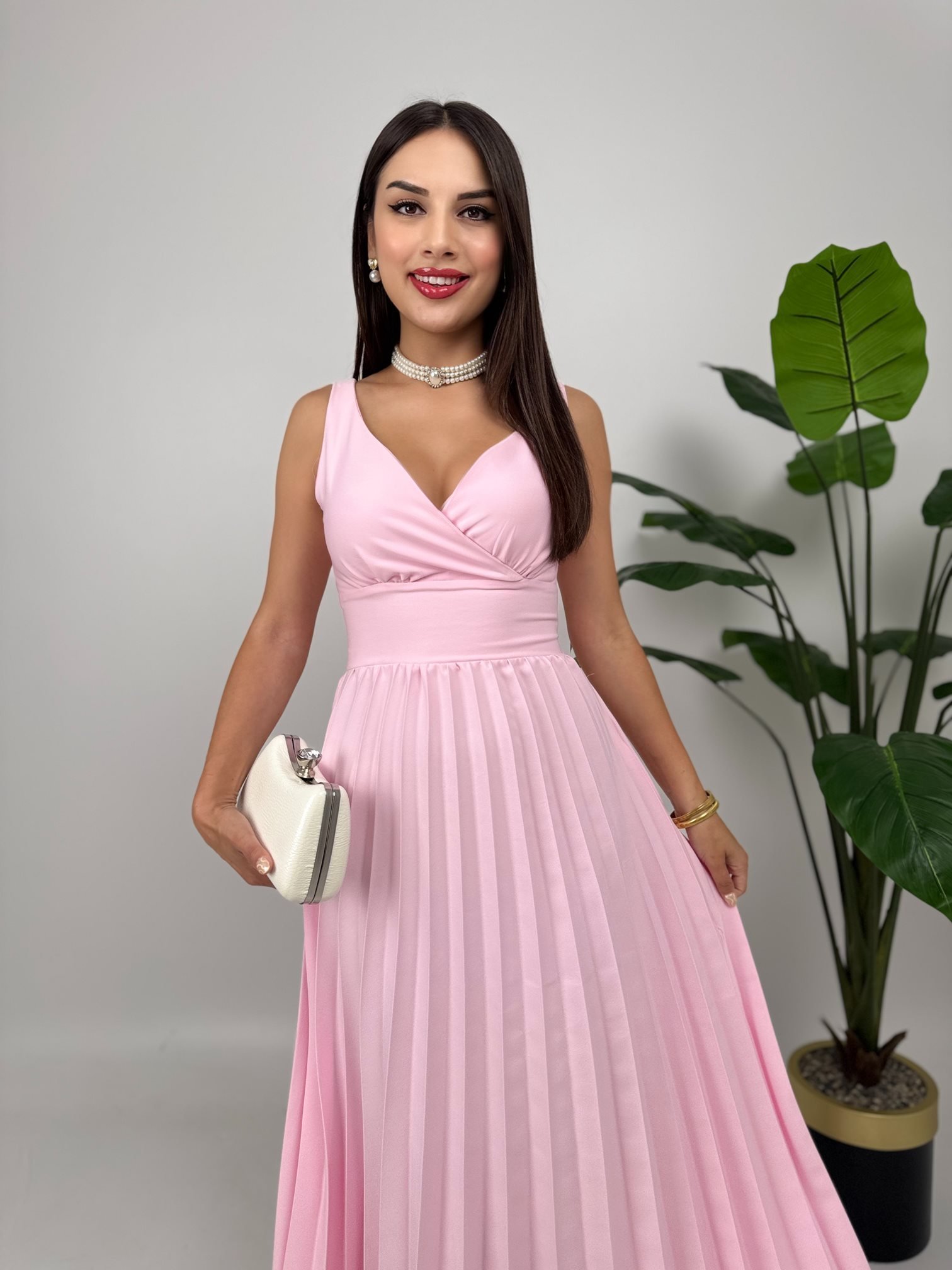 3038 PLİSELİ ELBİSE PİNK - PEMBE