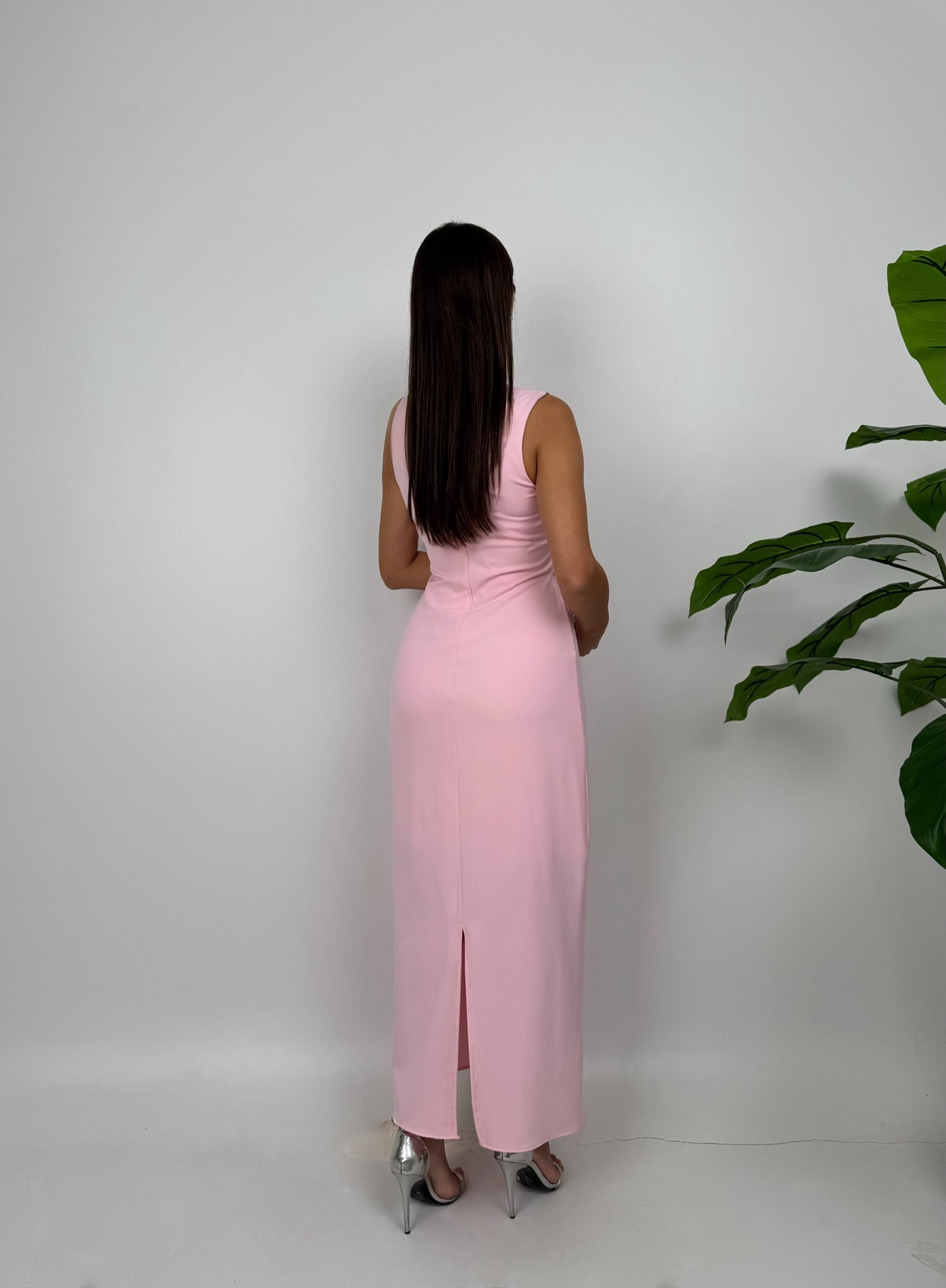 3048 OMUZ DEKOLTELİ ELBİSE PİNK - PEMBE