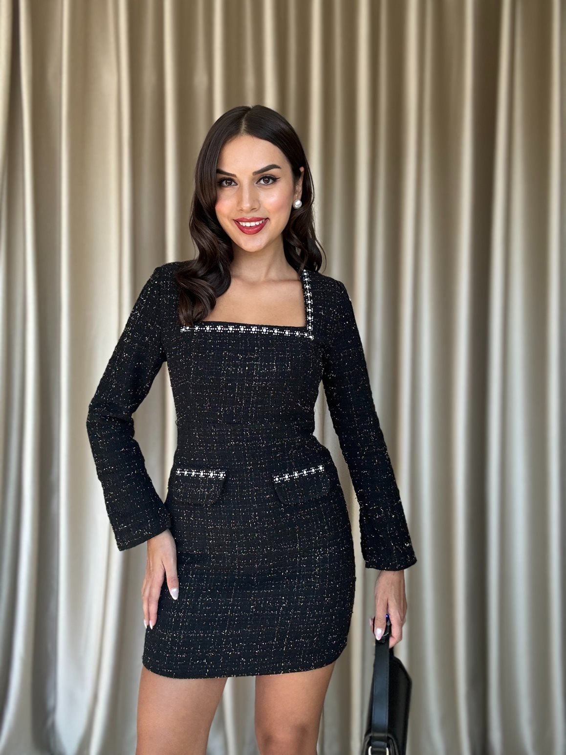3051 TAŞLI ELBİSE BLACK - SİYAH
