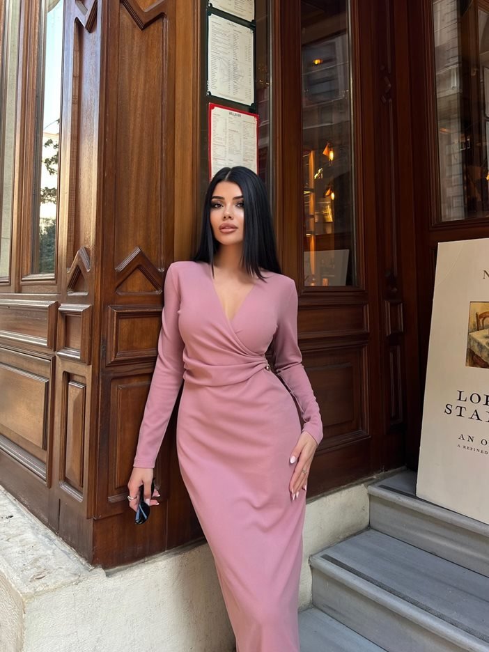 3058 ÖNÜ PİLELİ ELBİSE POWDER - PUDRA