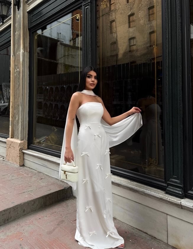 3060 SATEN KURDELELİ ELBİSE BABY BLUE - BEBE MAVİ
