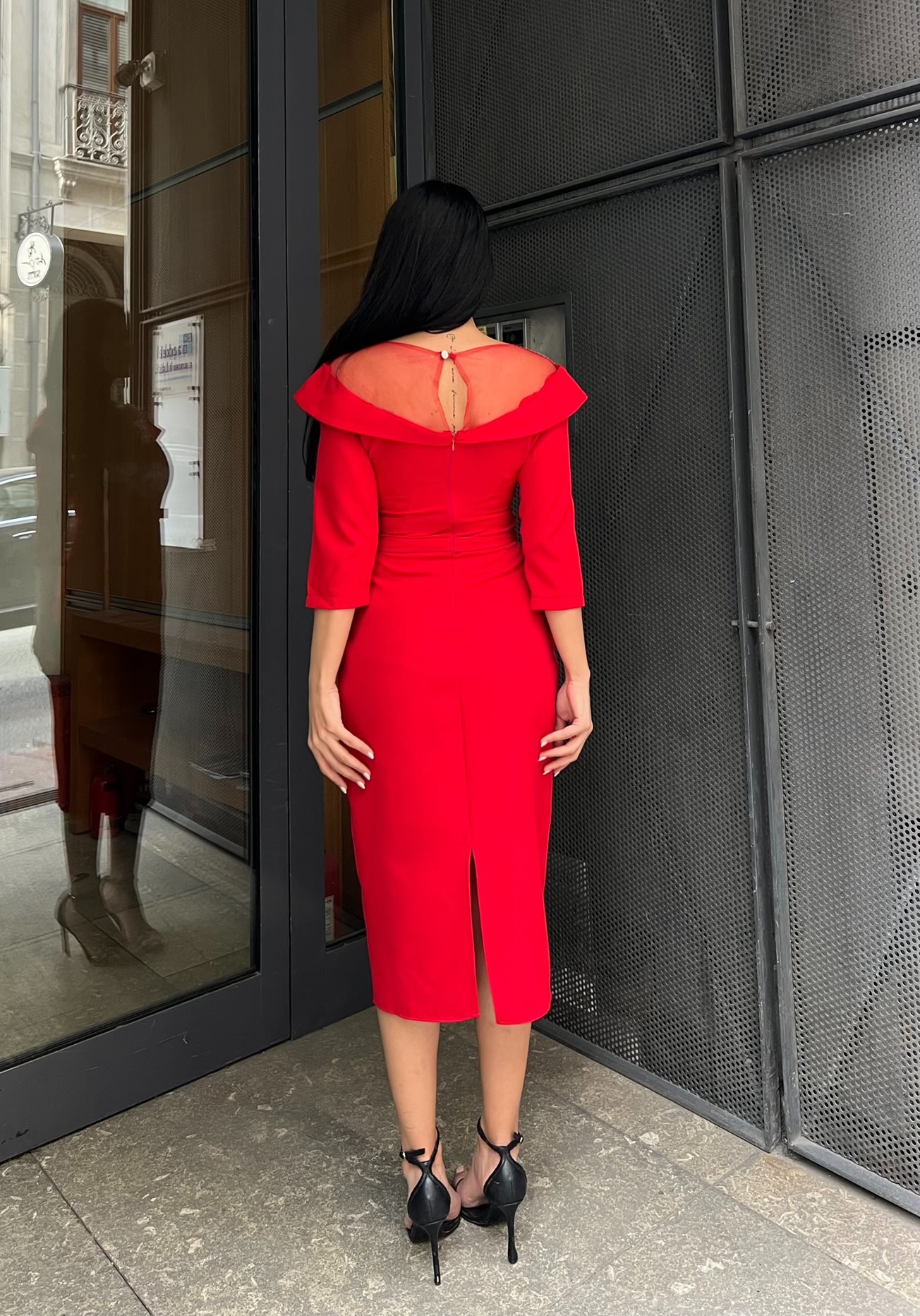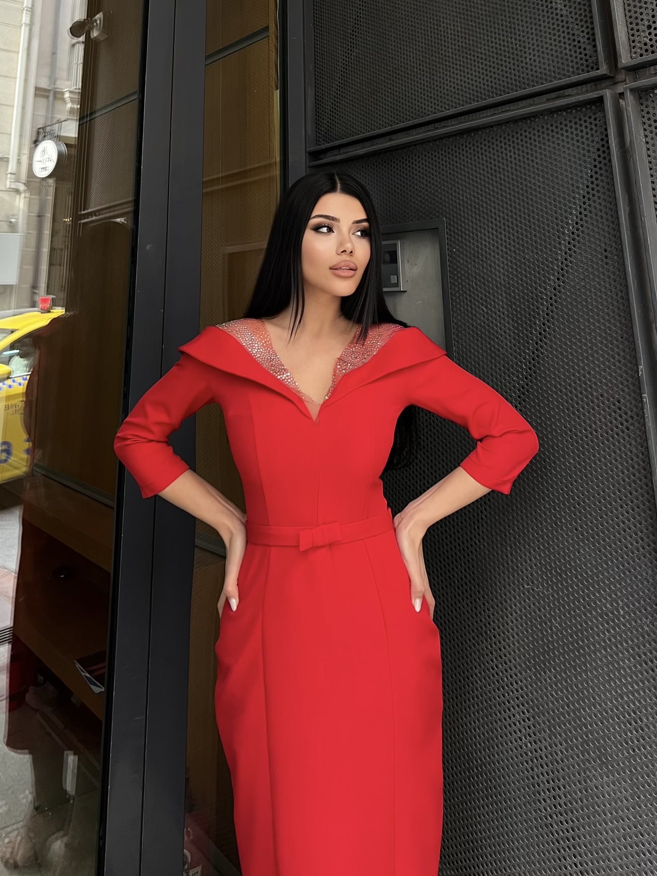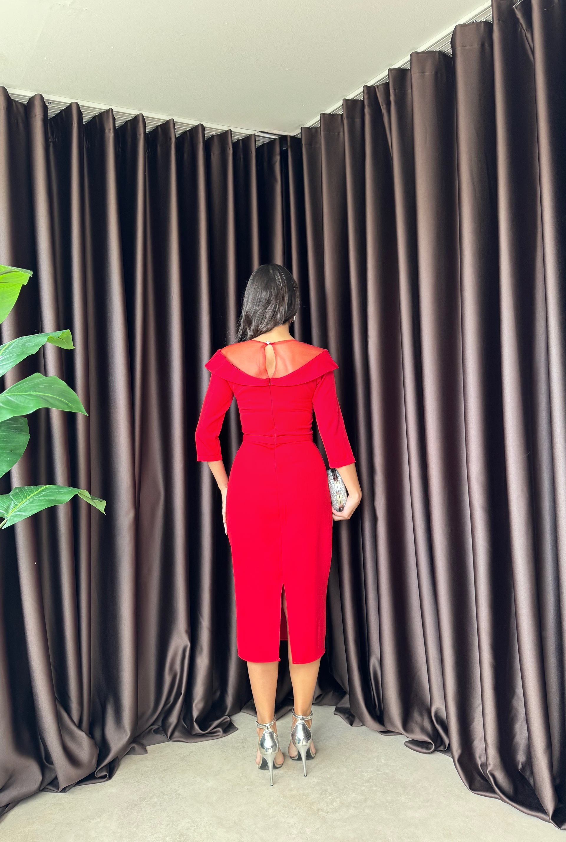 3066 YALASI TAŞLI ELBİSE RED - KIRMIZI