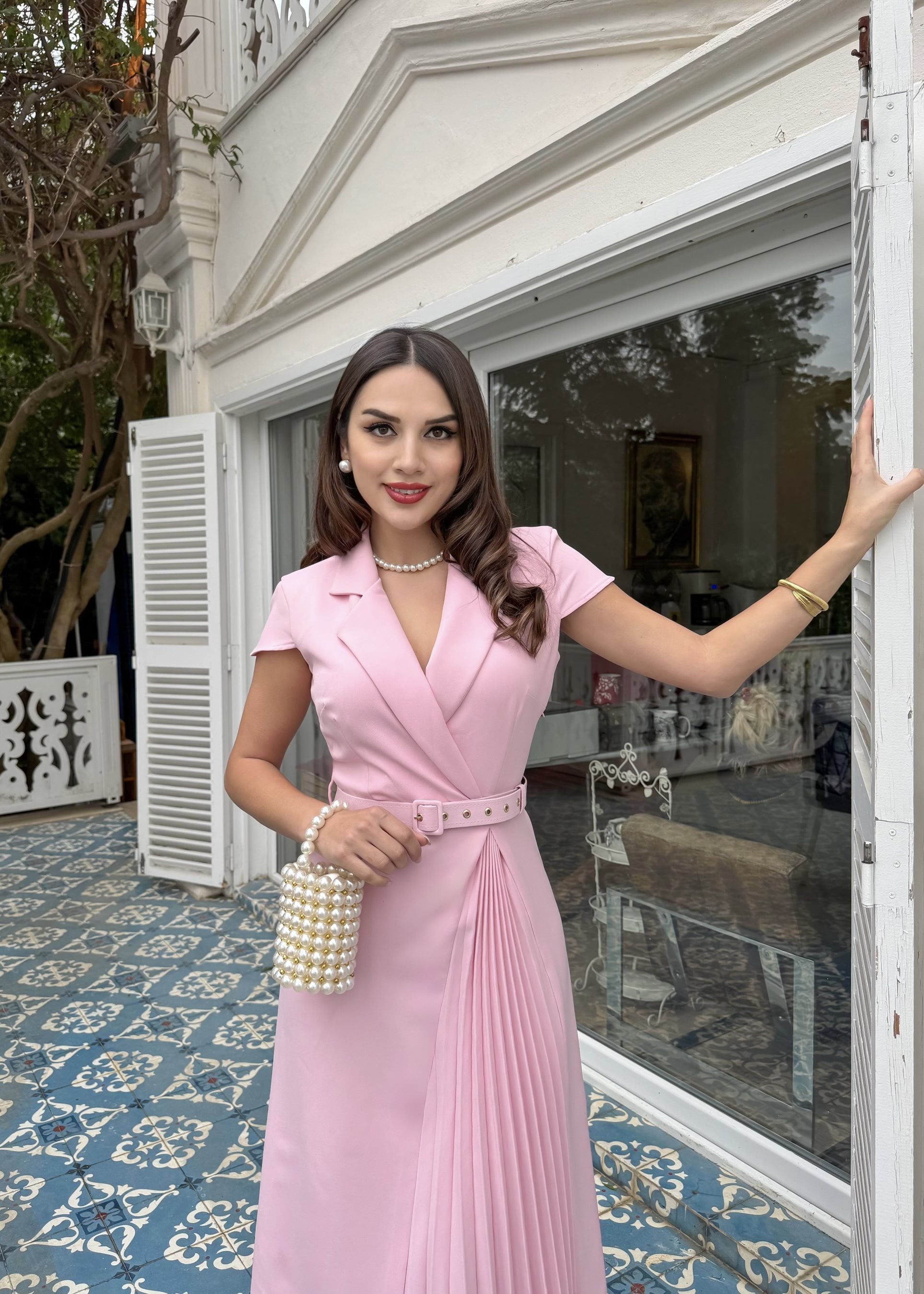 3090 PLİLELİ ELBİSE PİNK - PEMBE