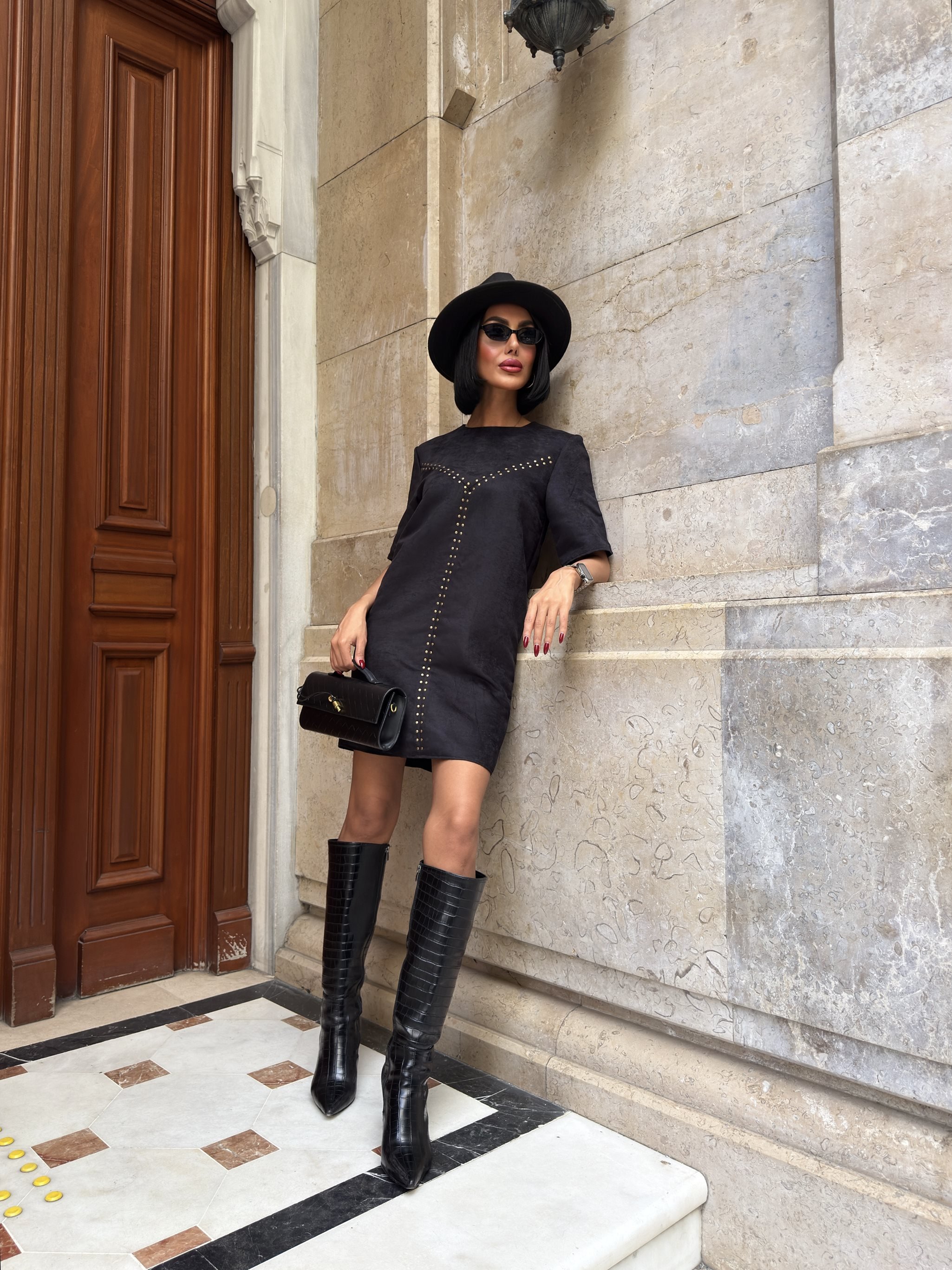 3102 SUET ELBİSE BLACK - SİYAH